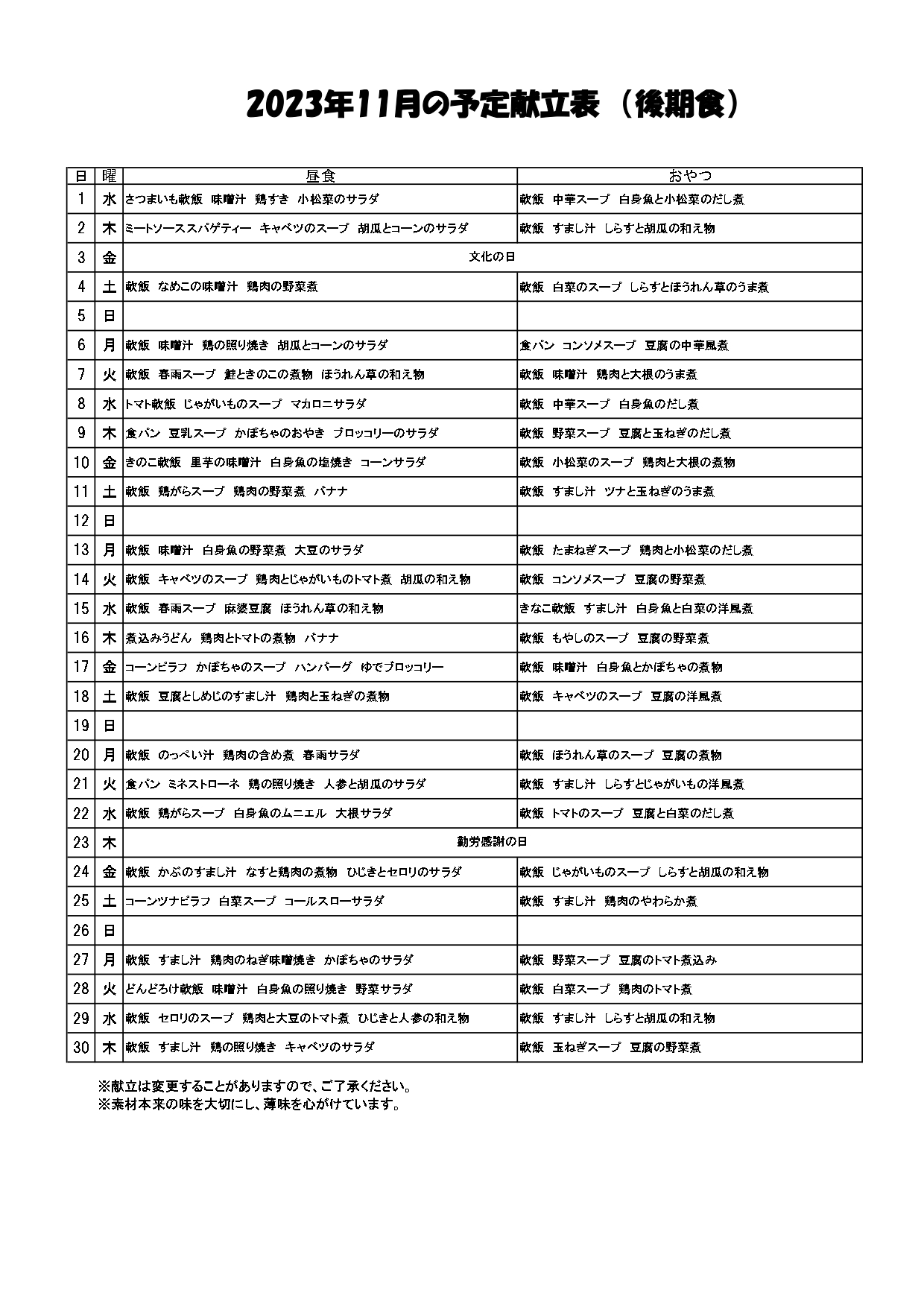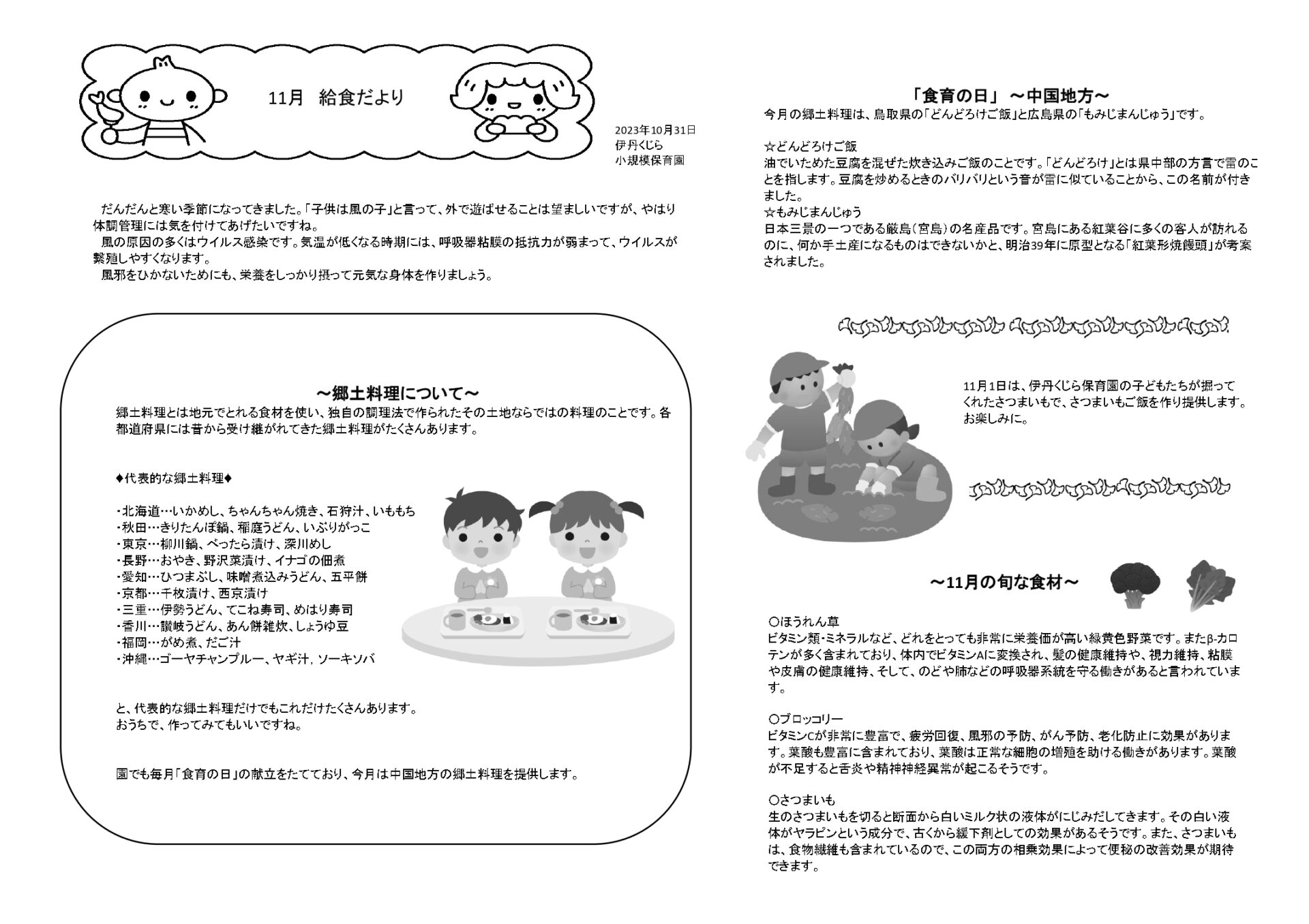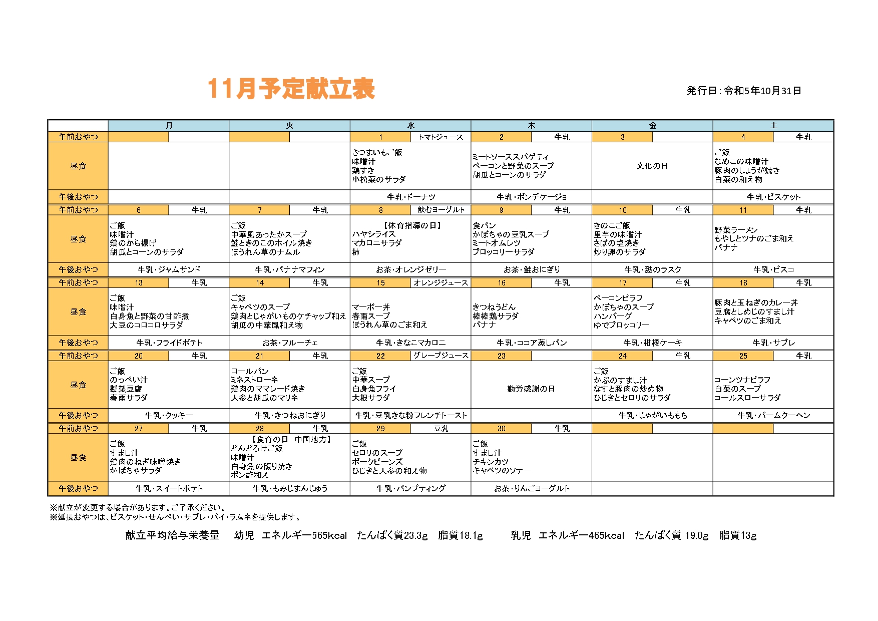 11月 給食だより・献立表