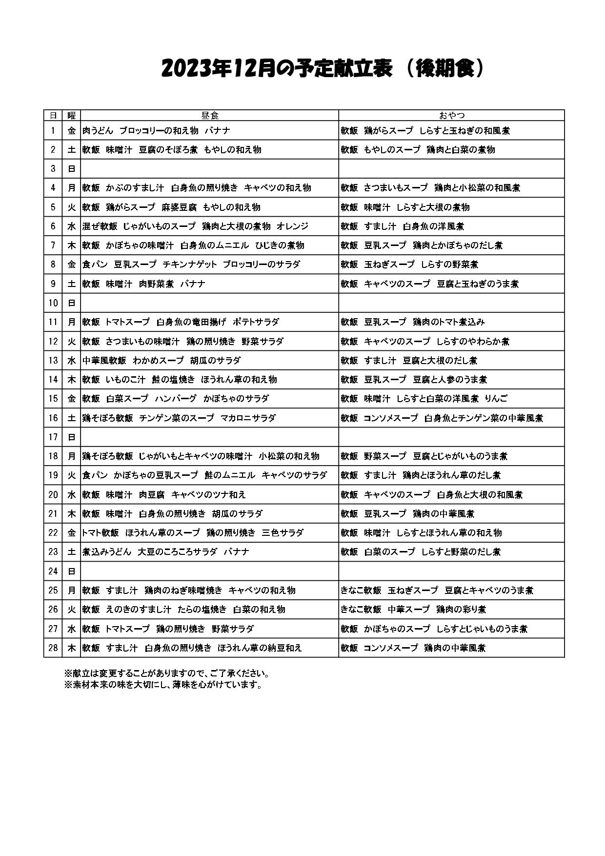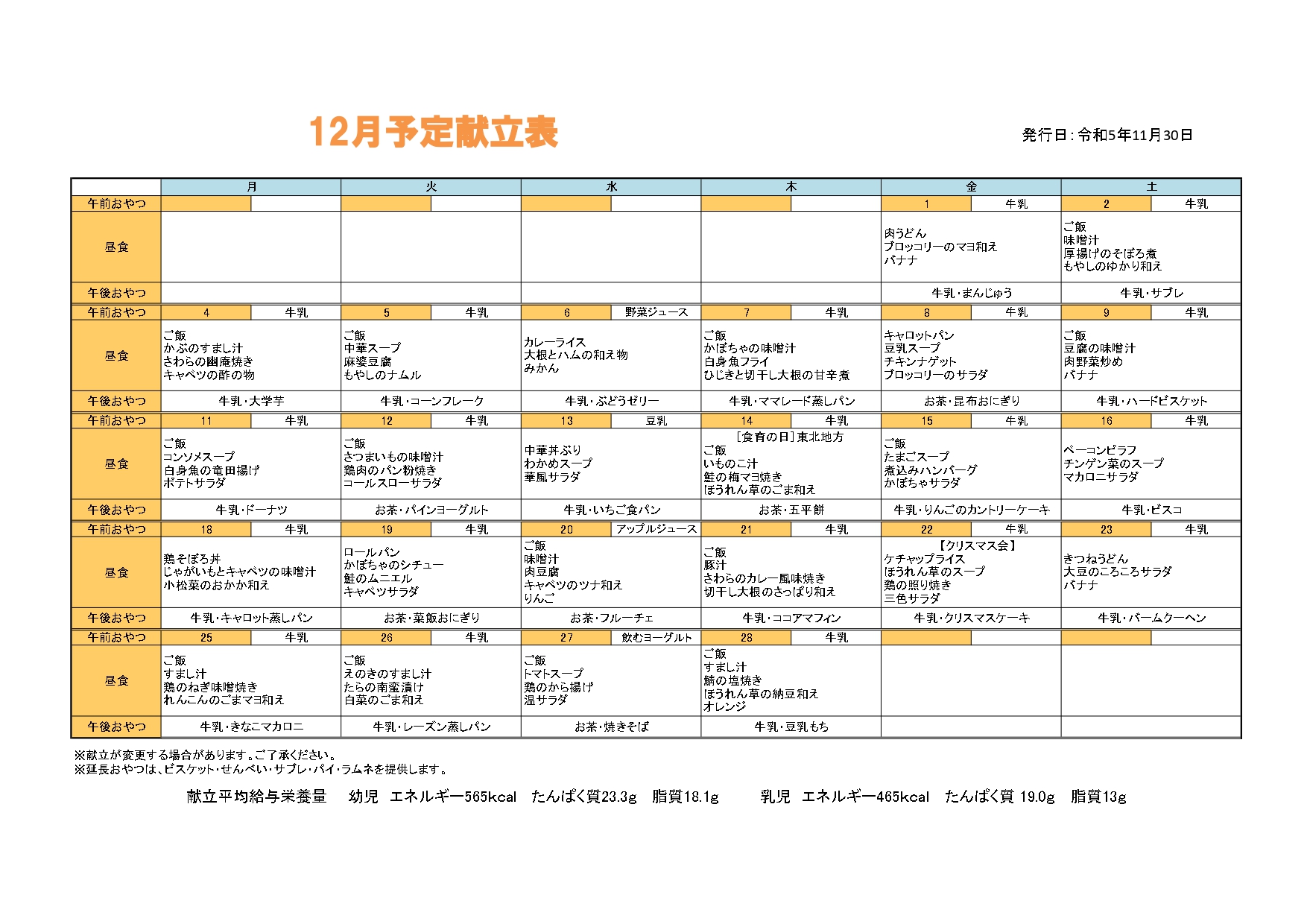 12月 給食だより・献立表