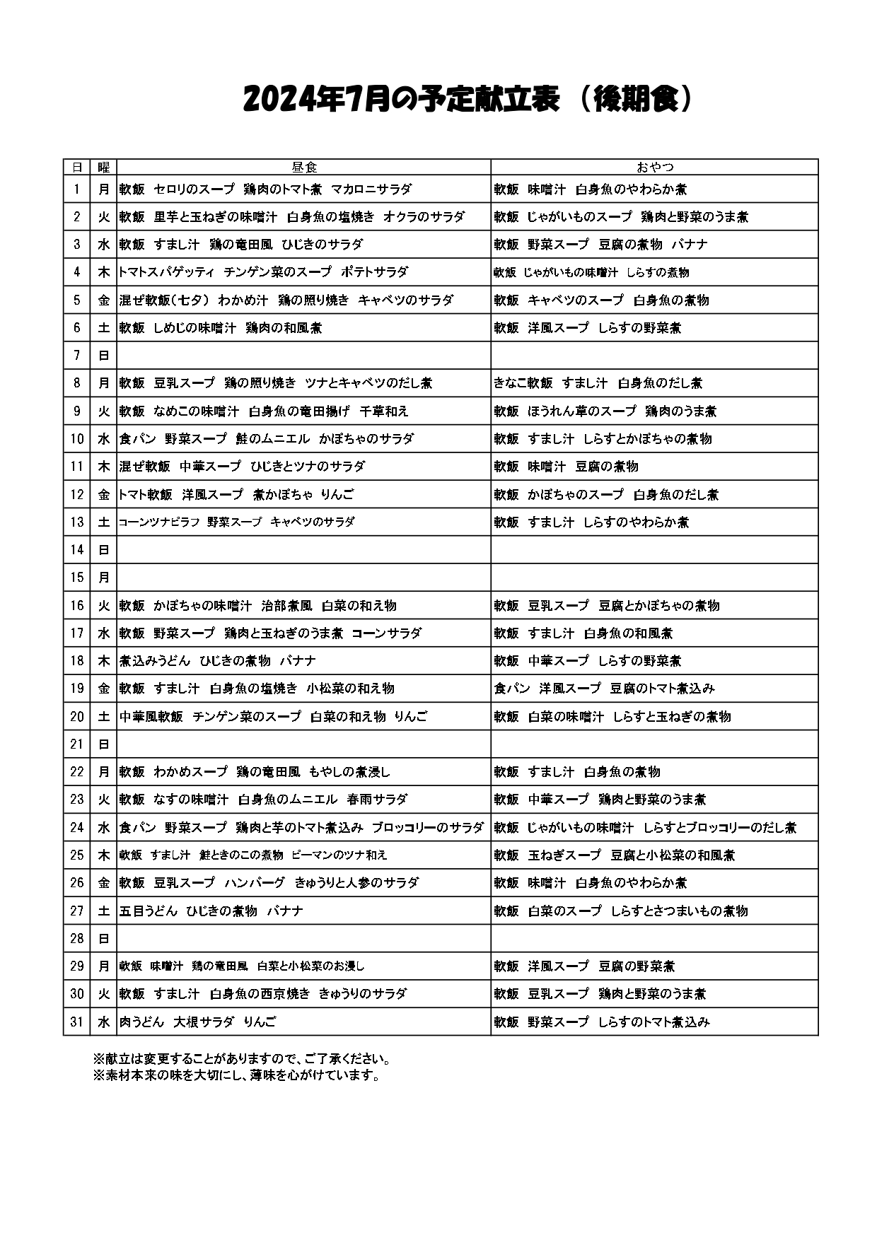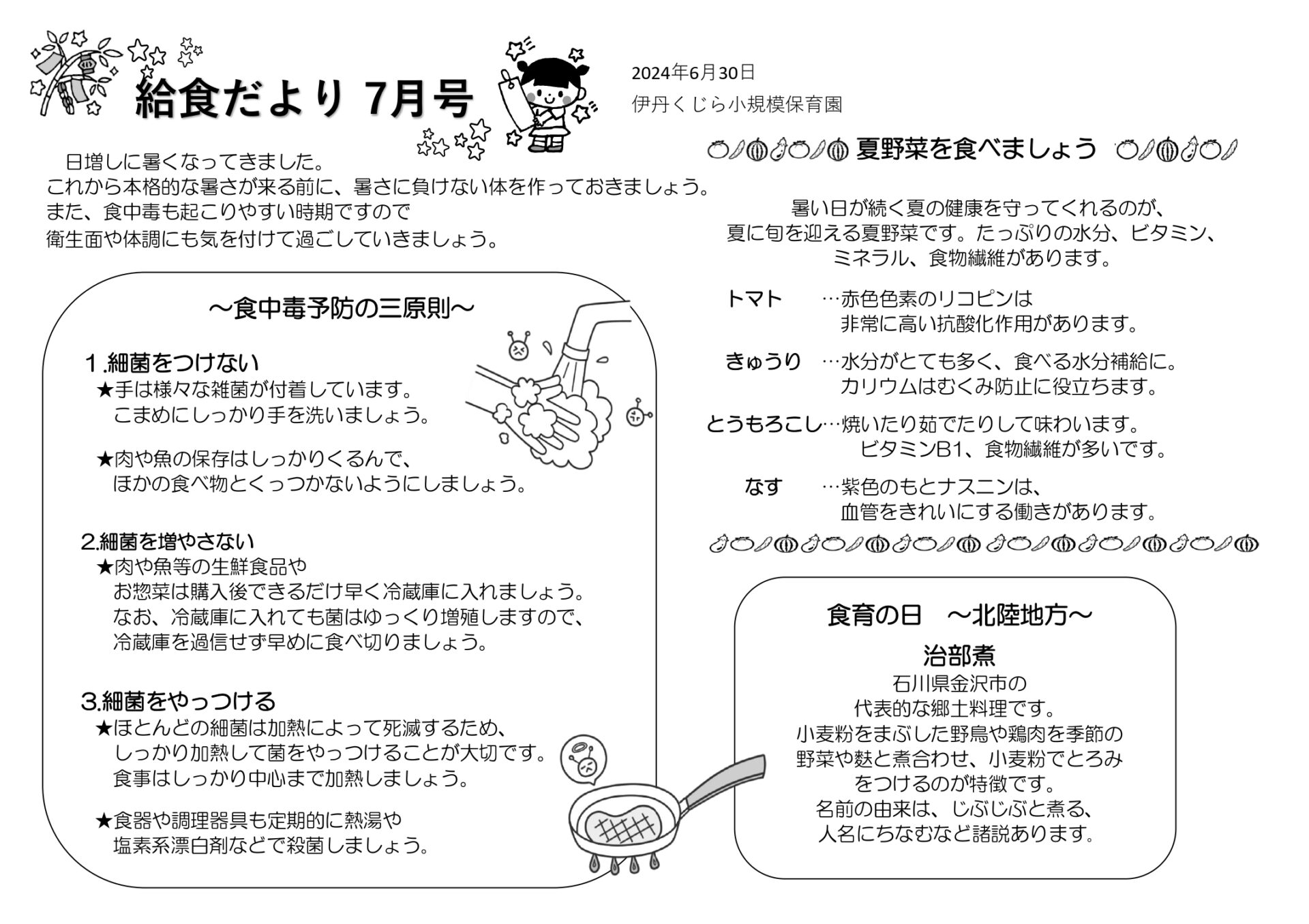 7月の給食だよりと献立表
