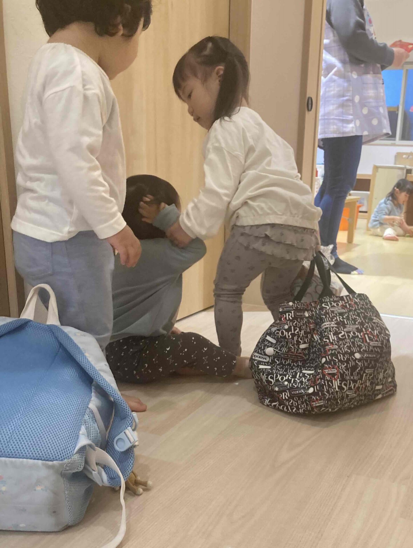 新あめ組のお姉さんたちが、一生懸命だいち組のお友達を