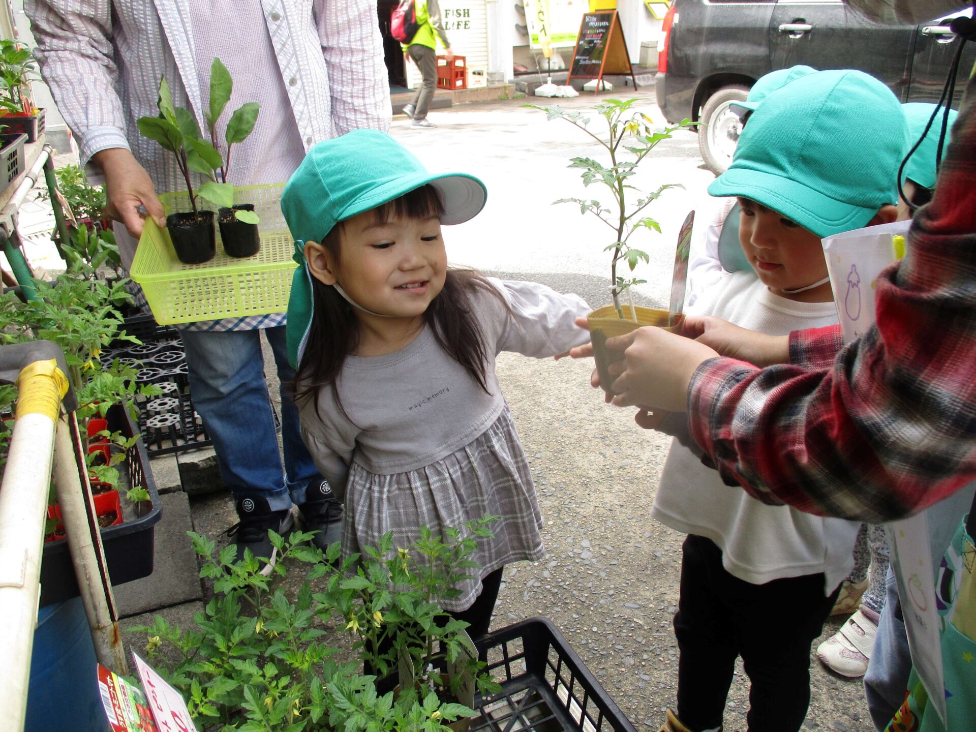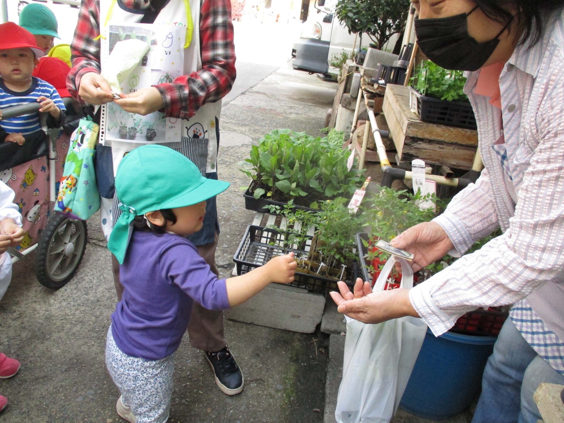 夏に向けて育てる野菜の苗を、みんなで買いに行きました。