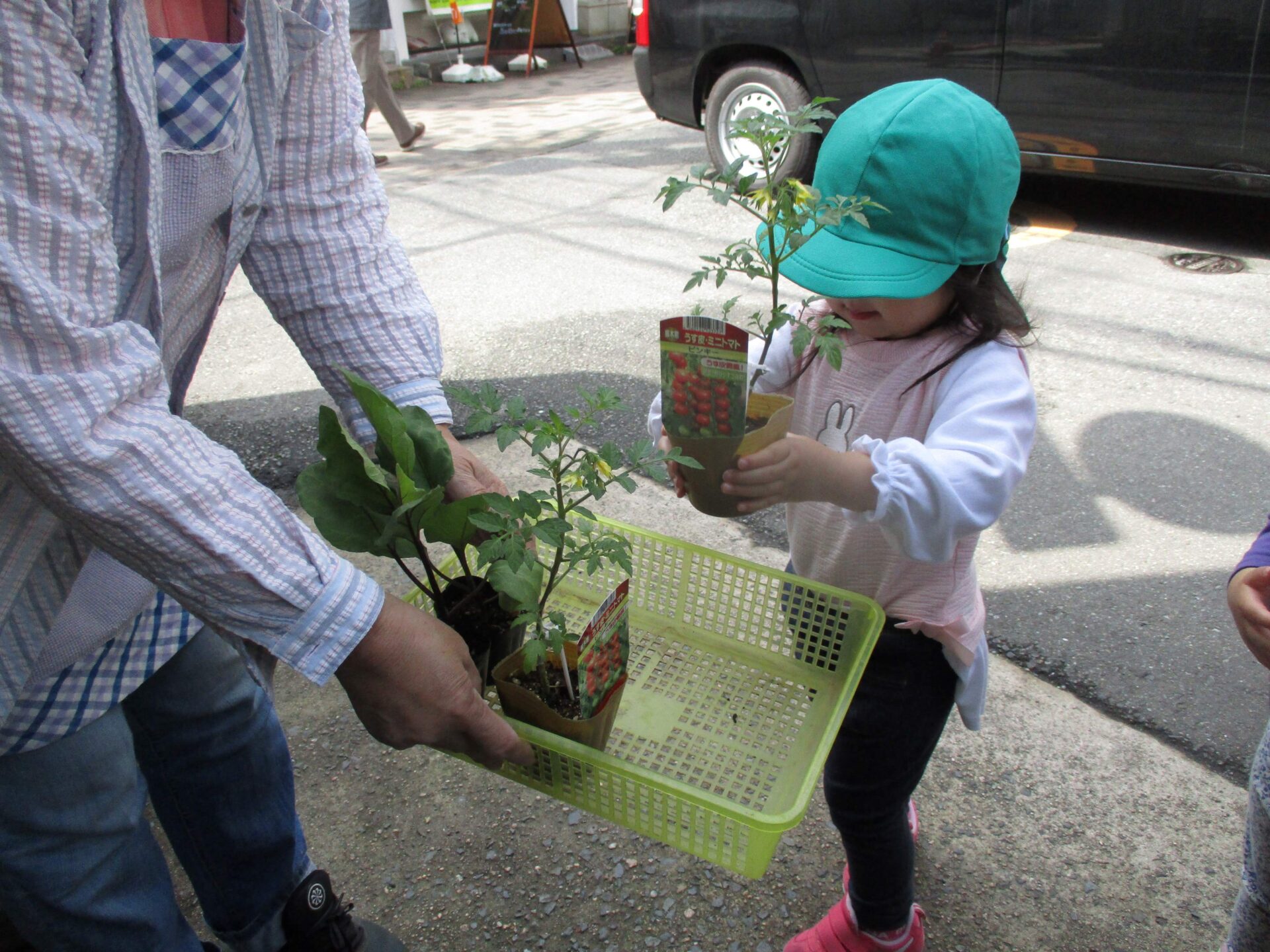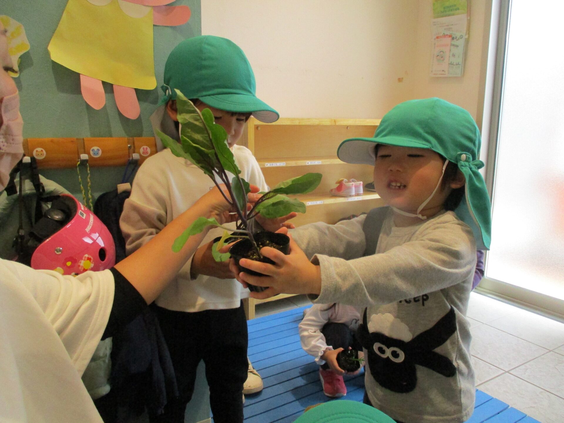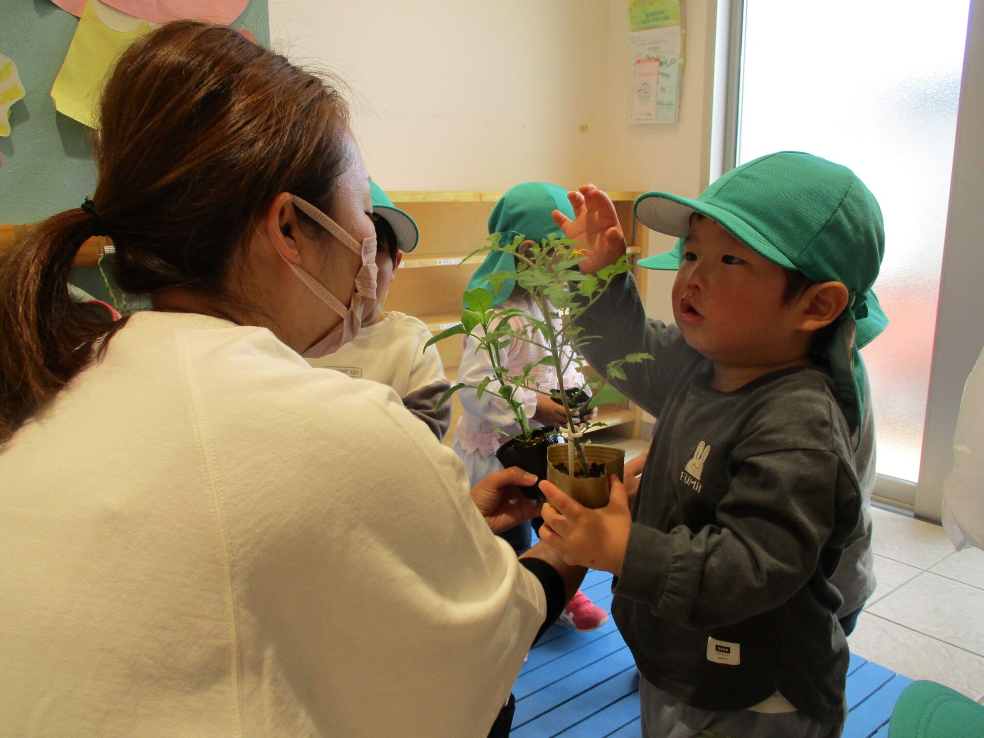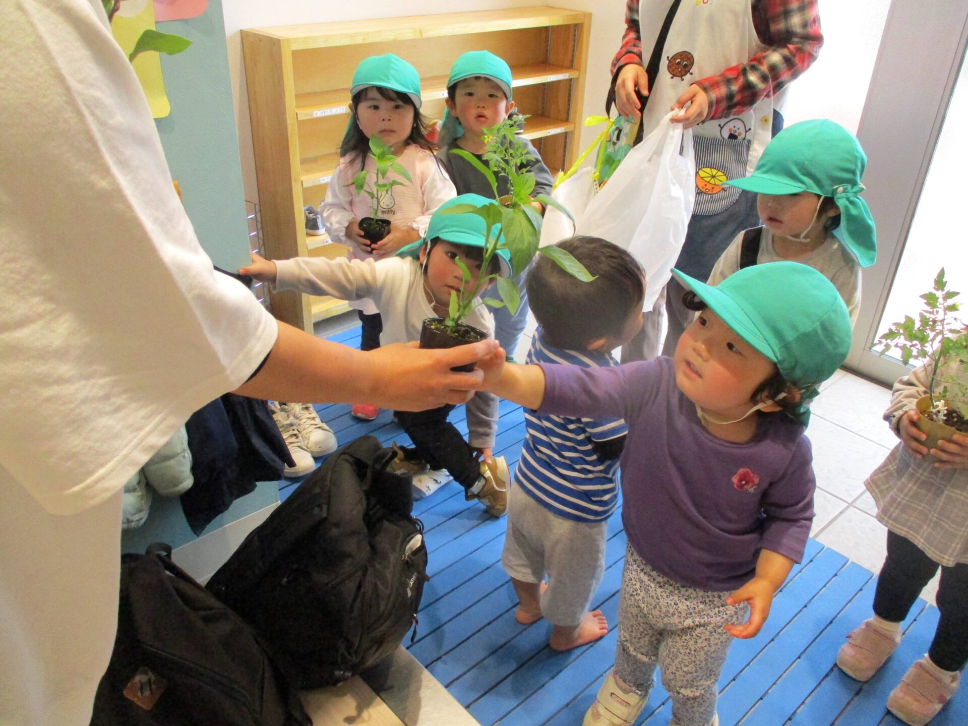 園の前に着いてから、だいち組さんもみんなでじっくり苗を観察しました。