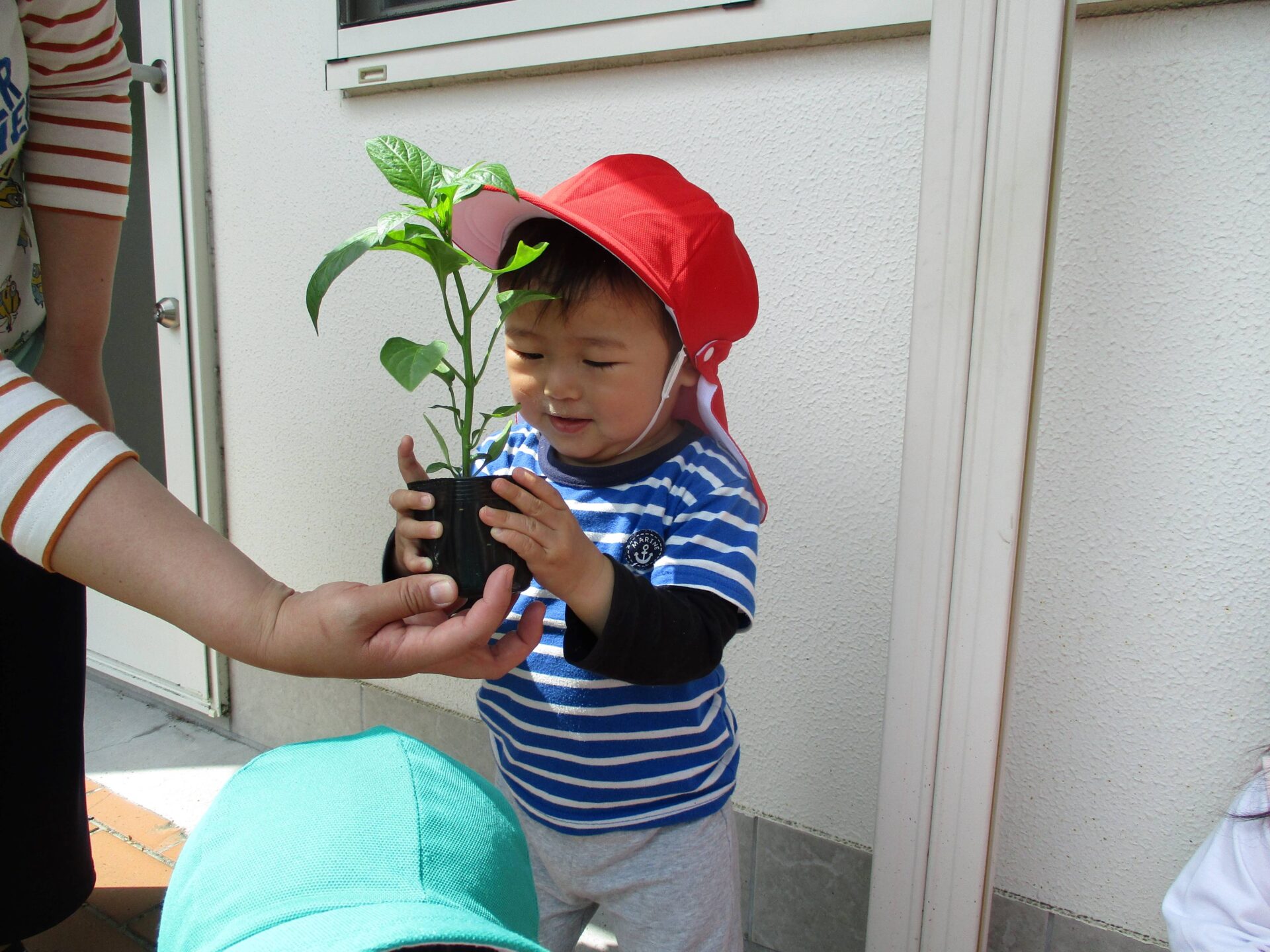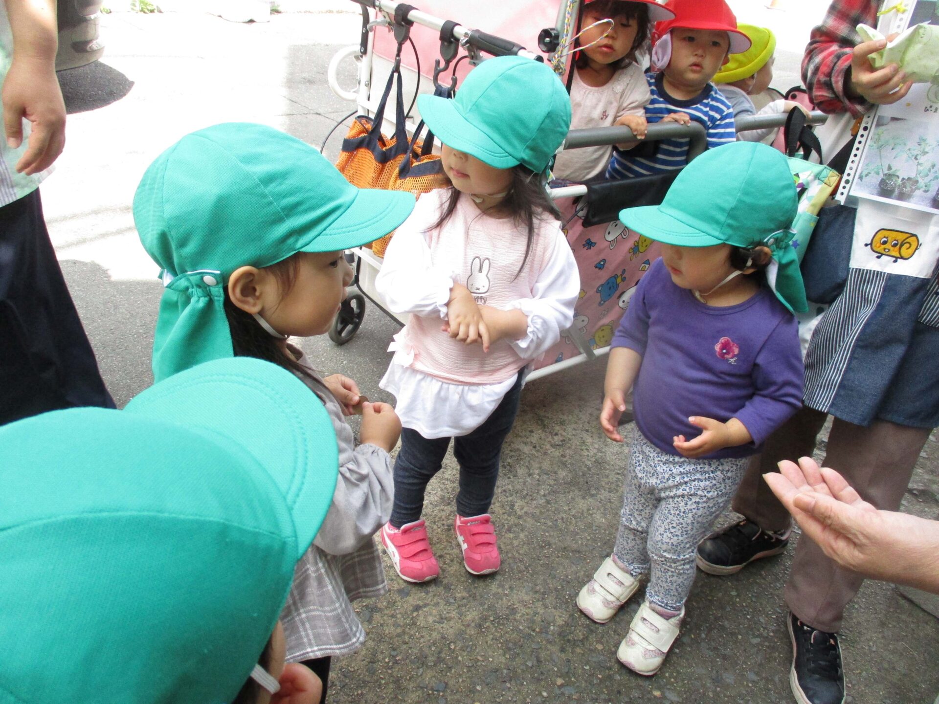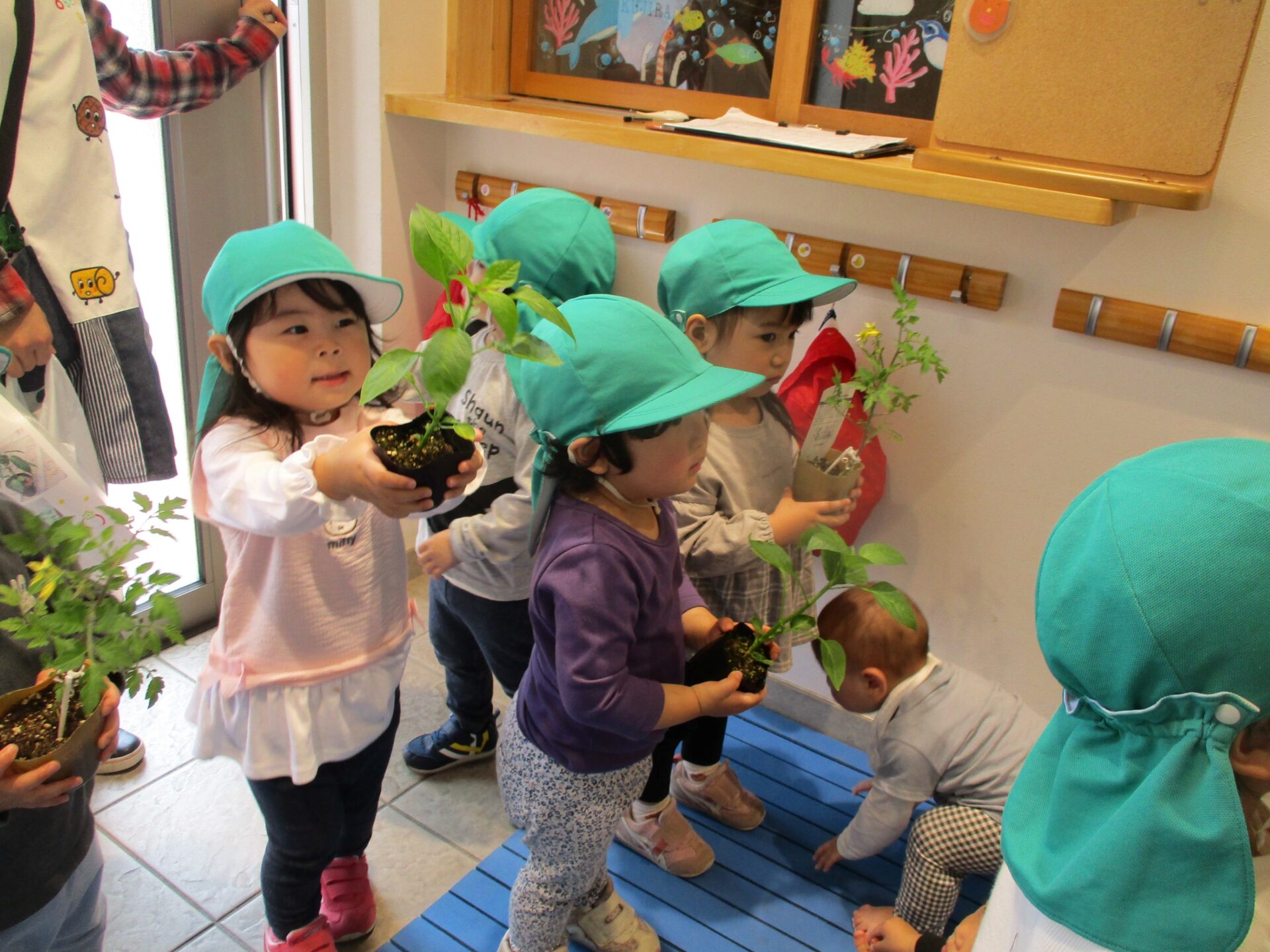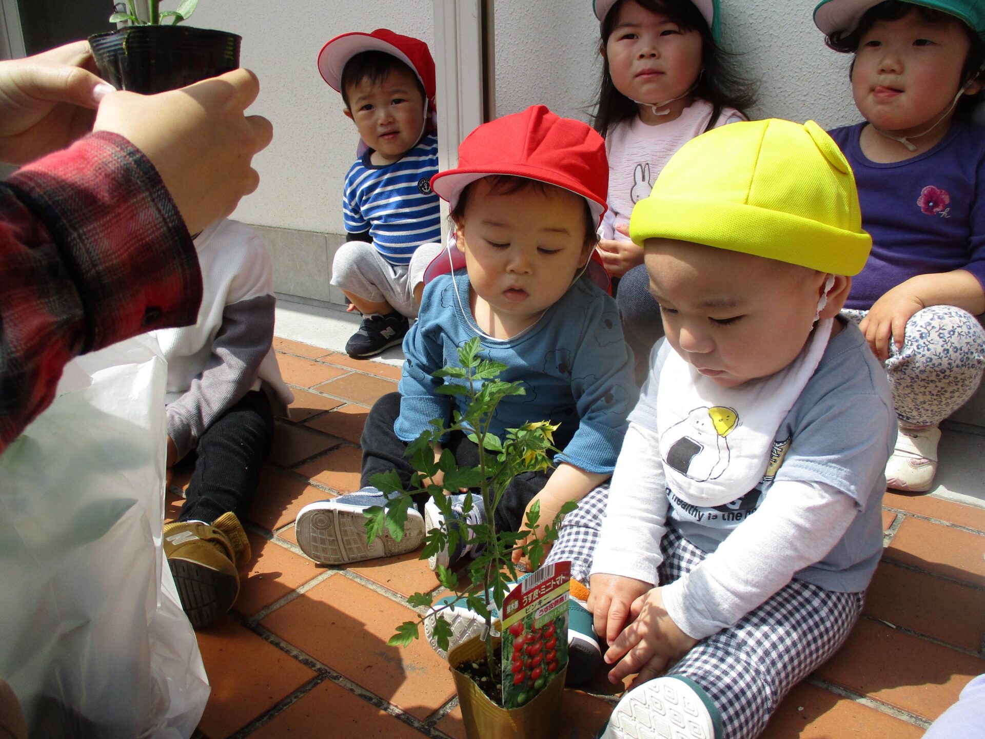 園の前に着いてから、だいち組さんもみんなでじっくり苗を観察しました。