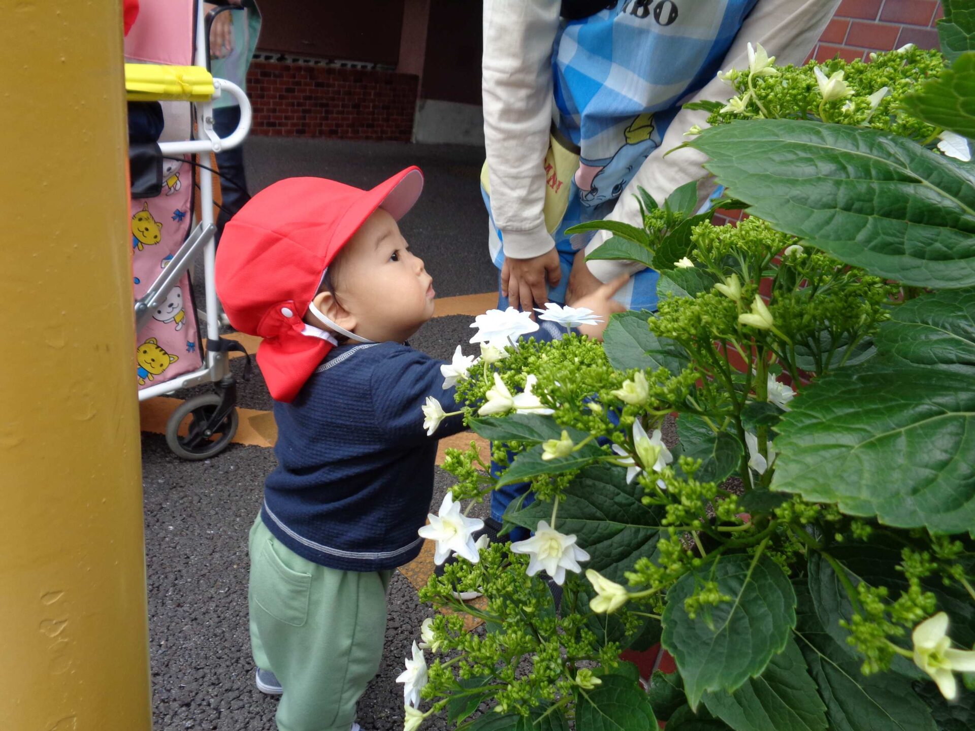 連休明けの今日は、子どもたちにとって、少し久しぶりの保育園生活と、雨上がりということもあって、ゆっくりのんびり周辺散歩に出掛けました。