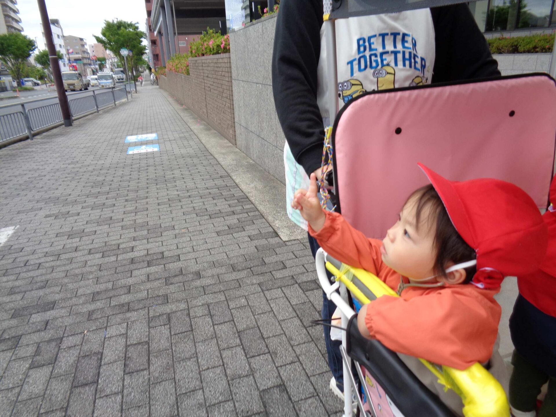 自分より上に目をやることは、小さい子にとって簡単なことではないのですが、乗り物が大好きなので、音を聴いて見つけていました✨