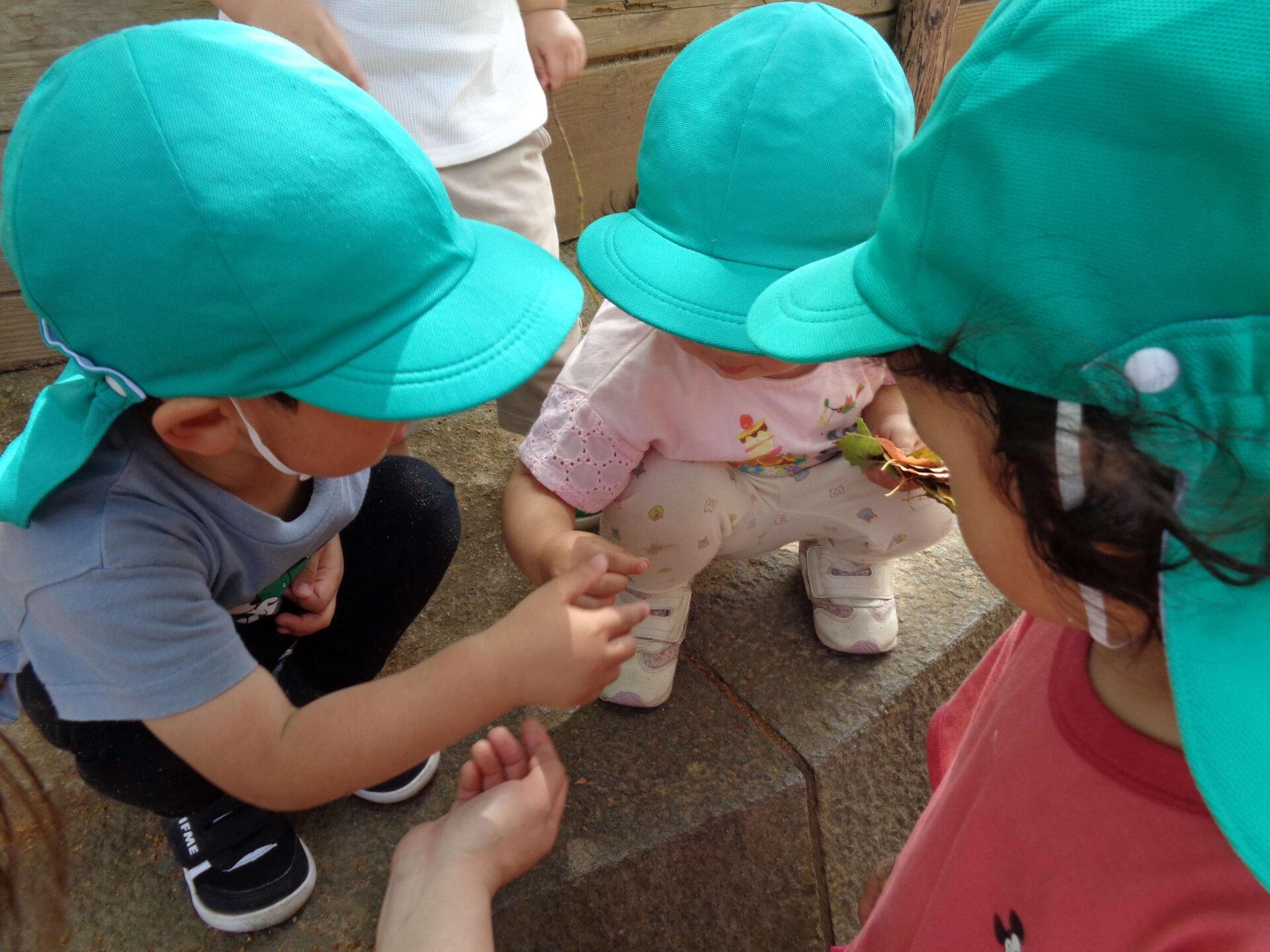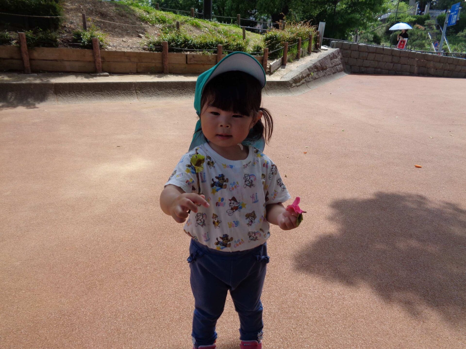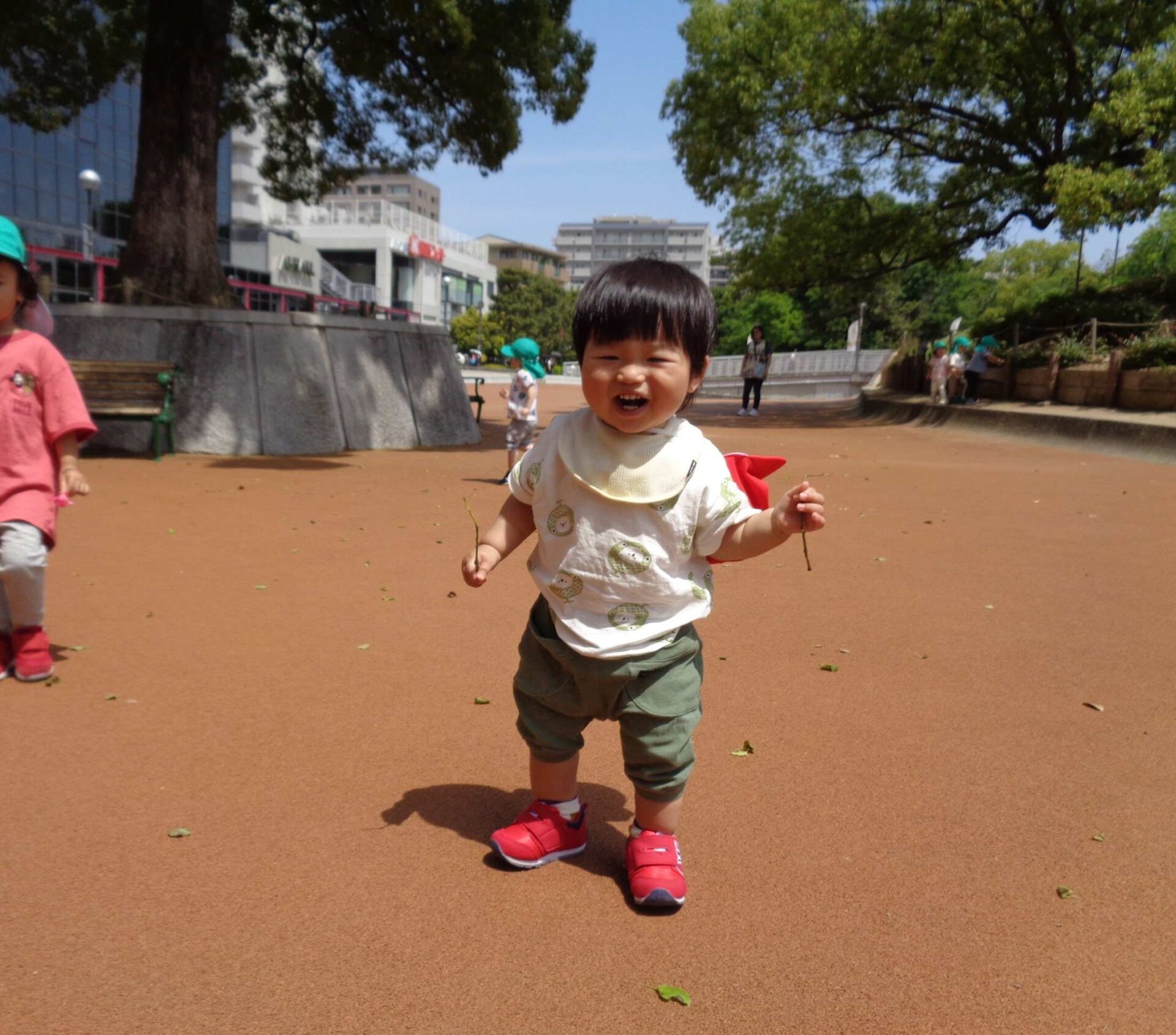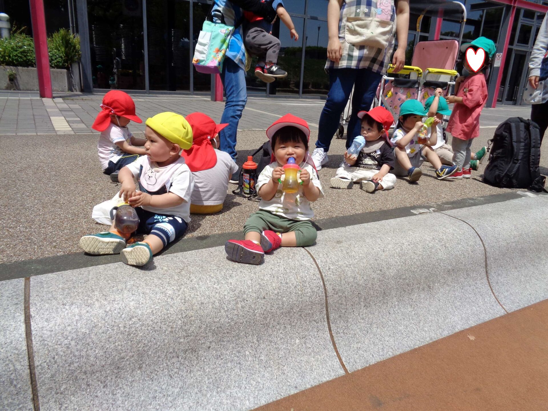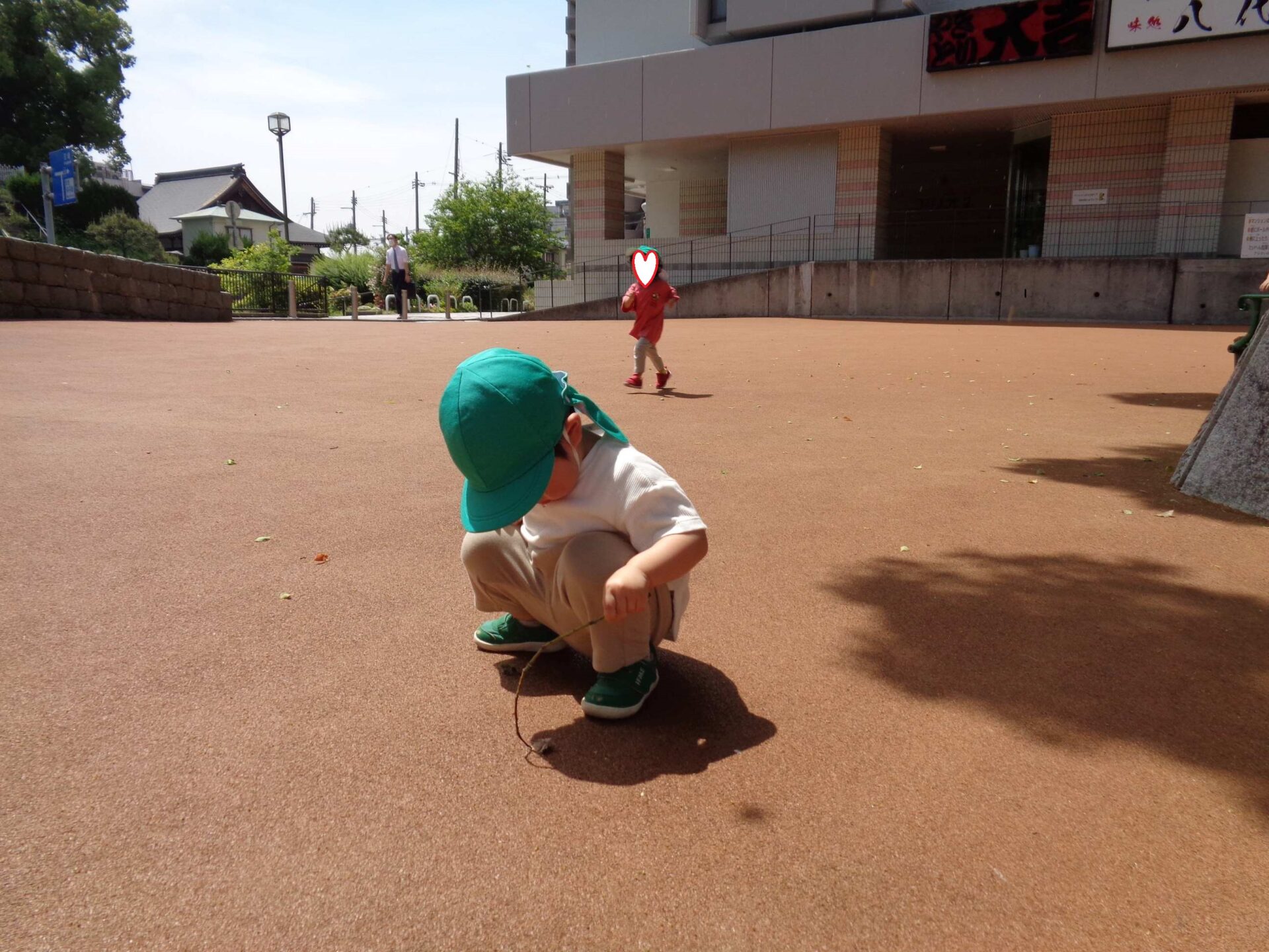 とても良い天気だったこの日は、全園児で駅前広場に遊びに行きました。