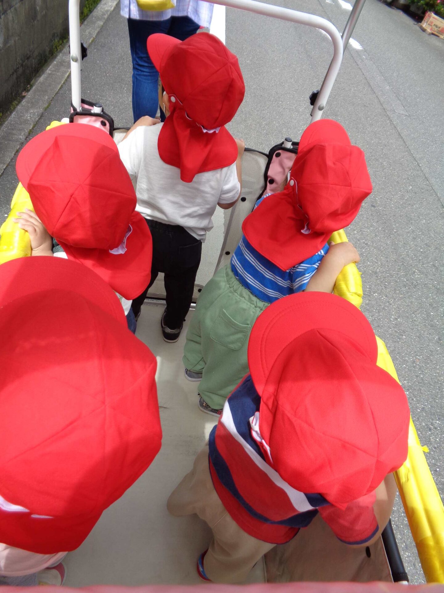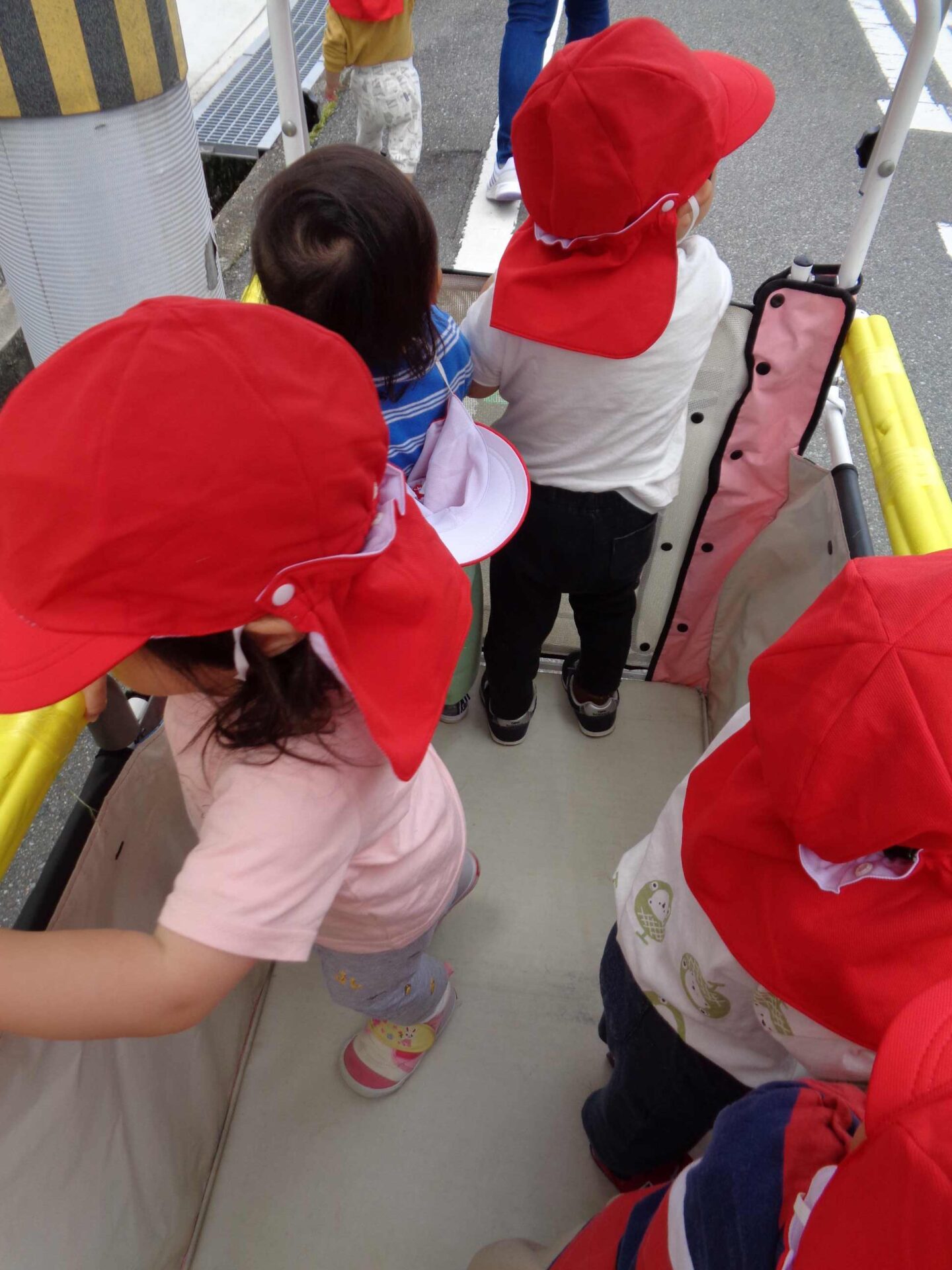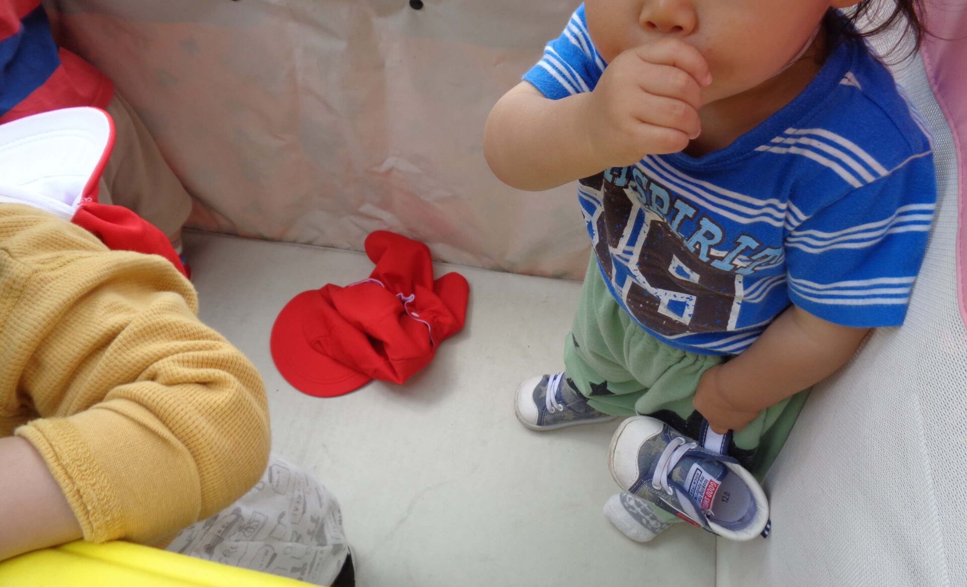 カートの中は、いつ脱いだのか、靴や帽子が落ちていました💦