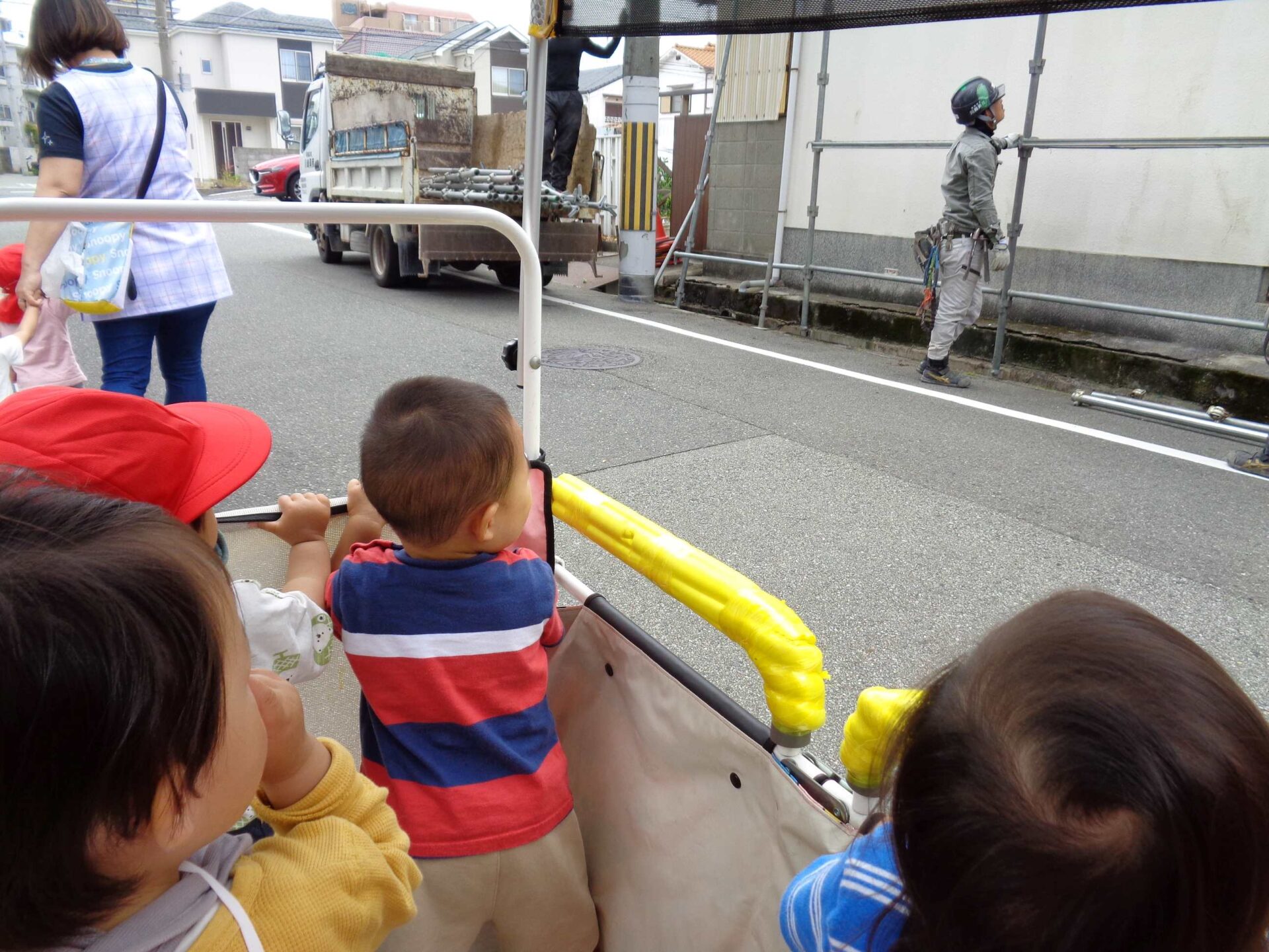工事現場の前を通ると、みんなで目で追います。
