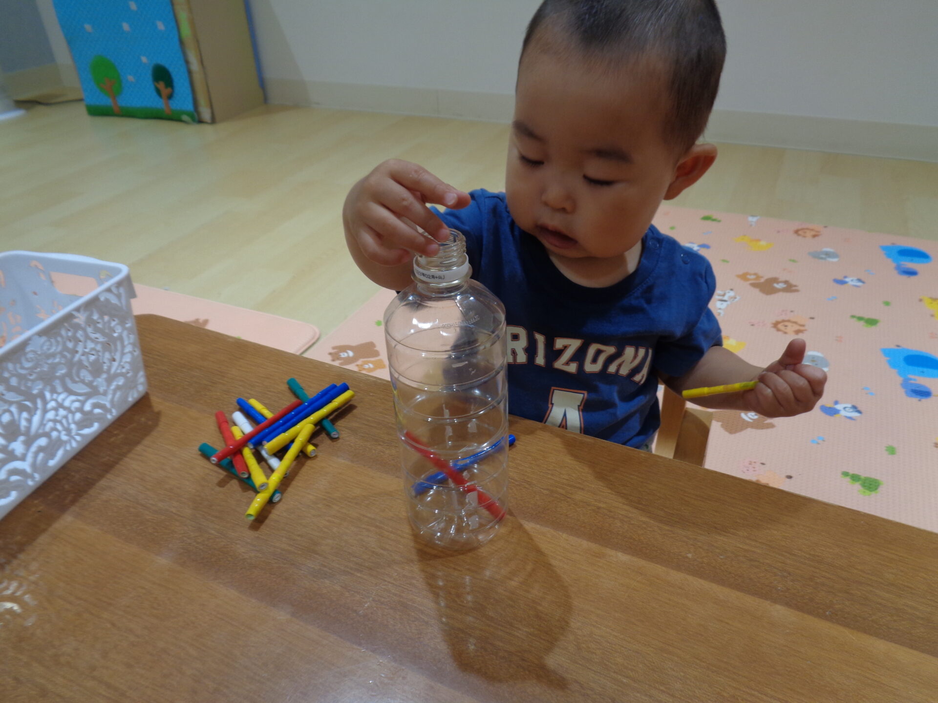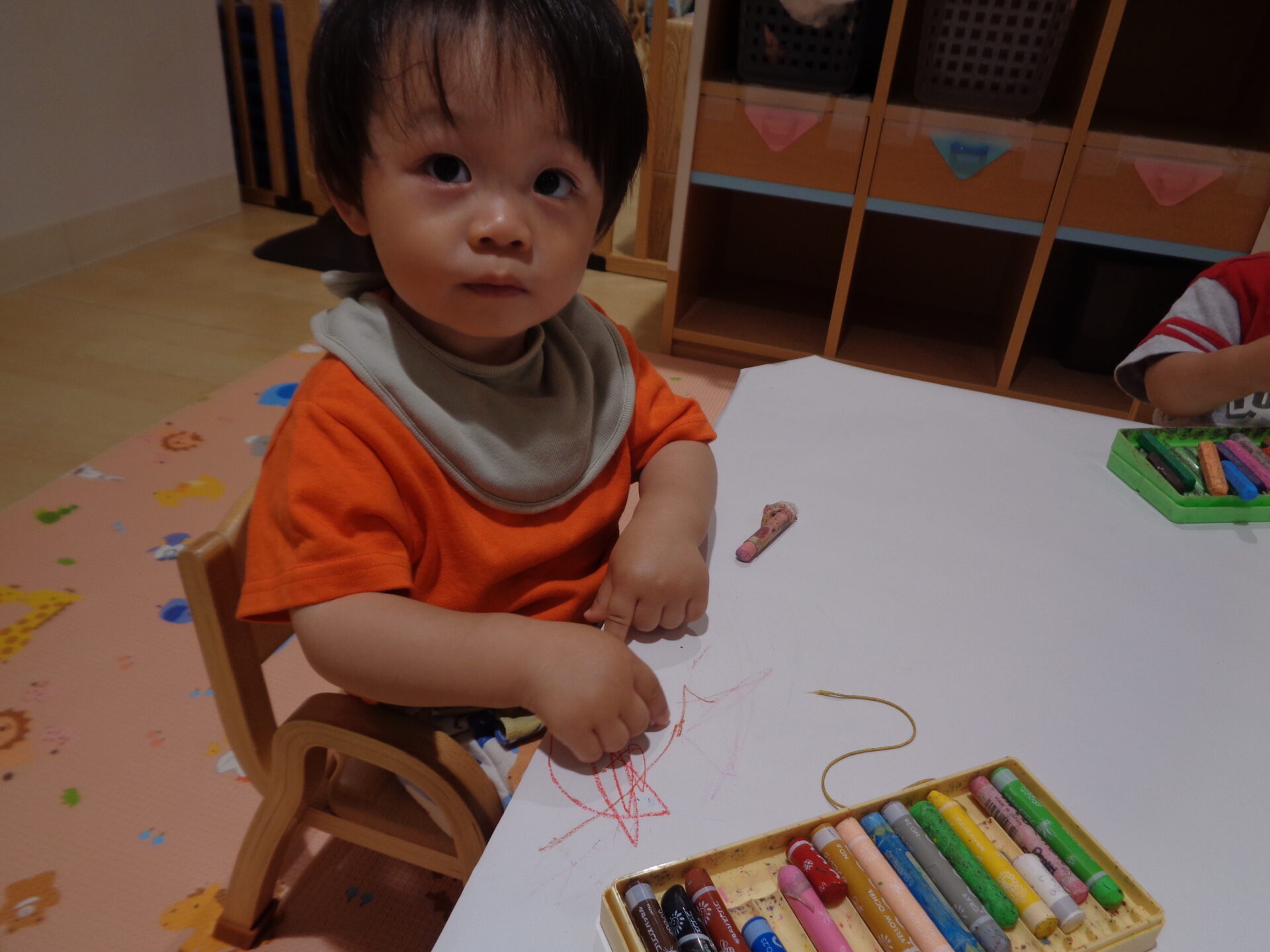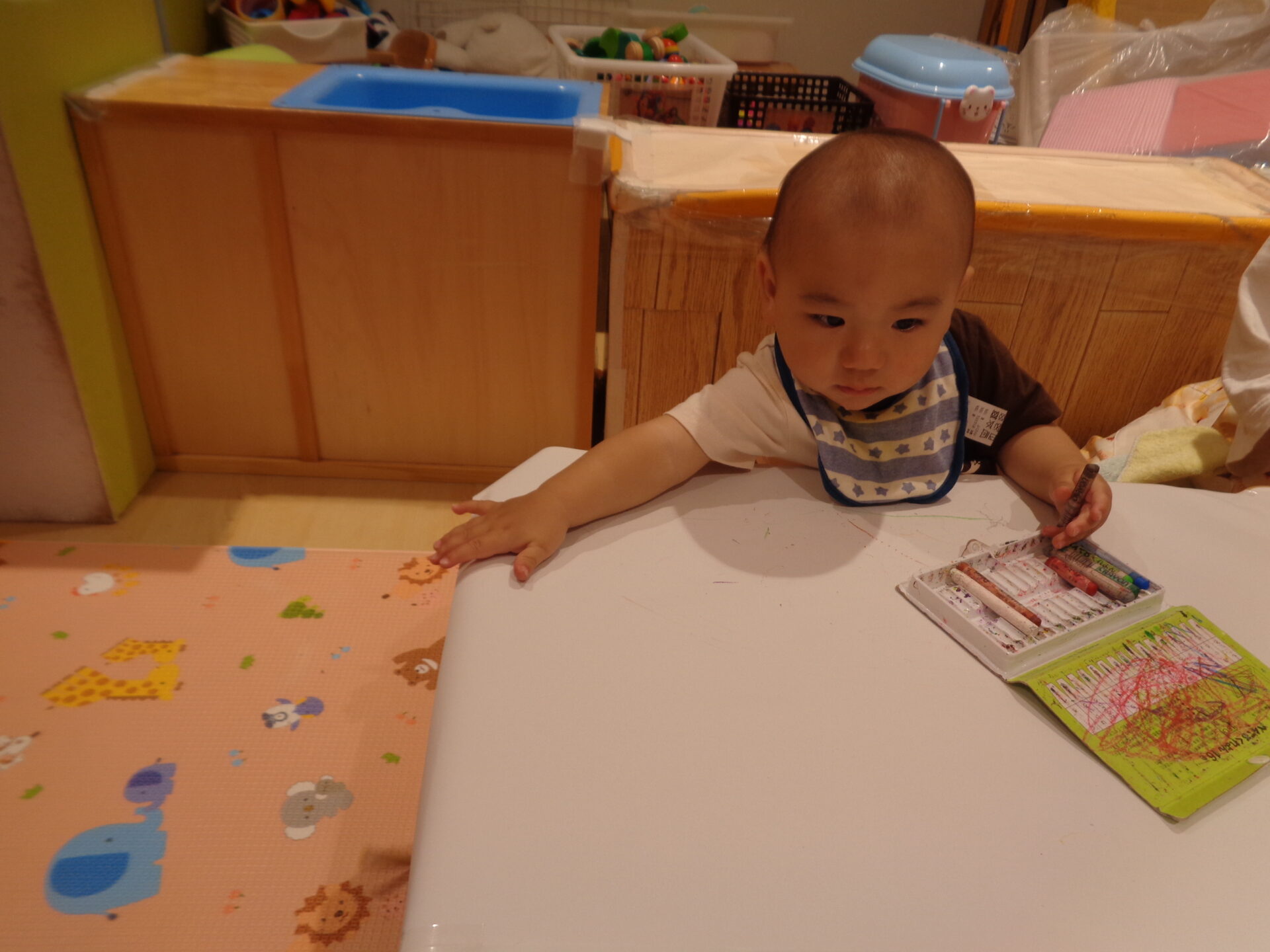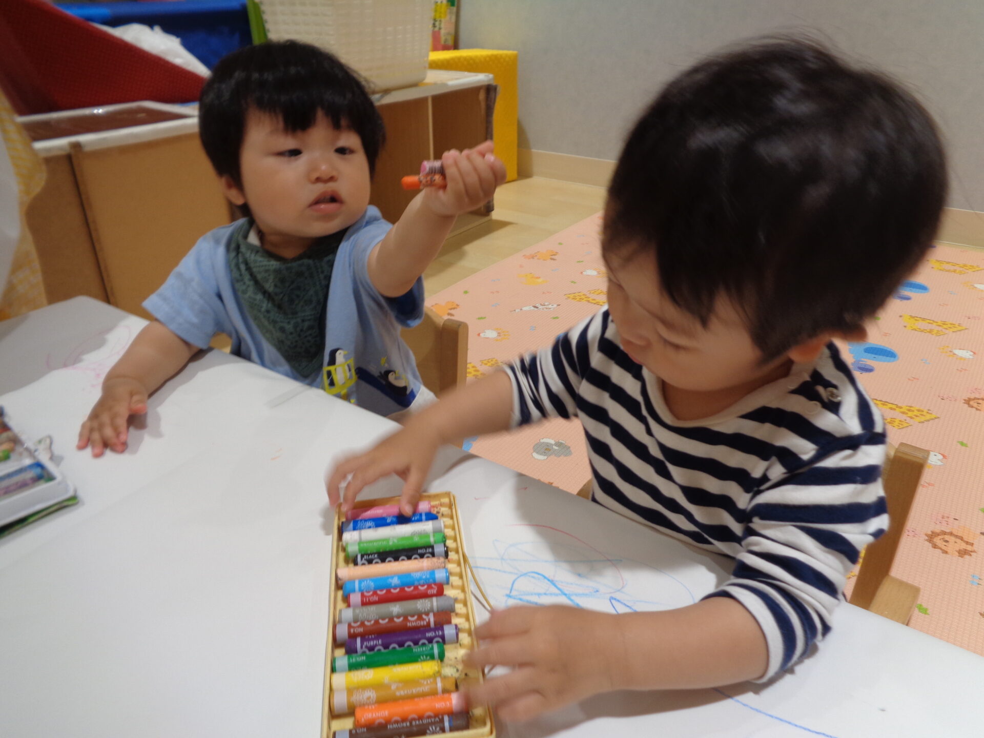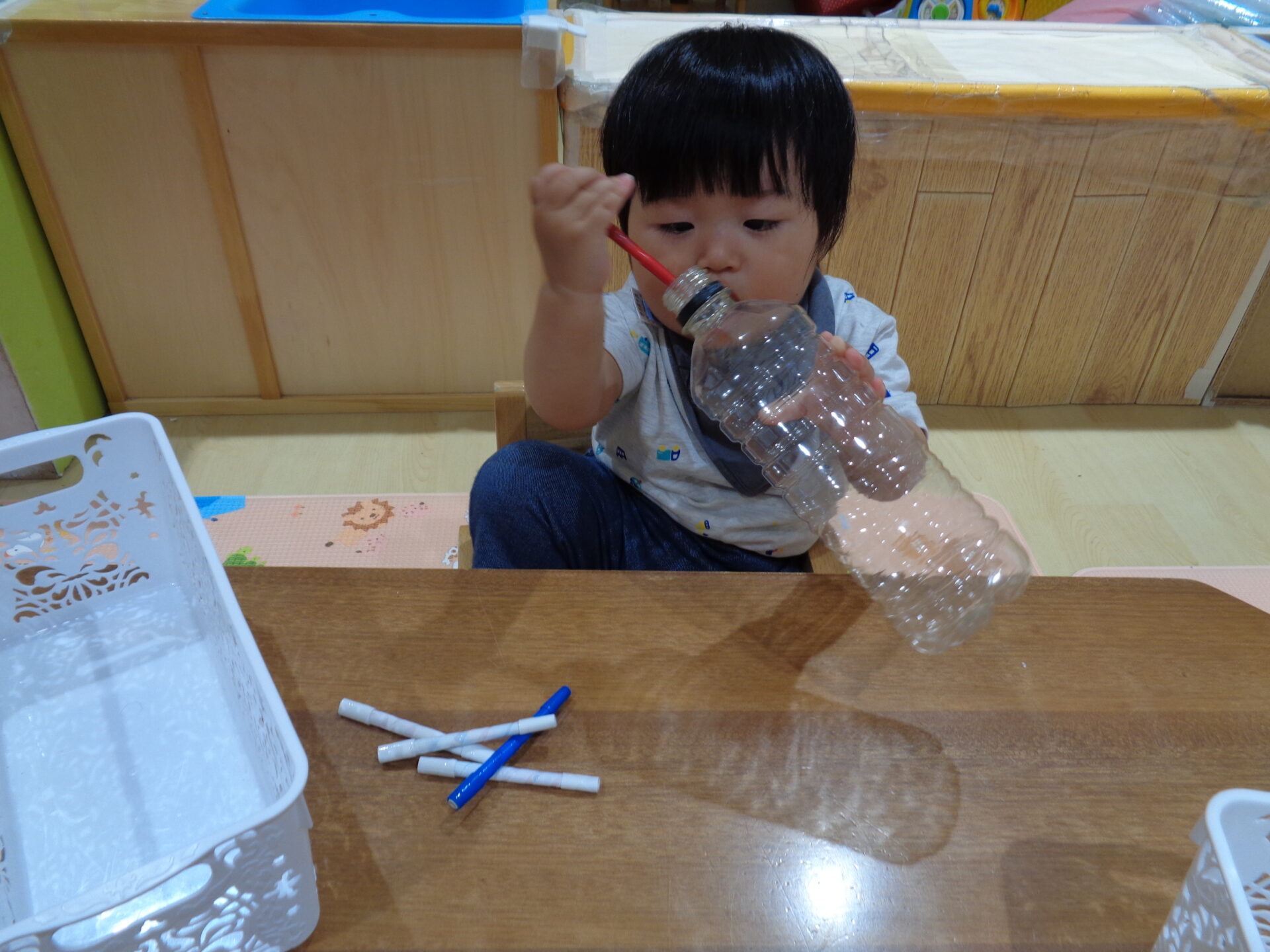 うみ組さんは、描くよりも、机の下に落とすのが楽しかったようです。