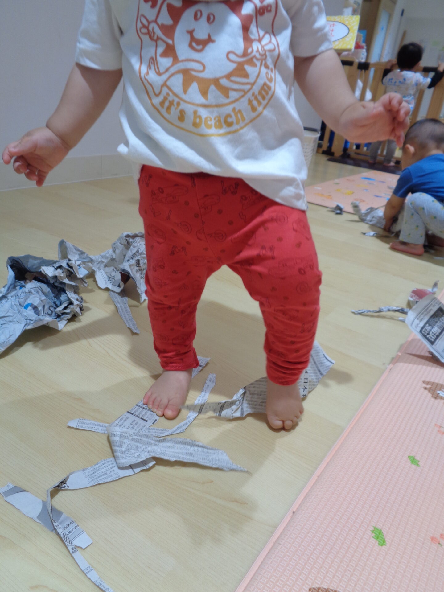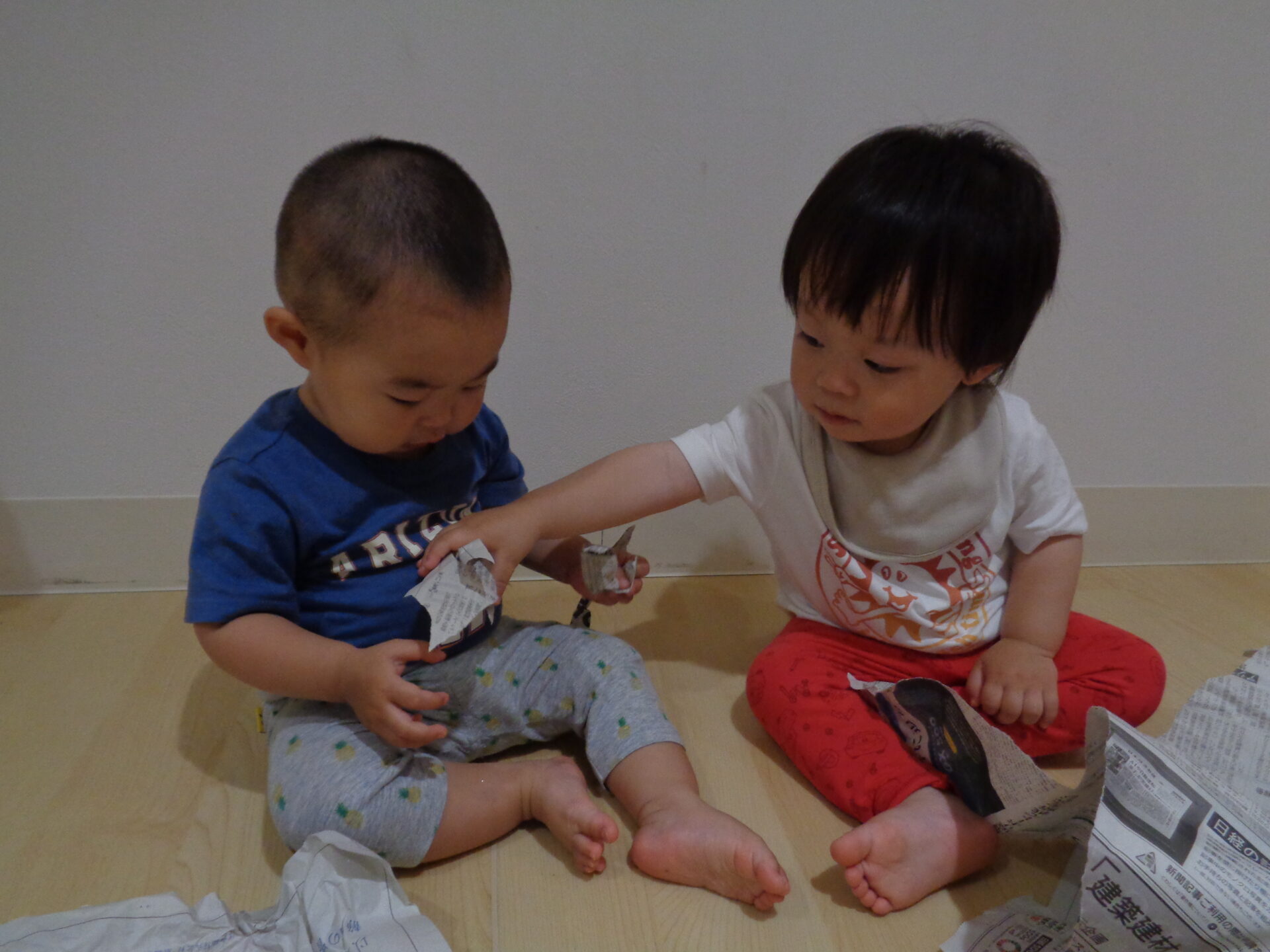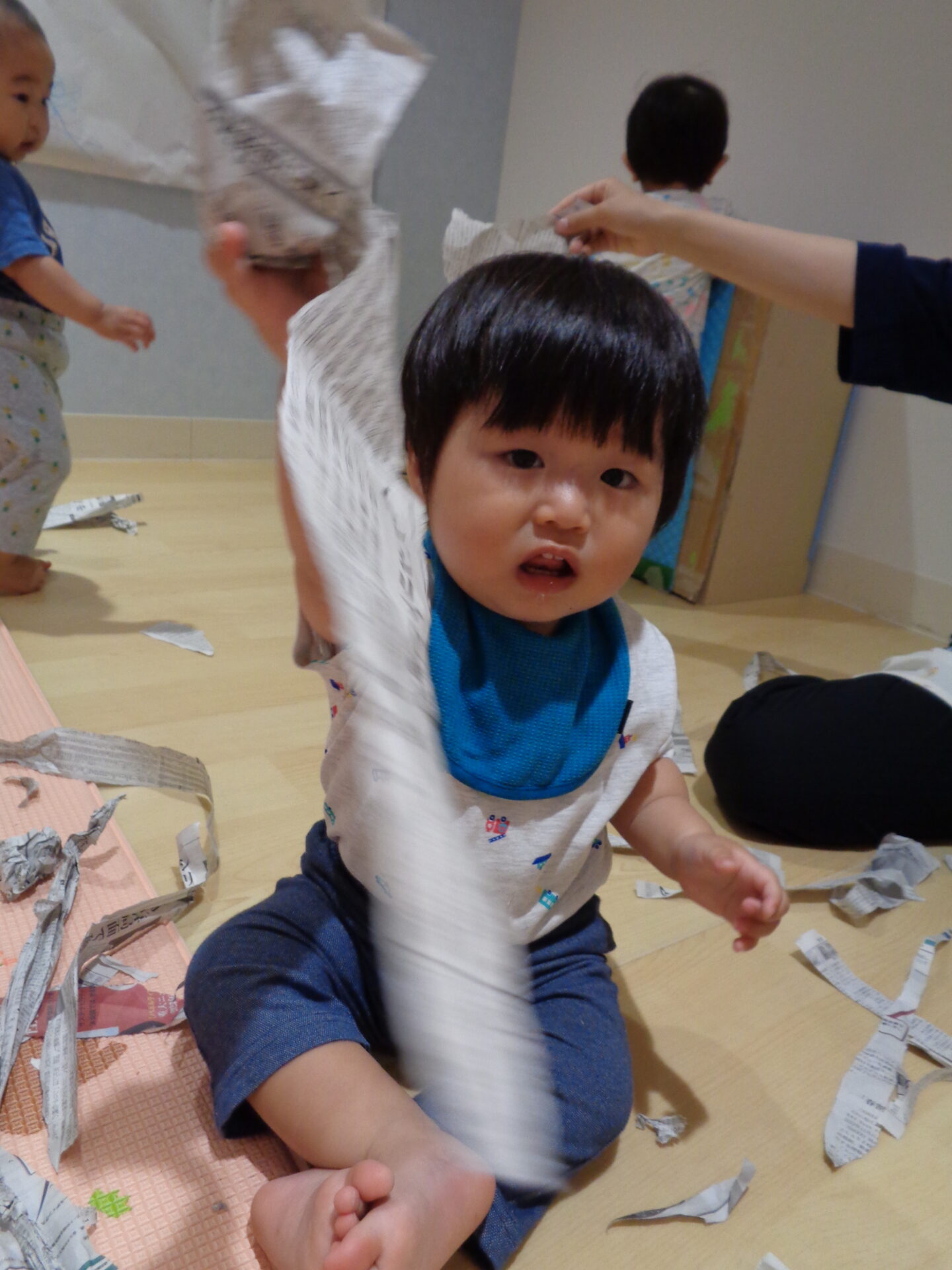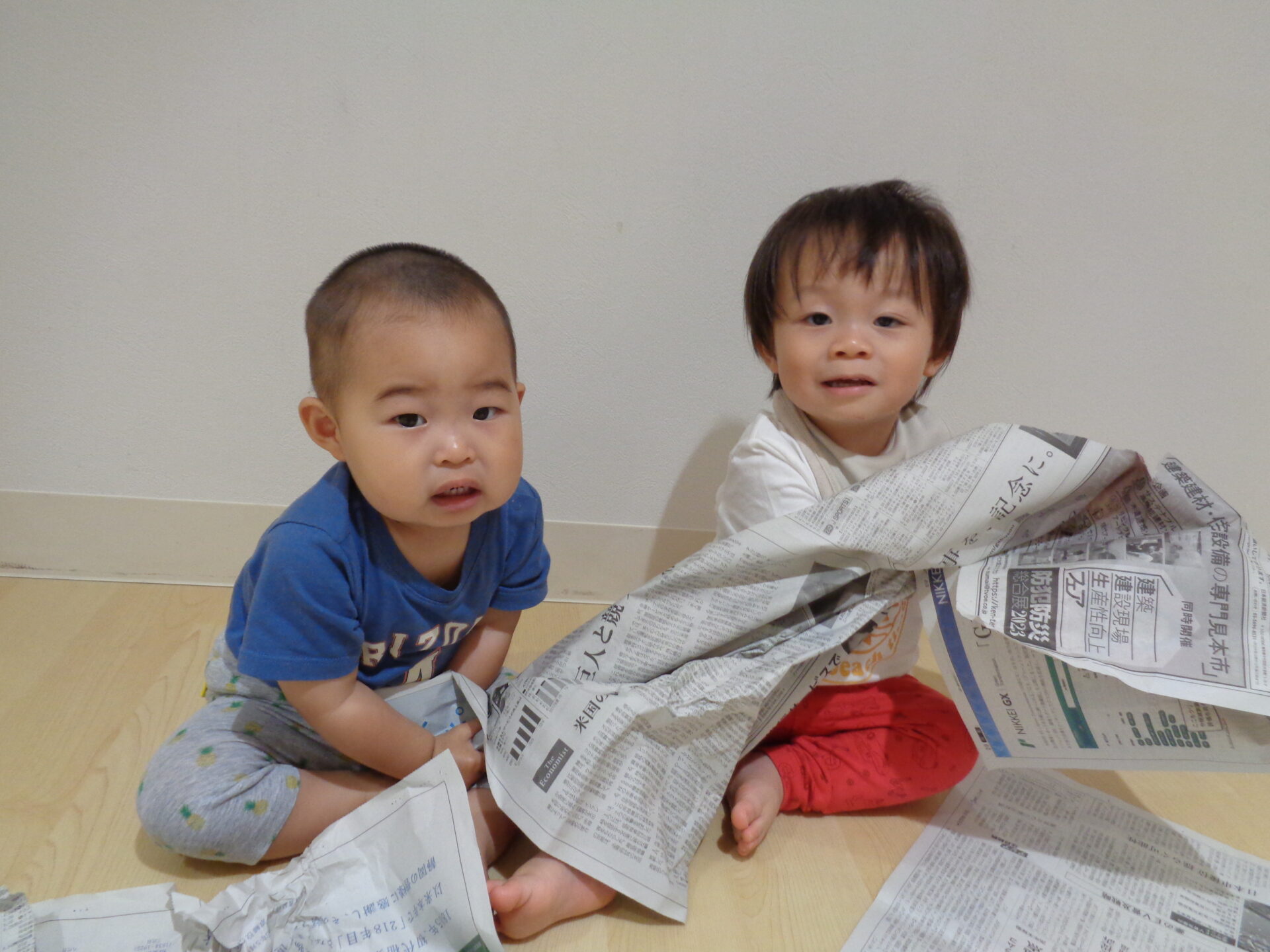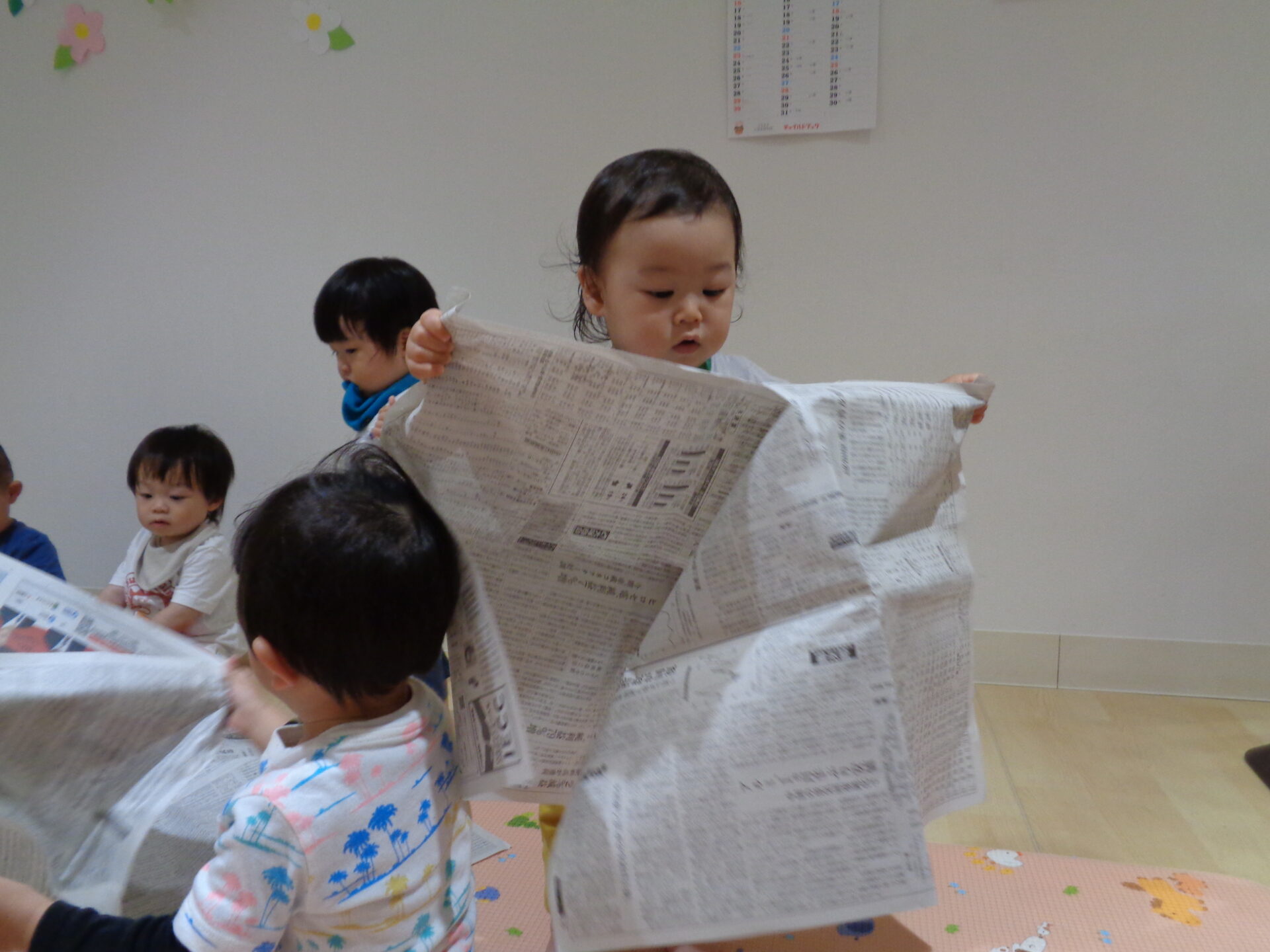 次の日は、新聞紙遊びをしました。