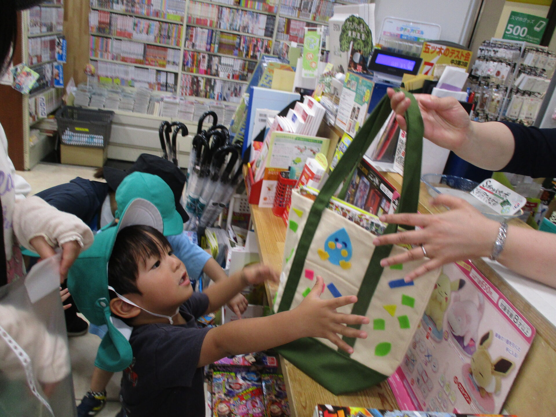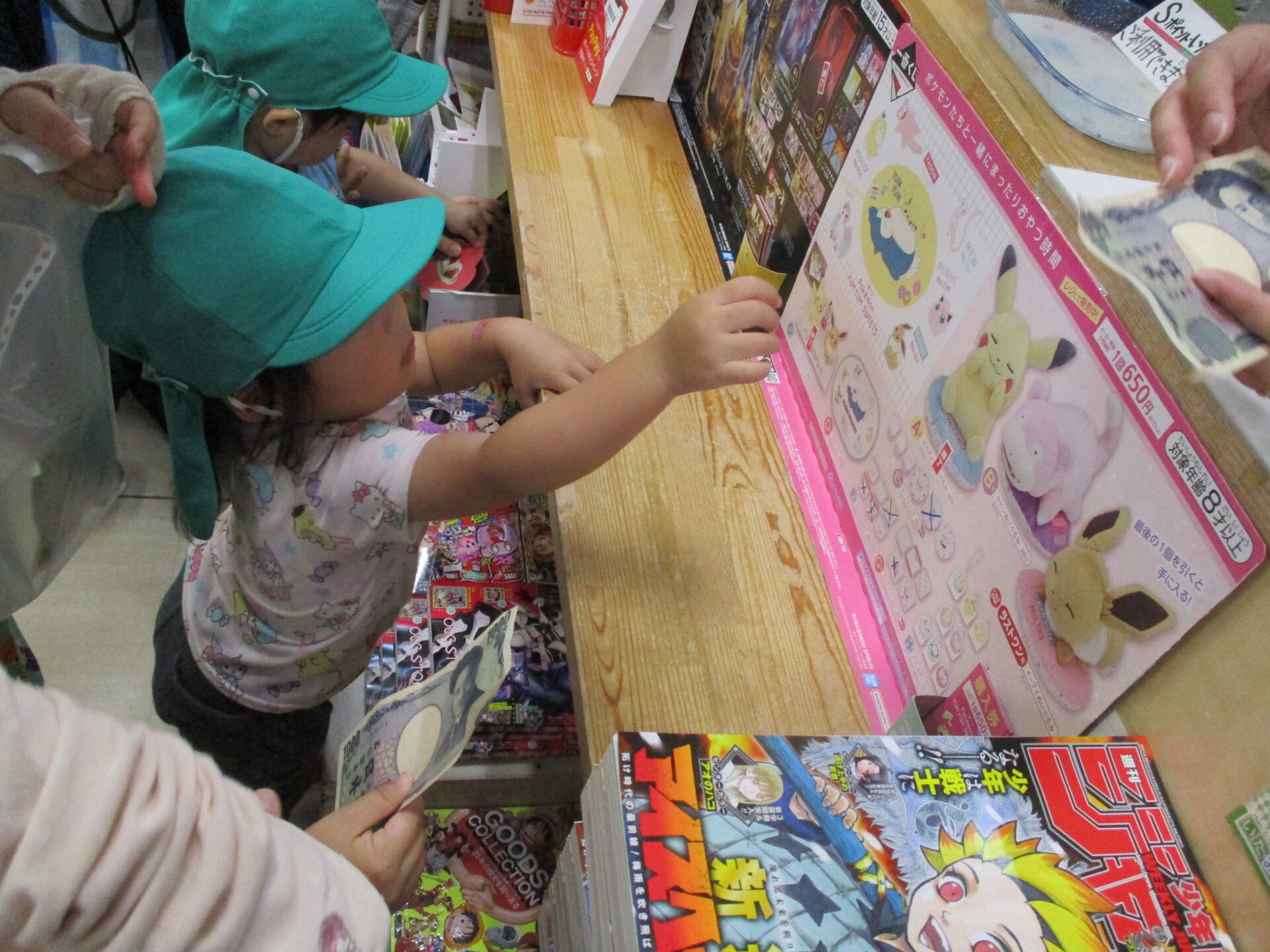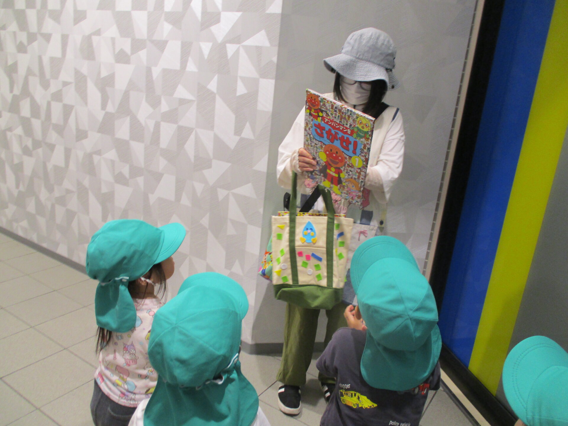 保育士から「アンパンマンの絵本を買いに行くよ。」と聞き、大喜びの子ども達。お店に向かう時もアンパンマンの歌を口ずさんだりと期待たっぷりの様子でした。