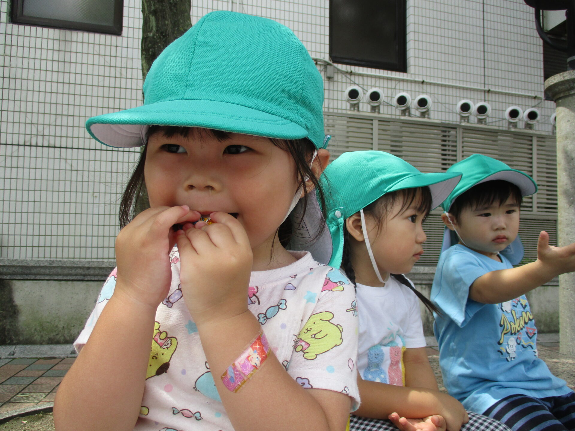 帰りは、三軒寺広場でおやつ休けいをしました。