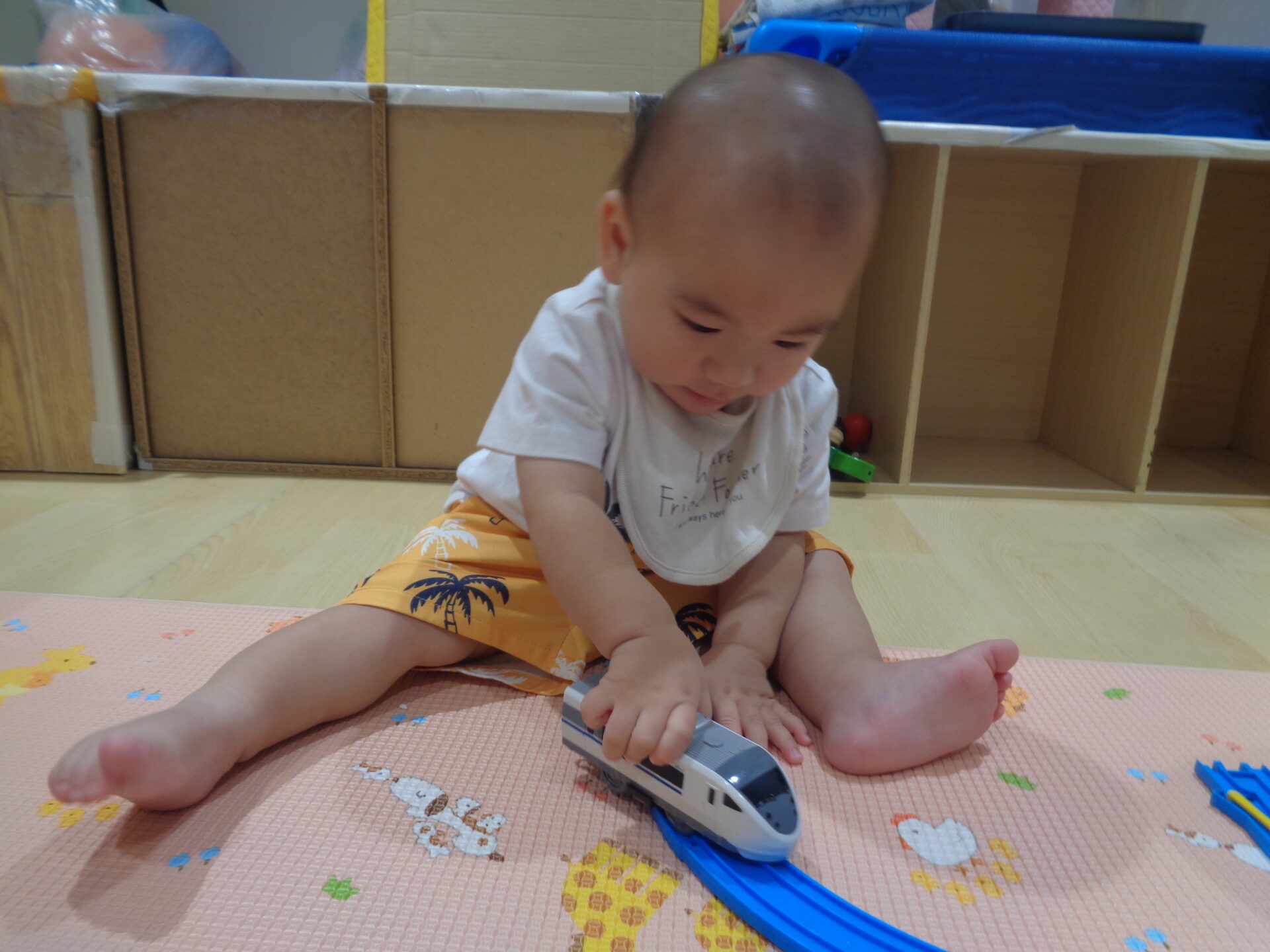 普段は木の電車で遊んでいるので、あまり見たことのないプラレールに、目をキラキラと輝かせていました✨