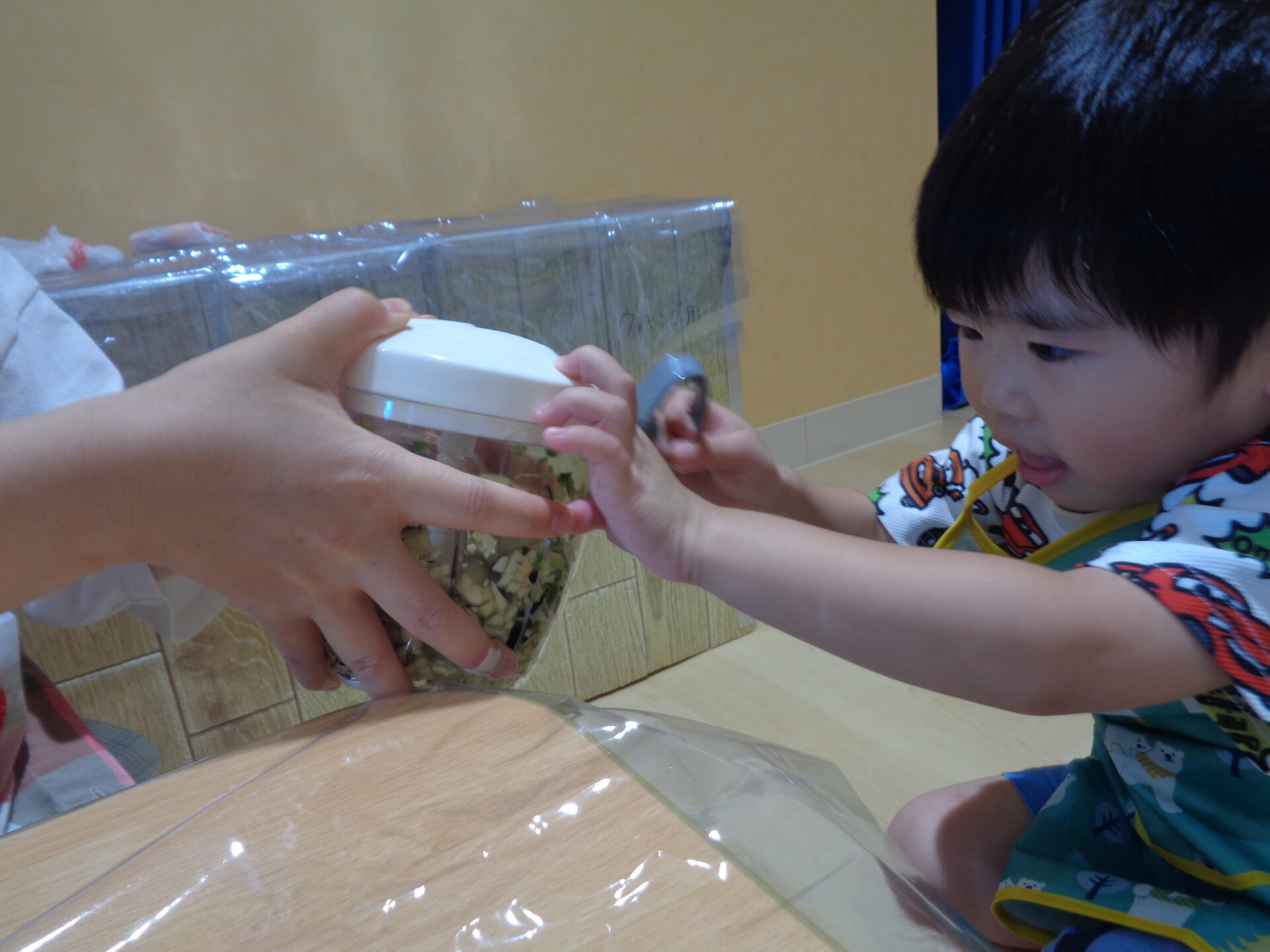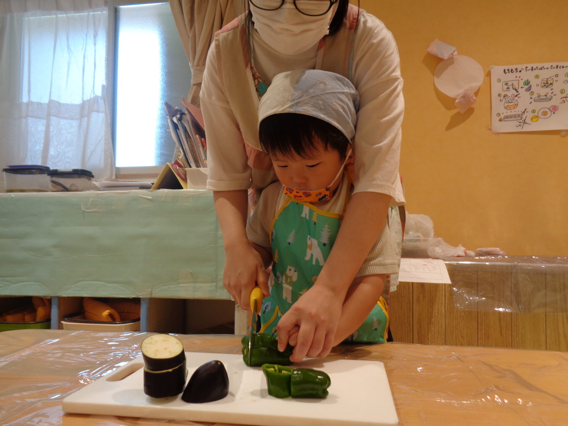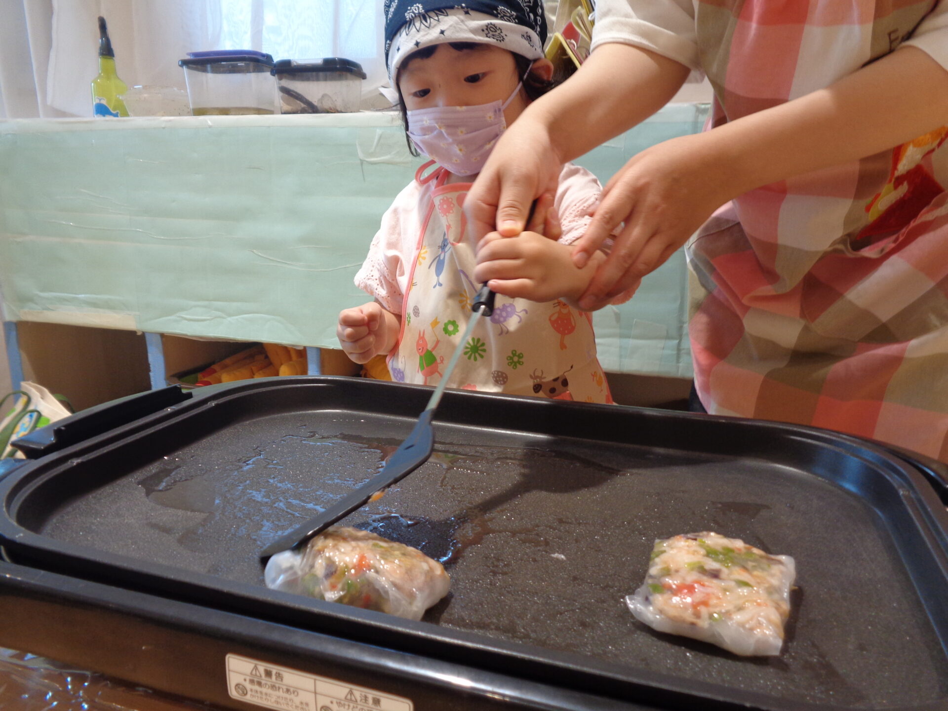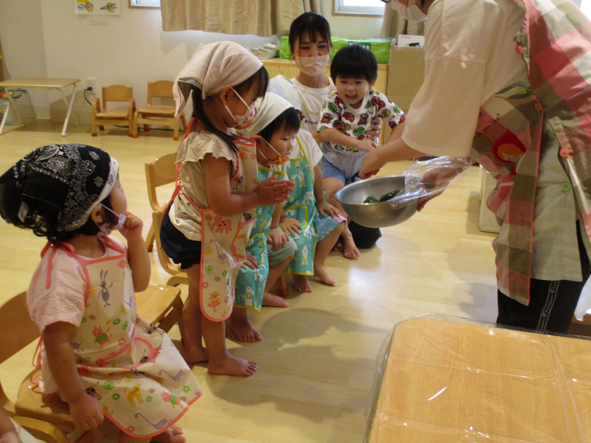 クッキング②夏野菜でライスクレープを作ったよ🍅(2歳児 あめ組)