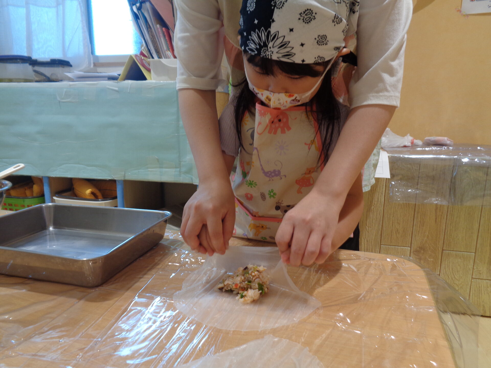 事前にライスペーパーに見立てて巻く等、予習をしてから、当日を迎えました。