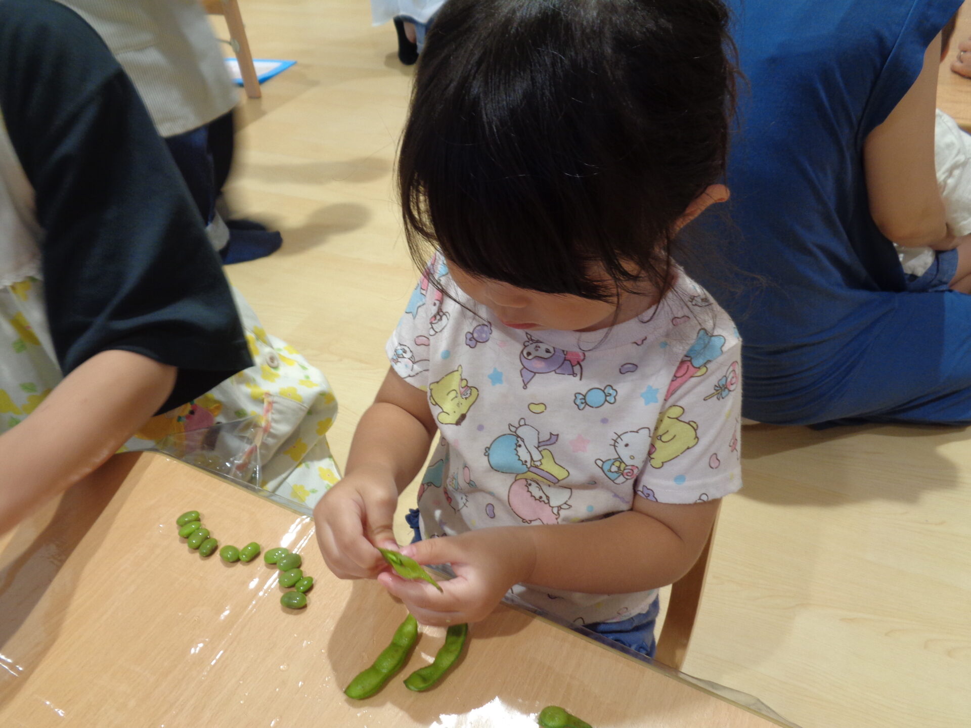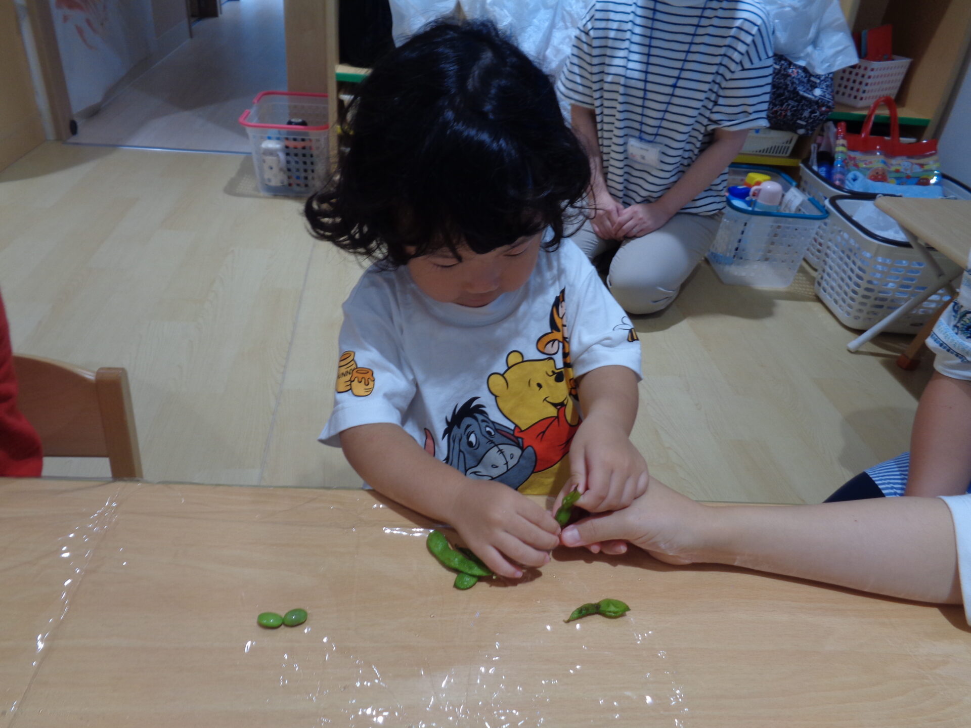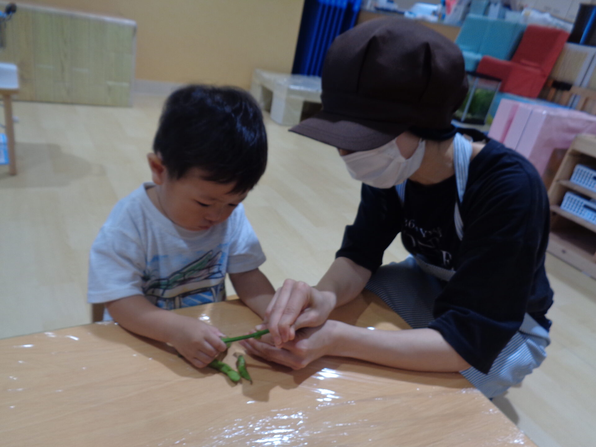 枝豆クッキング🌟(1,2歳児 だいち,あめ組)