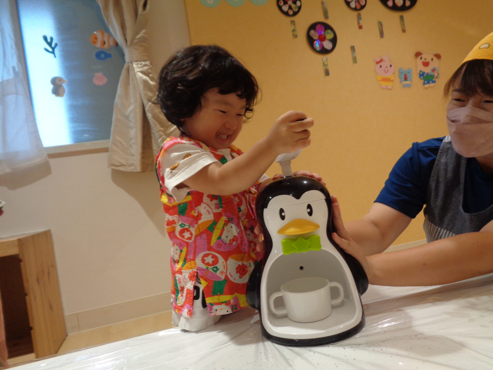 最後にカキ氷を作って食べました。一人ひとり順番に作りました!!