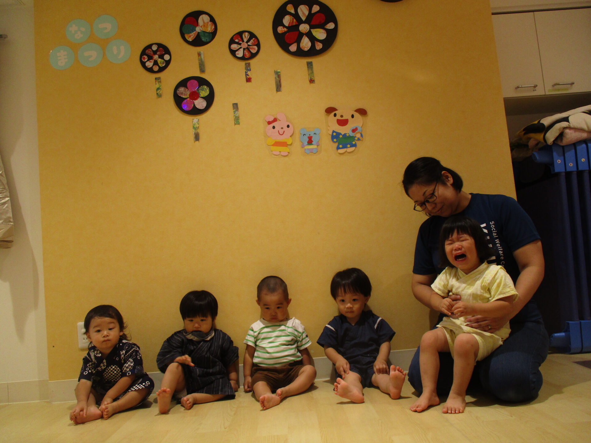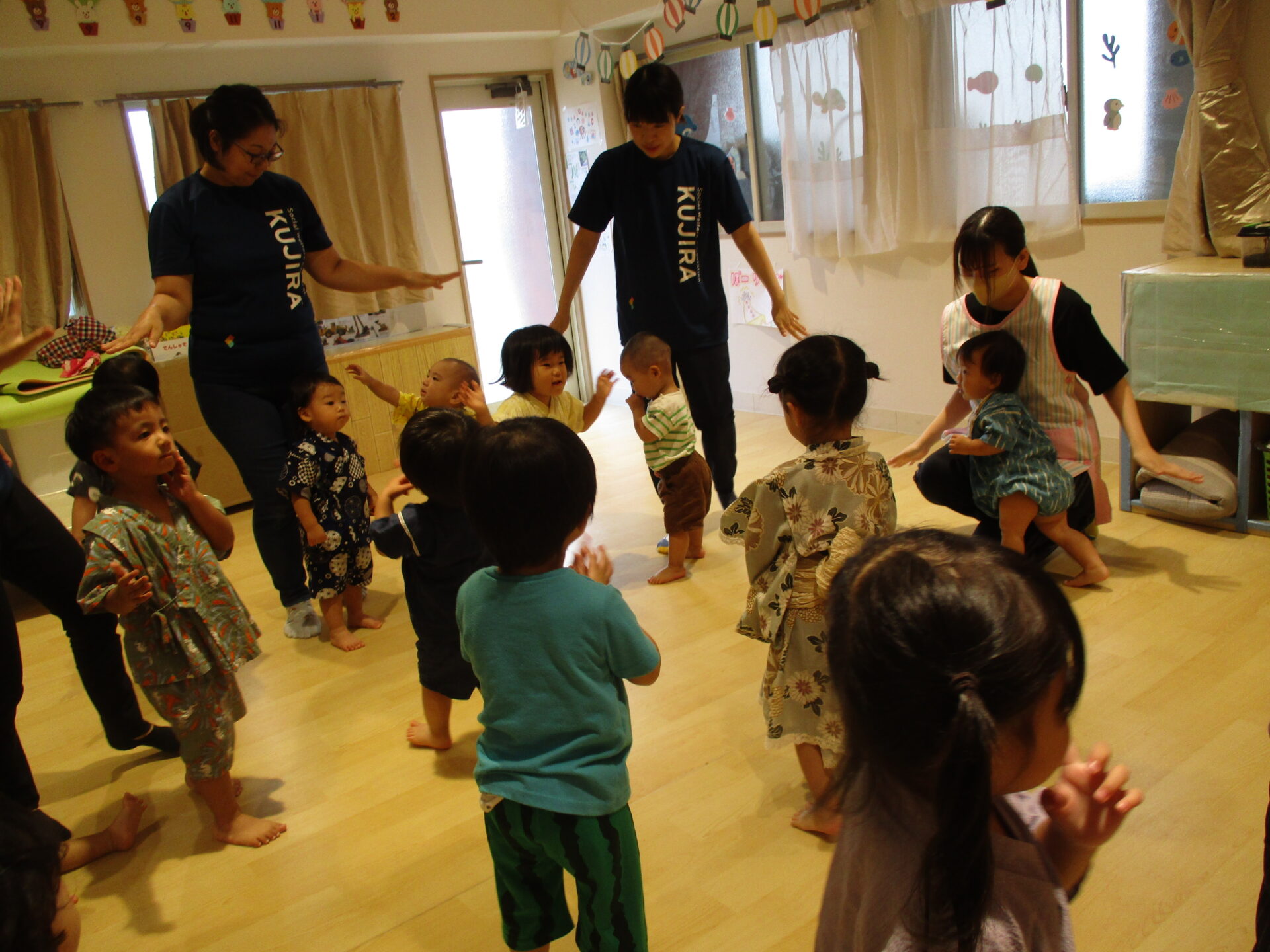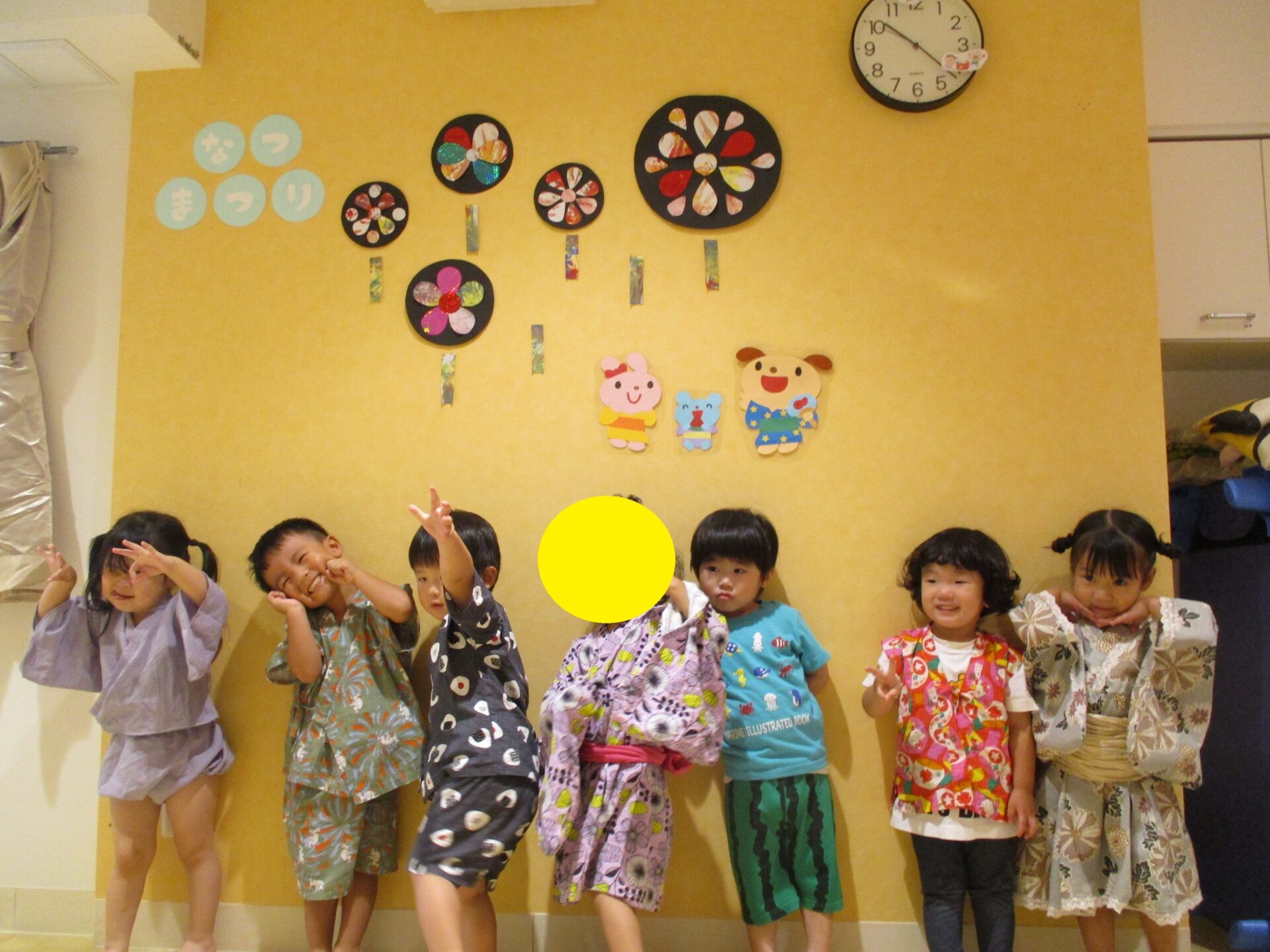 甚平や浴衣を着たり、保育室はいつもと違い、お祭りの雰囲気に🎇