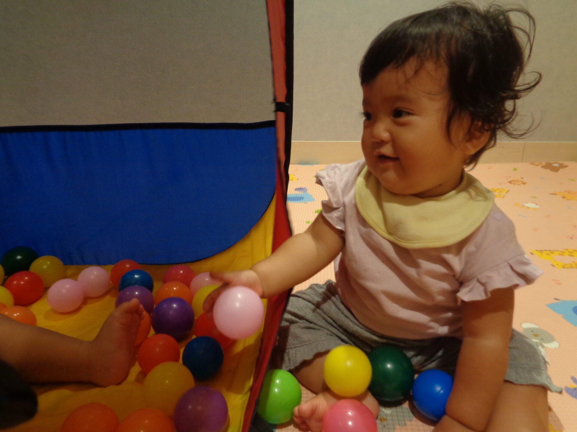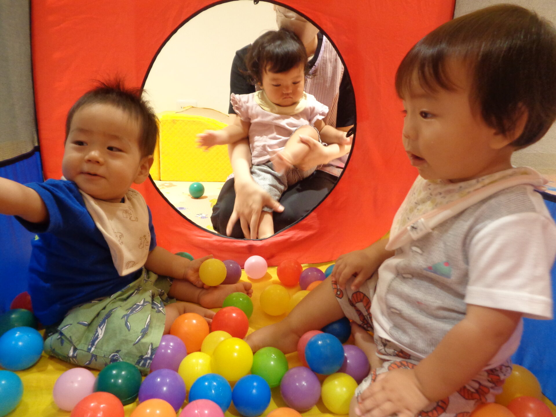 またボールプールの中に入っているお友だちや保育者と目が合うと、ニッコリと微笑んでいました💓
