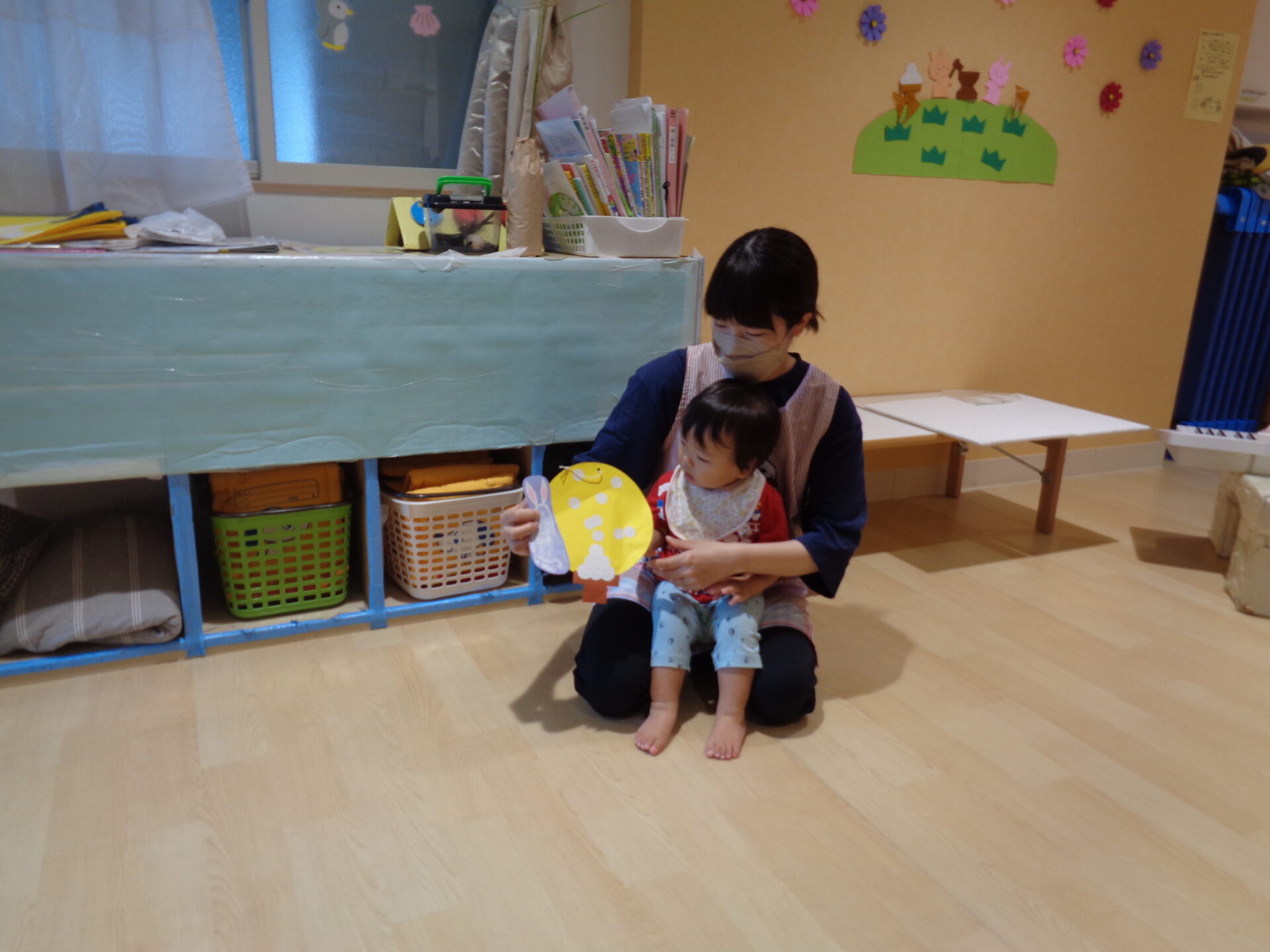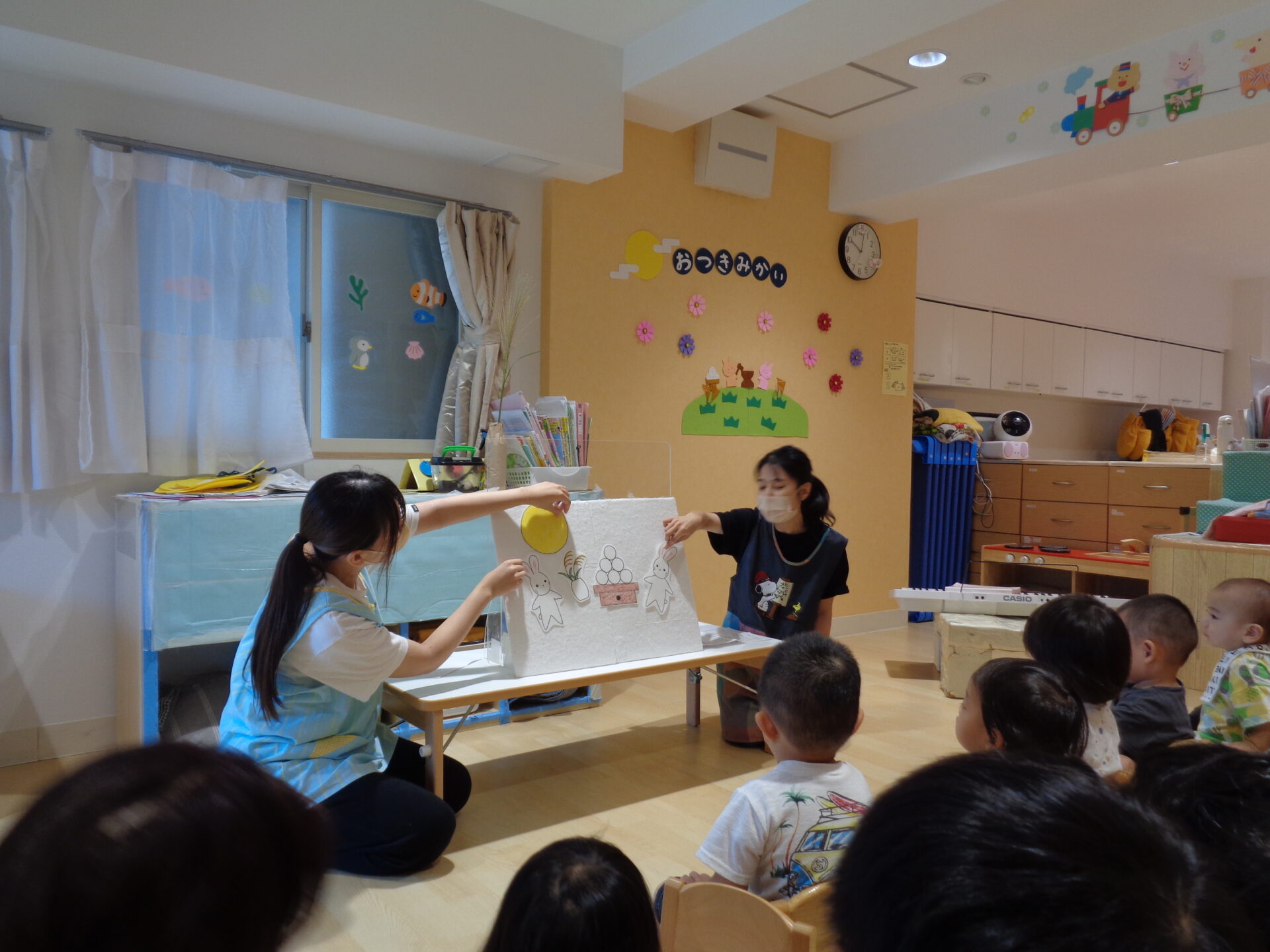 次に、ペープサート『おつきみ かざるの なんだっけ?』を見ました。