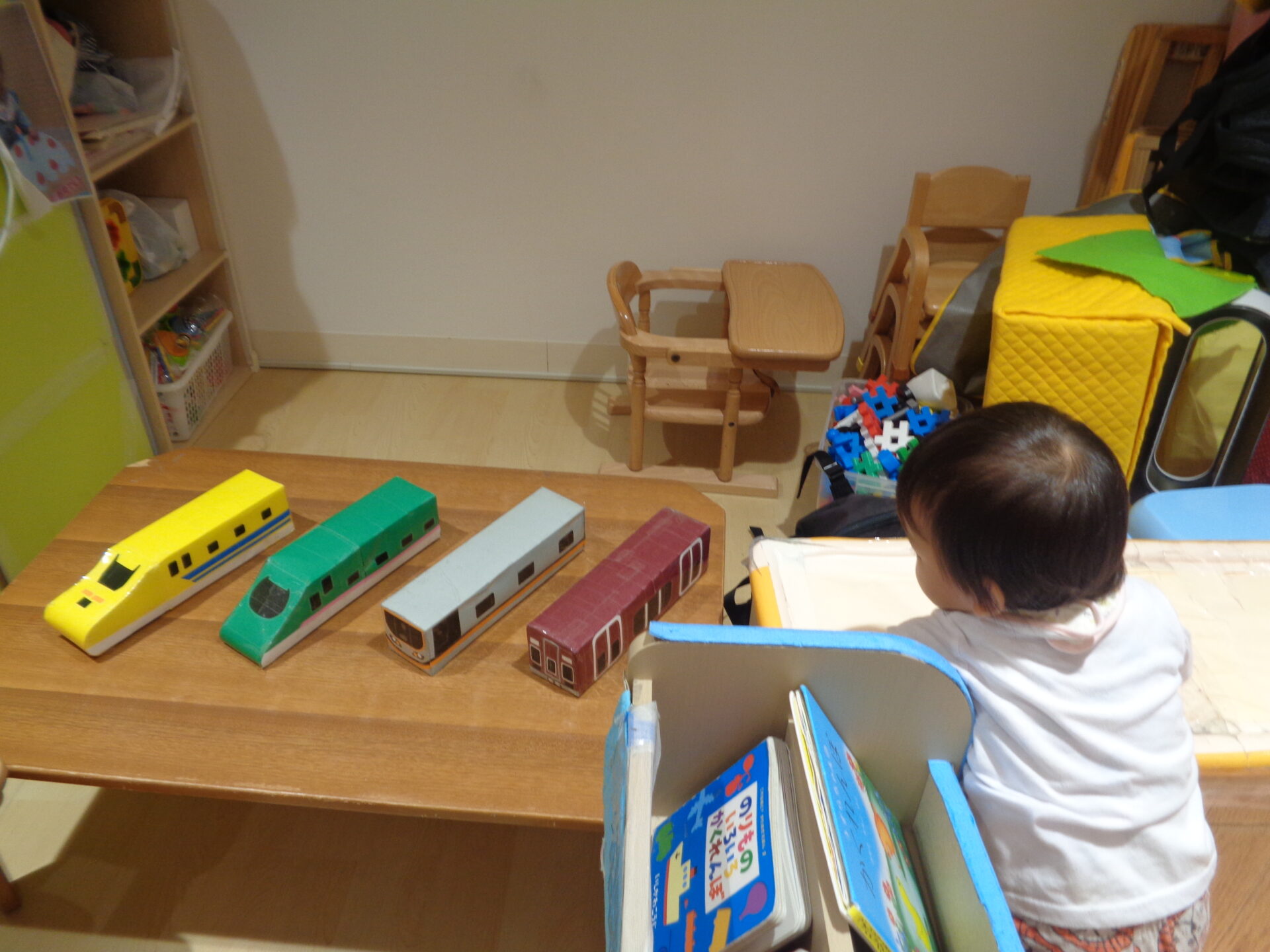 保育者がこの電車たちの写真を撮っている間から、じっと見ていた子どもは「まだかな、まだかな!」と待ち遠しそうな様子。