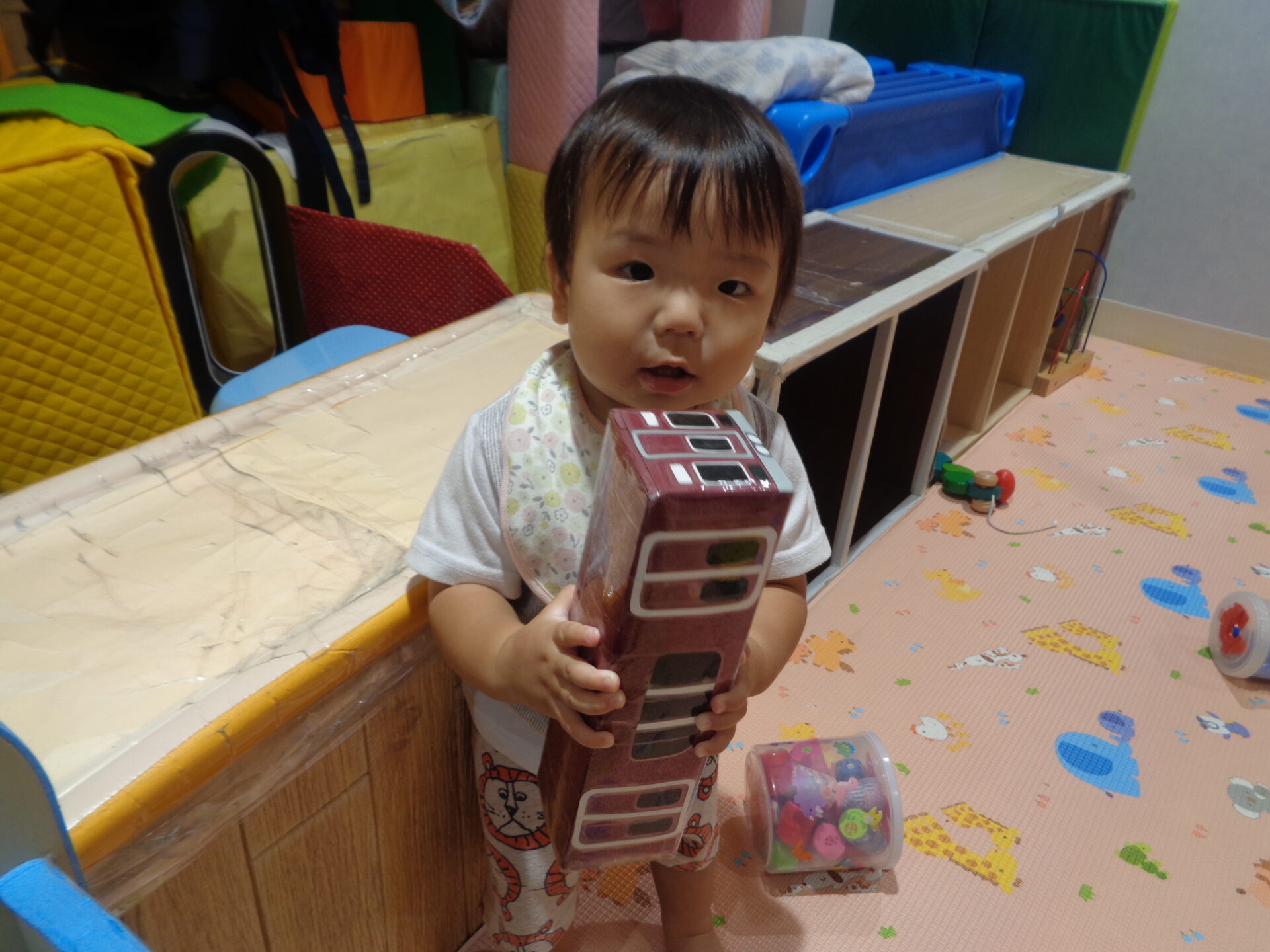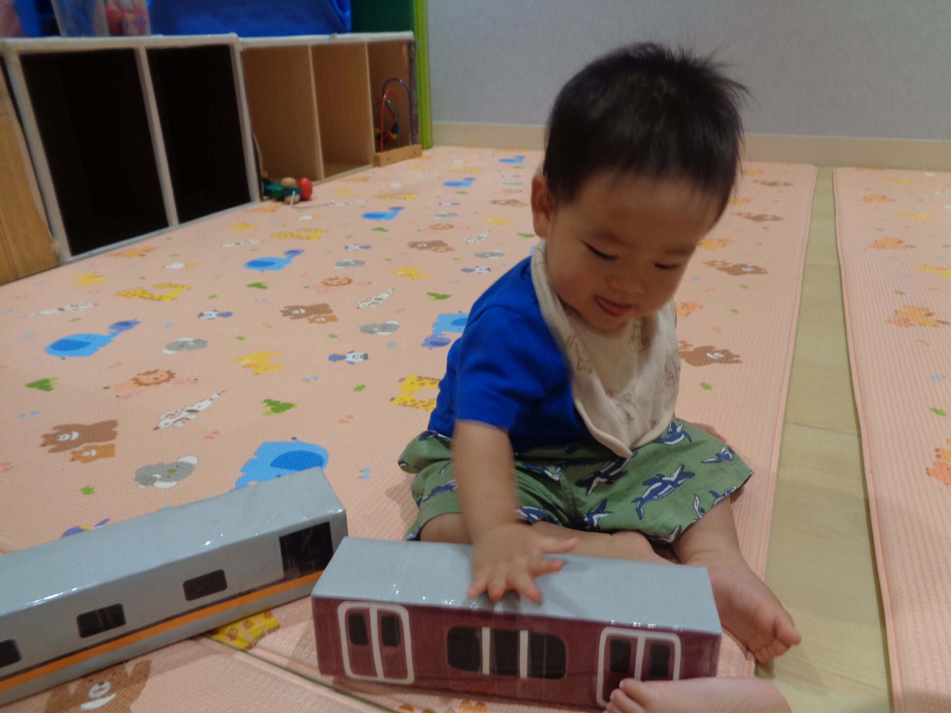 いつもお散歩で見ている阪急電車を嬉しそうに持っていました。