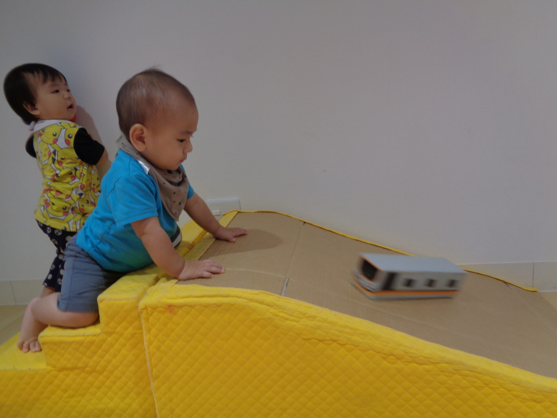 滑り台の上に電車を乗せて、走らせたりして遊んでいました🌟