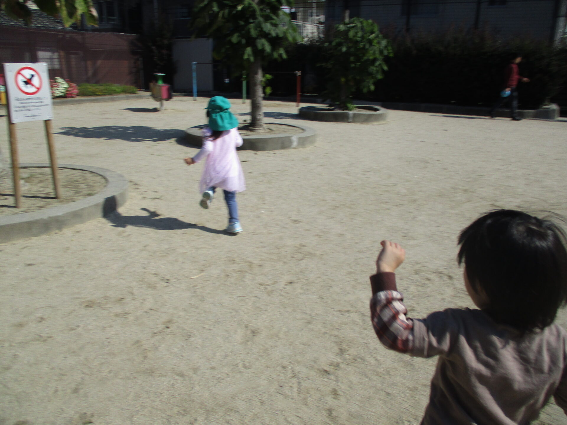 「きた~にげろ~!!」と大はしゃぎで逃げたり、