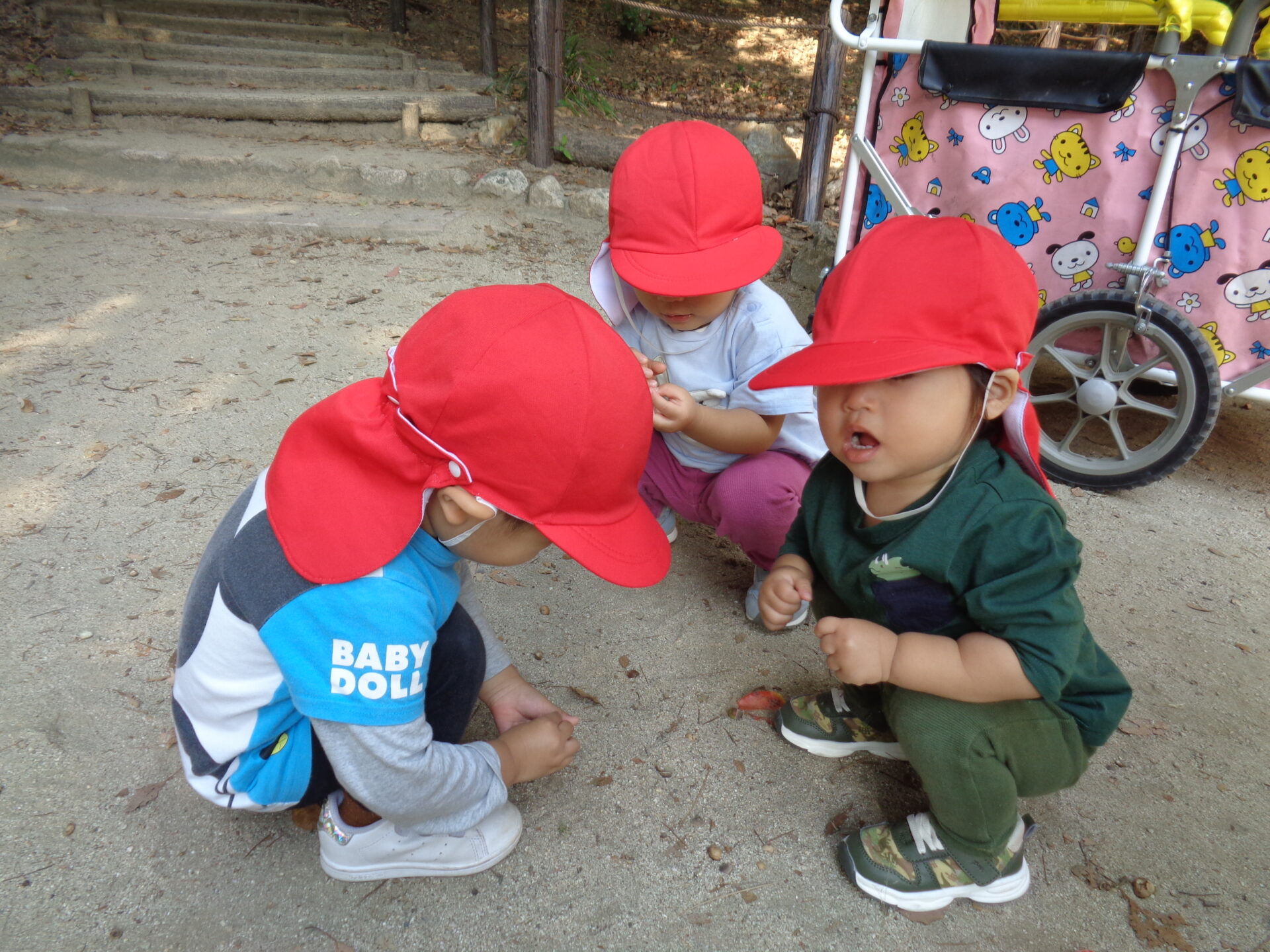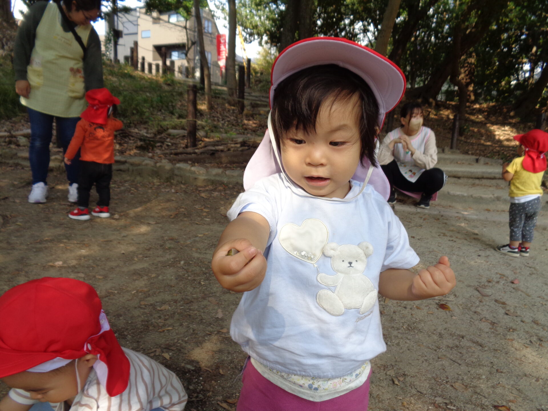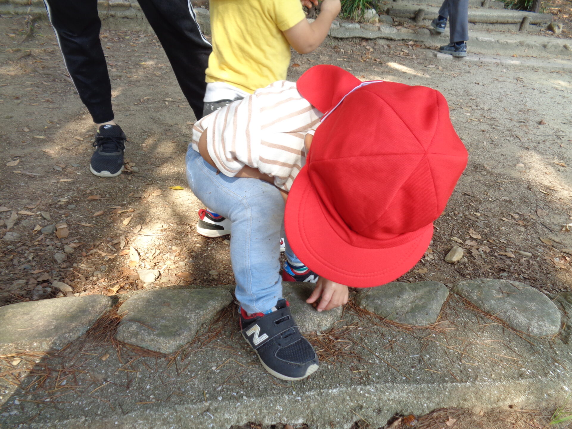 小さい子どもたちが、さらに小さくなりながら、夢中でどんぐりを拾っていました^^