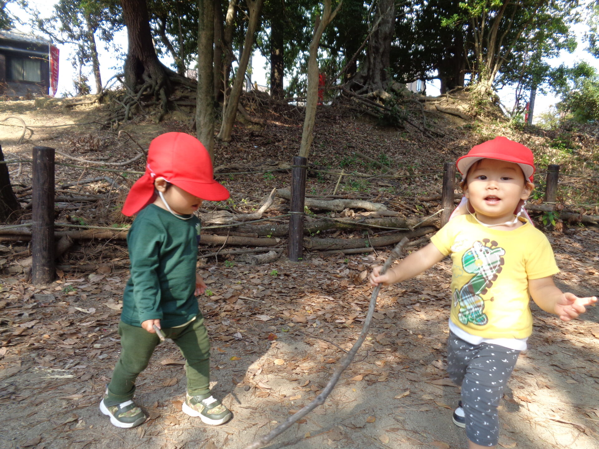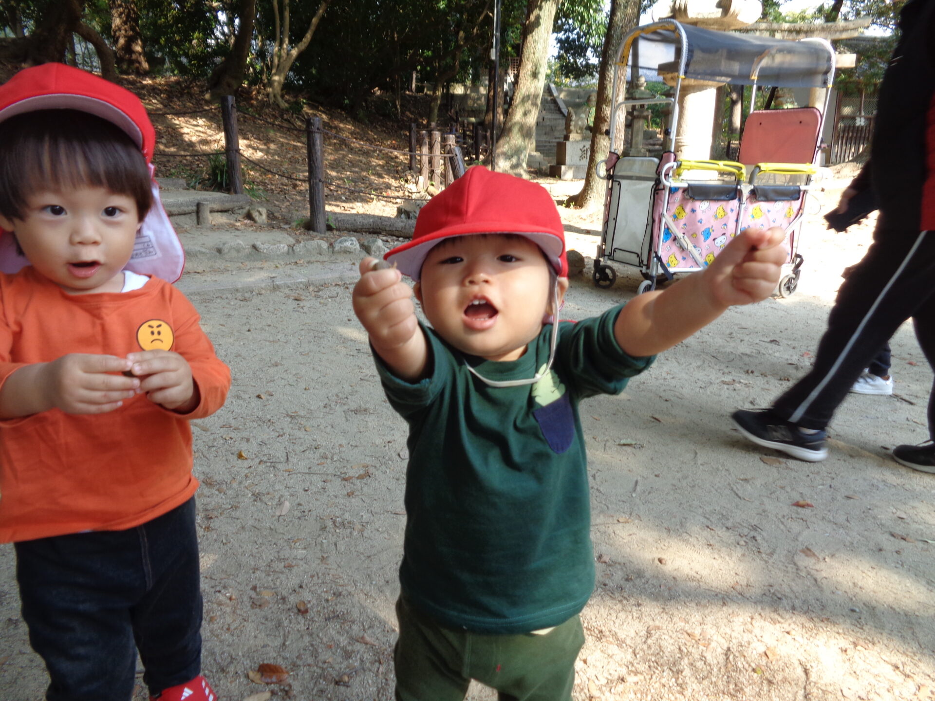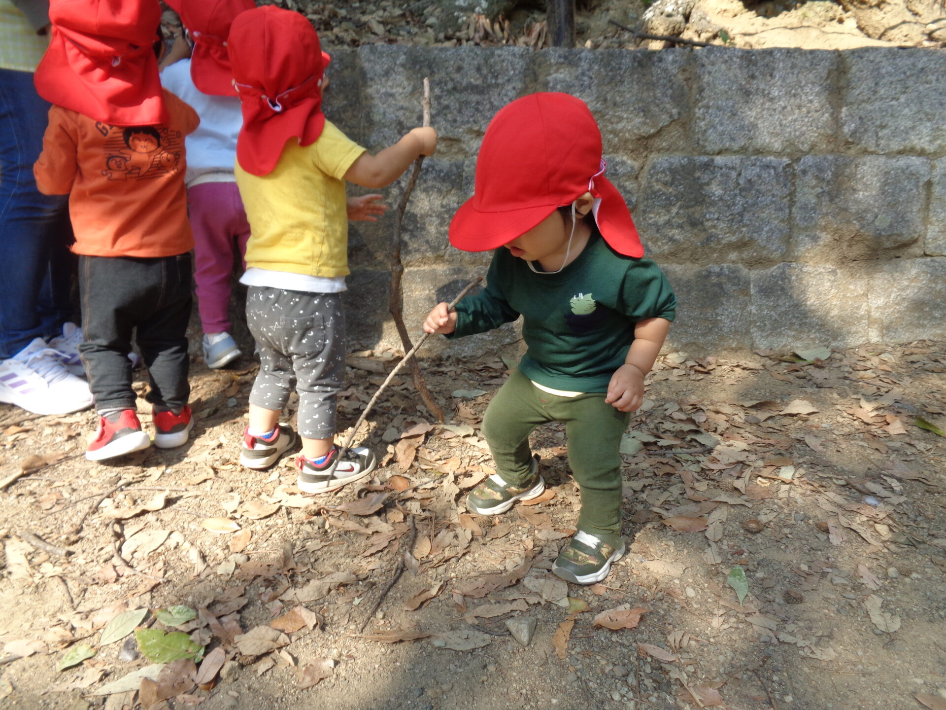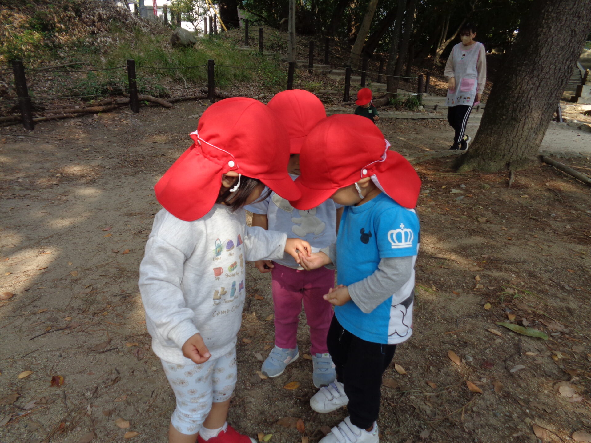 小さい子どもたちが、さらに小さくなりながら、夢中でどんぐりを拾っていました^^