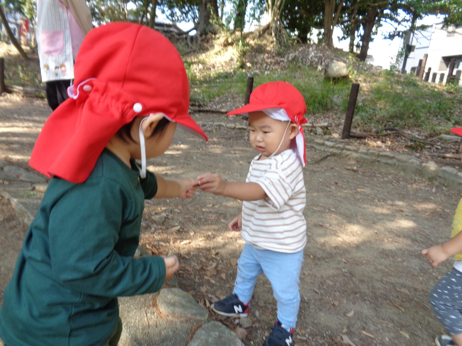 たくさん拾ったものを、「いいよ~どうぞ~」と、分けてあげていました✨