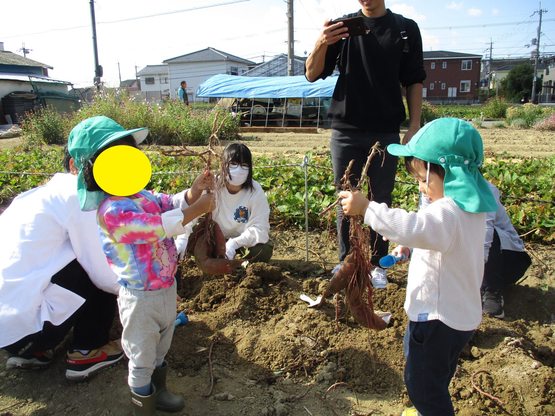 今回芋掘りを通して、普段は調理されたお芋を見ることが多い子どもたちにとって、自ら掘って土の付いたお芋を見ることは、新鮮だったことでしょう。