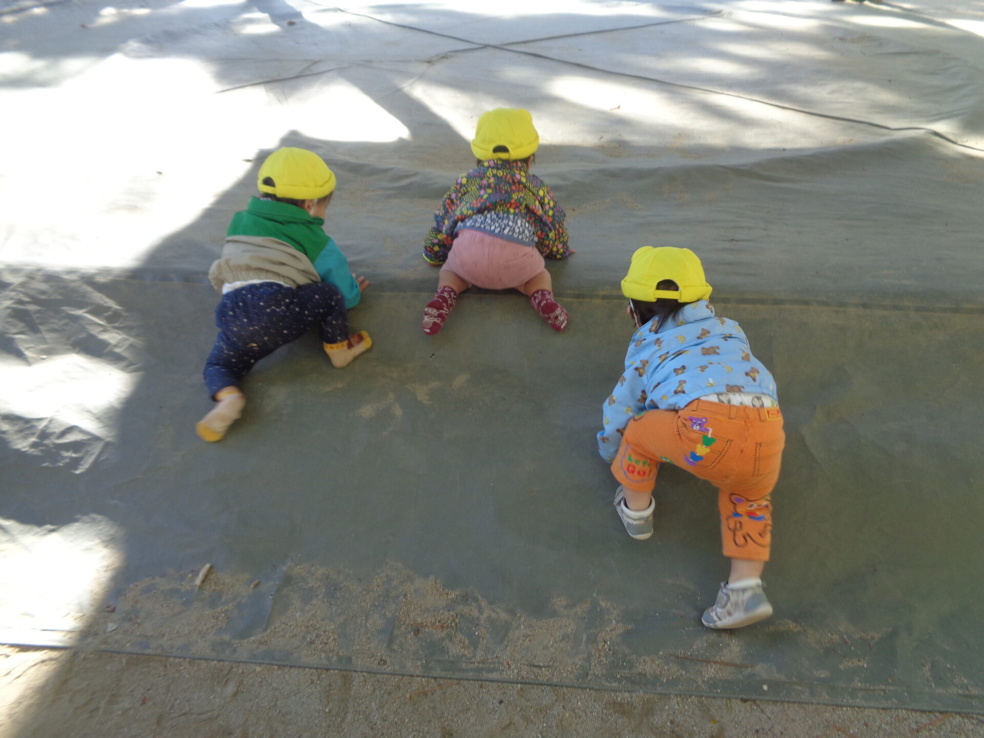 段差の登り降りがブームな子どもたちは、一生懸命に登っていきます。