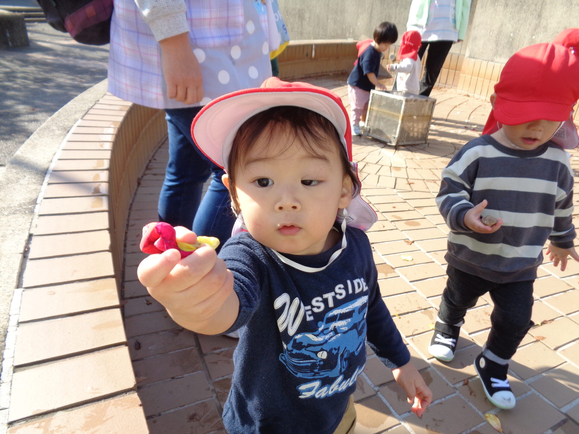 バラの花びらを拾ったり、石を拾ったりして遊びました。