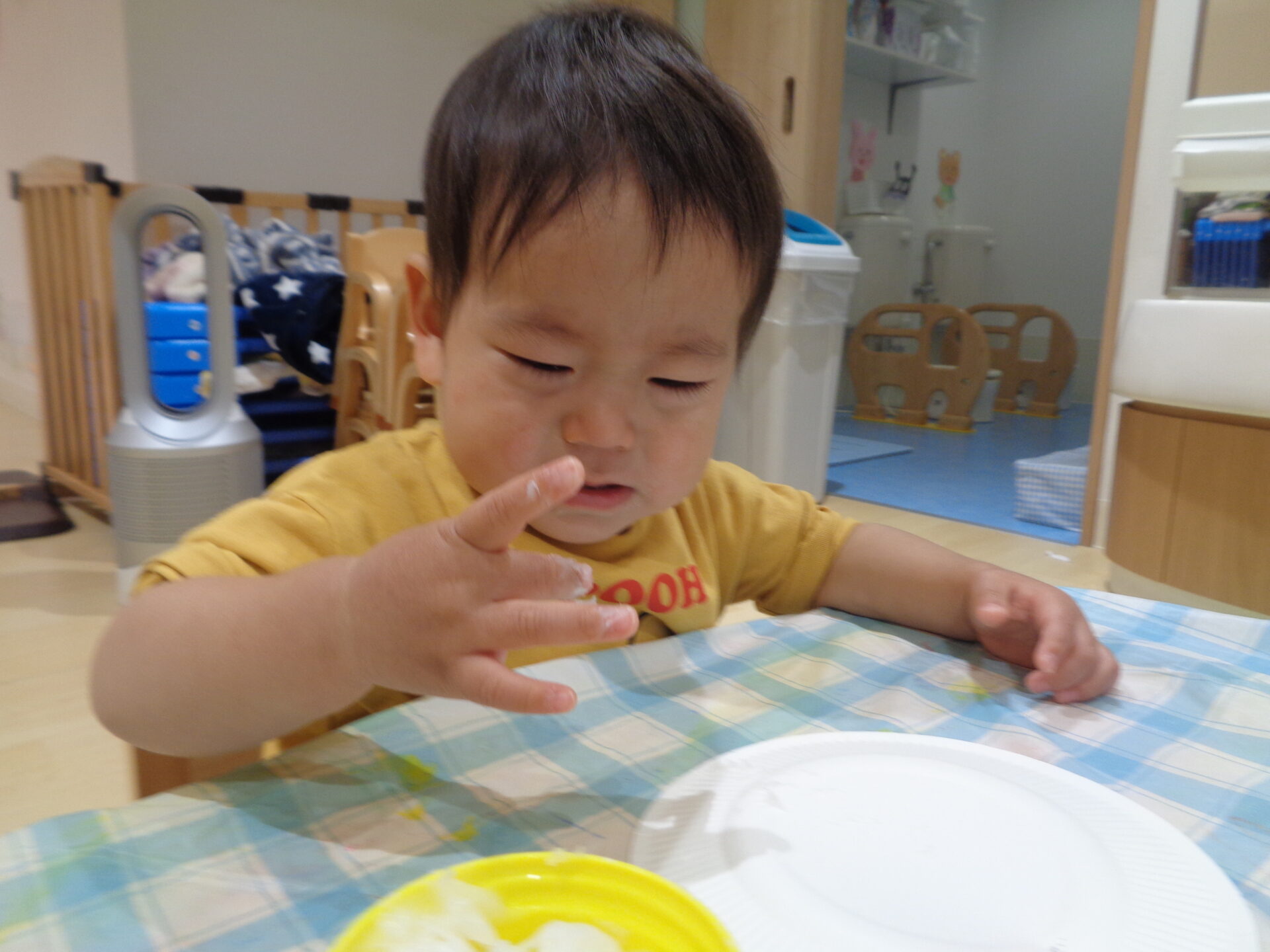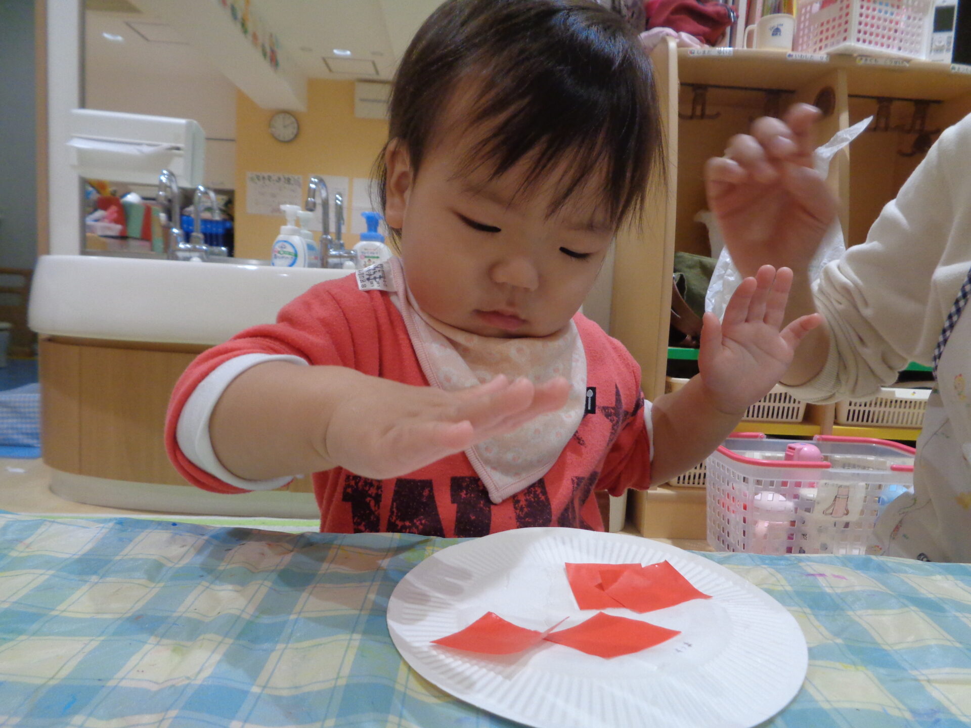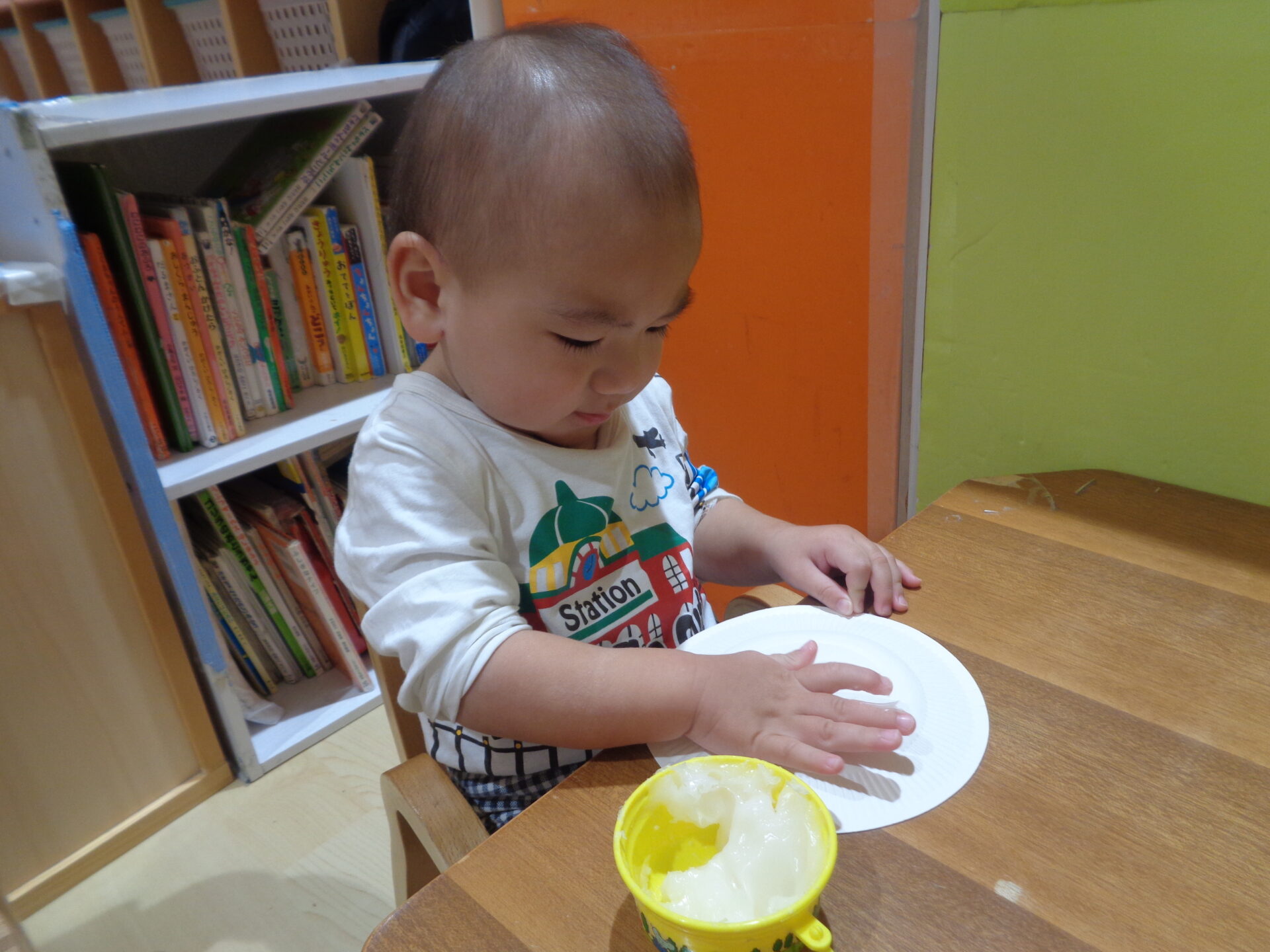 中には、感触が気持ちいいなと思った子どももいて、豪快に手にのりをつけていました!