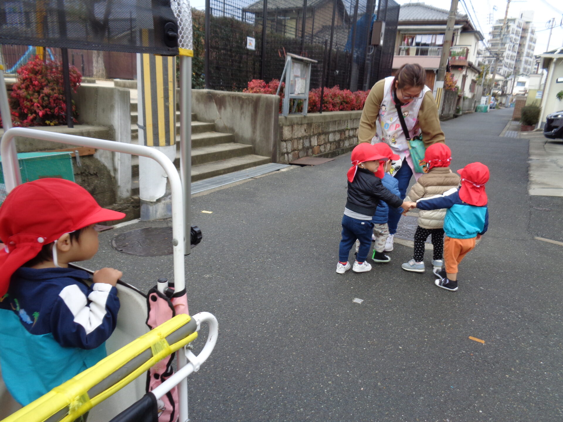 驚きあり、ハプニングありのお散歩(1歳児 だいち組)