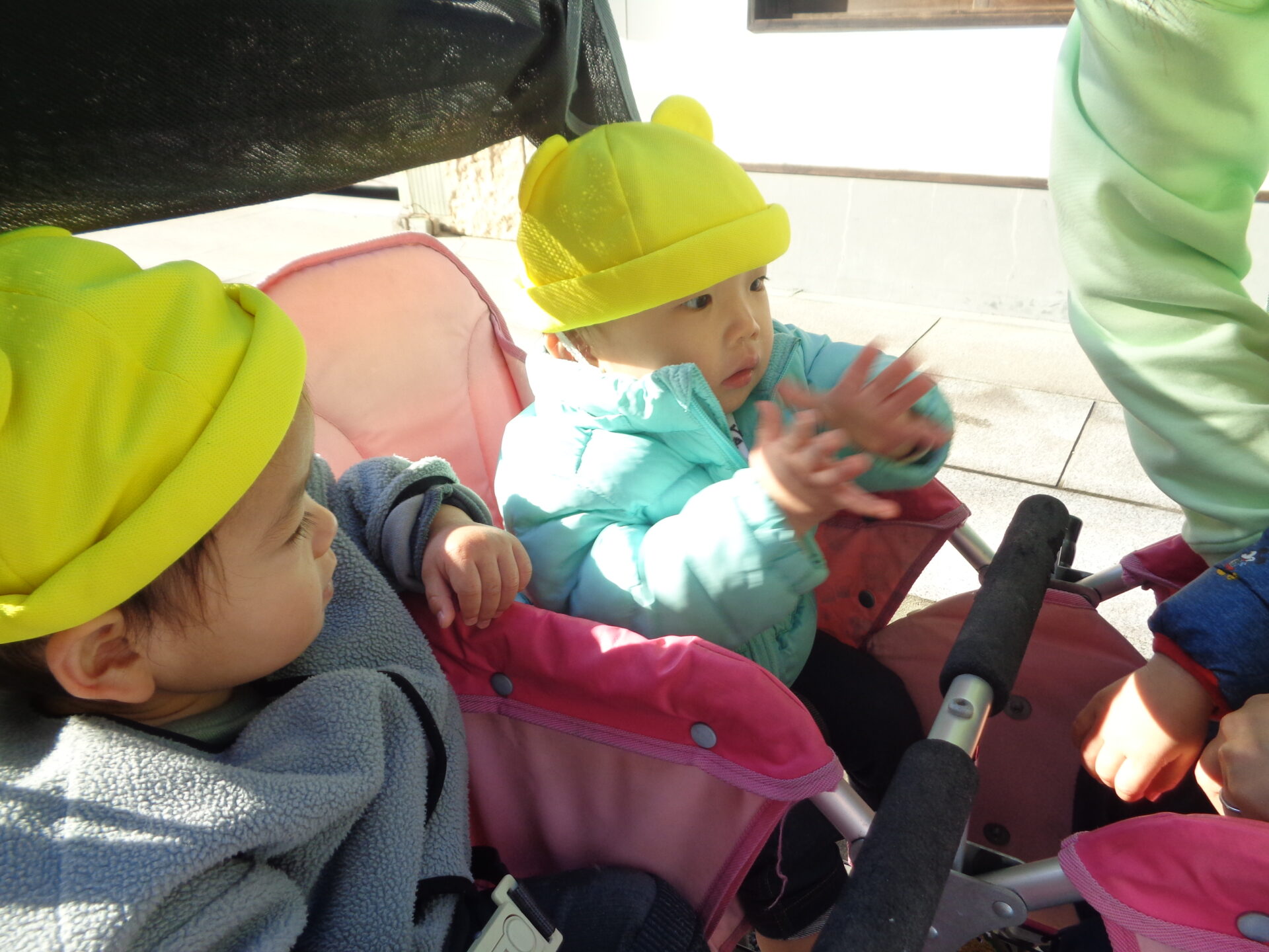 お友達が挨拶をしている間、カートでも一緒に手を叩いて、挨拶をしていました(^▽^)