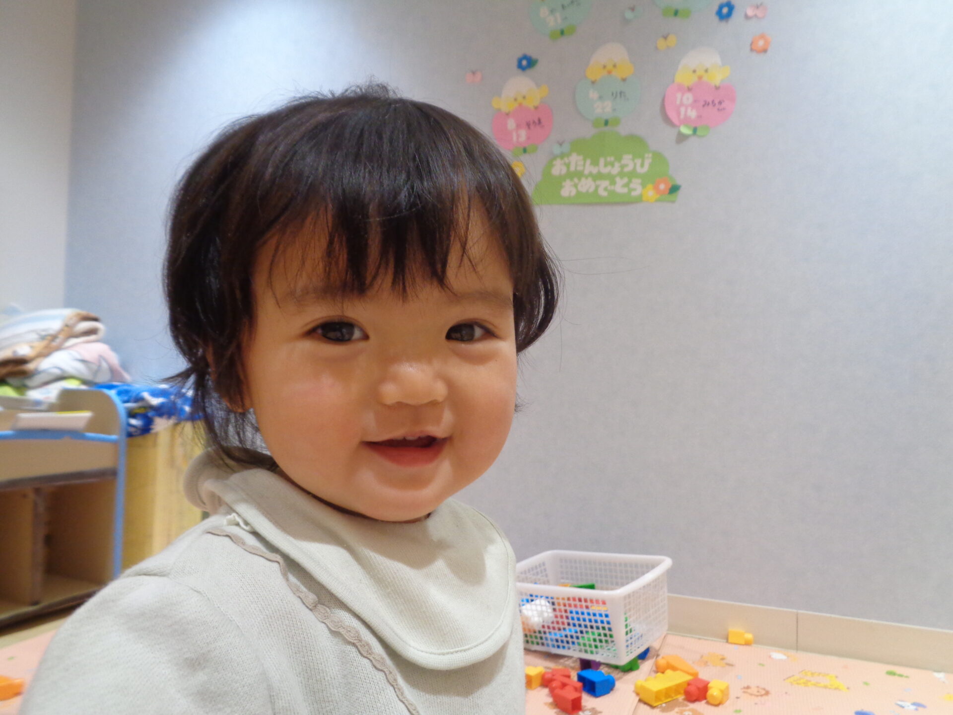 この様子を撮っていると、横から”私も撮って💕”と言うかのように、保育者の肩に手を置くお友達が…🥰