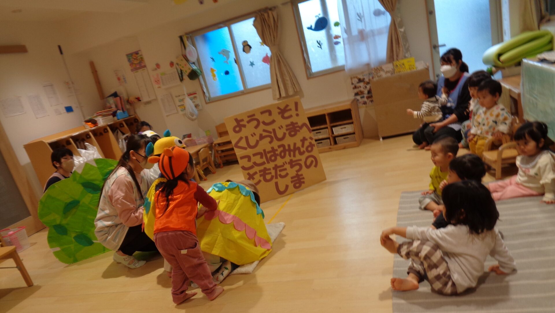うみ組(0歳児)だいち組(1歳児)は、当日に見ることができないので、今日はお客さんとして見せてもらうことにしました!