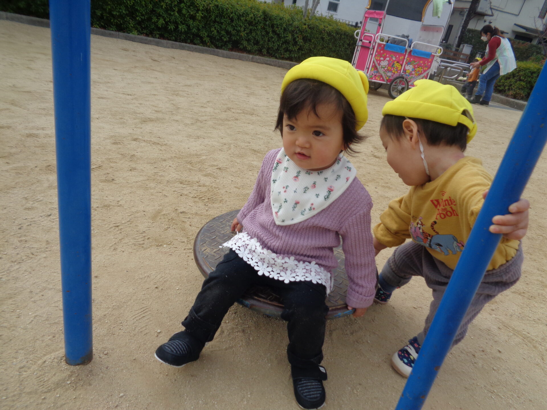 中には、この円盤に座って、休憩しているお友達もいました☺