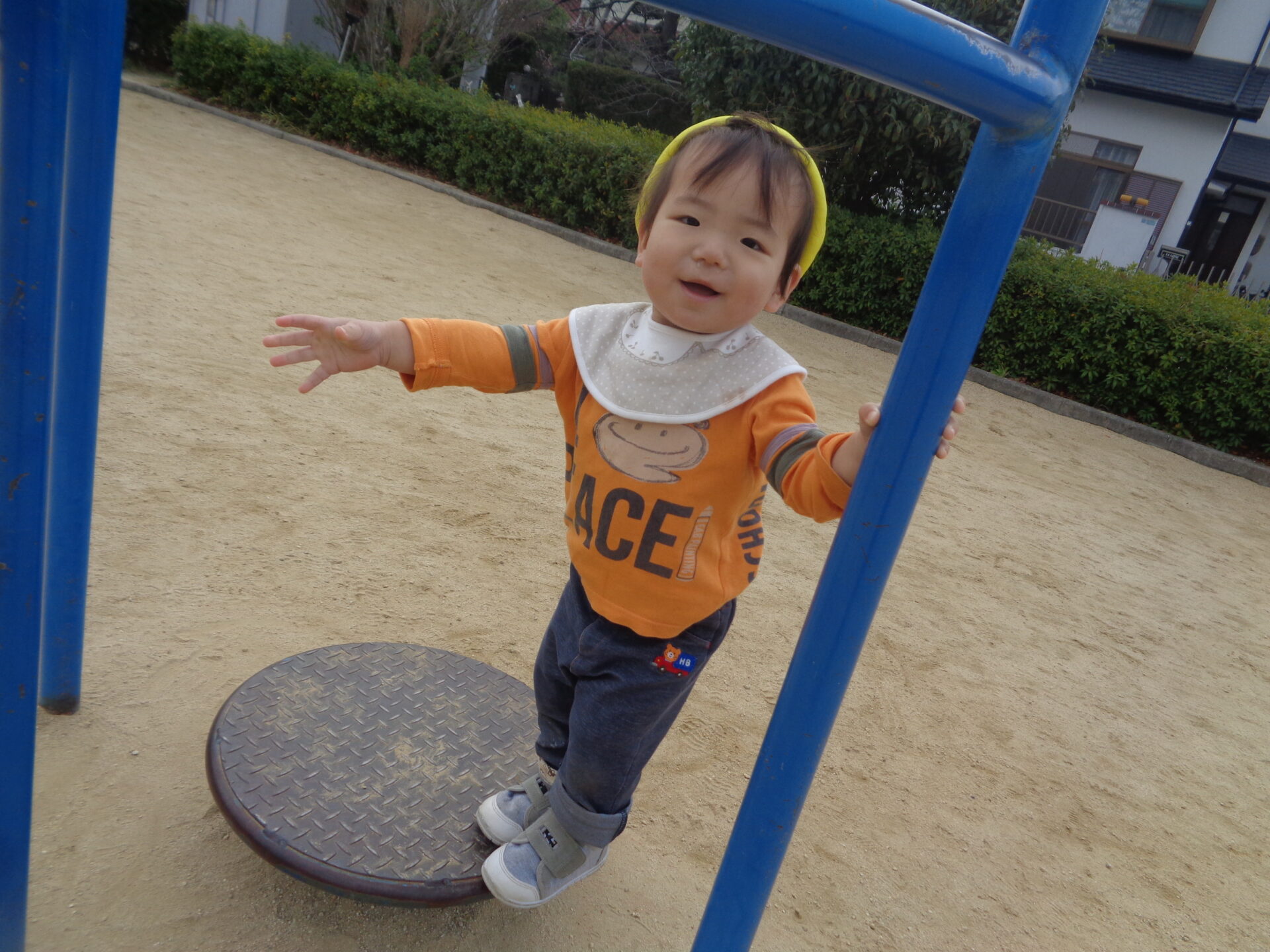 公園に健康遊具があったのですが、円盤の上に乗り、