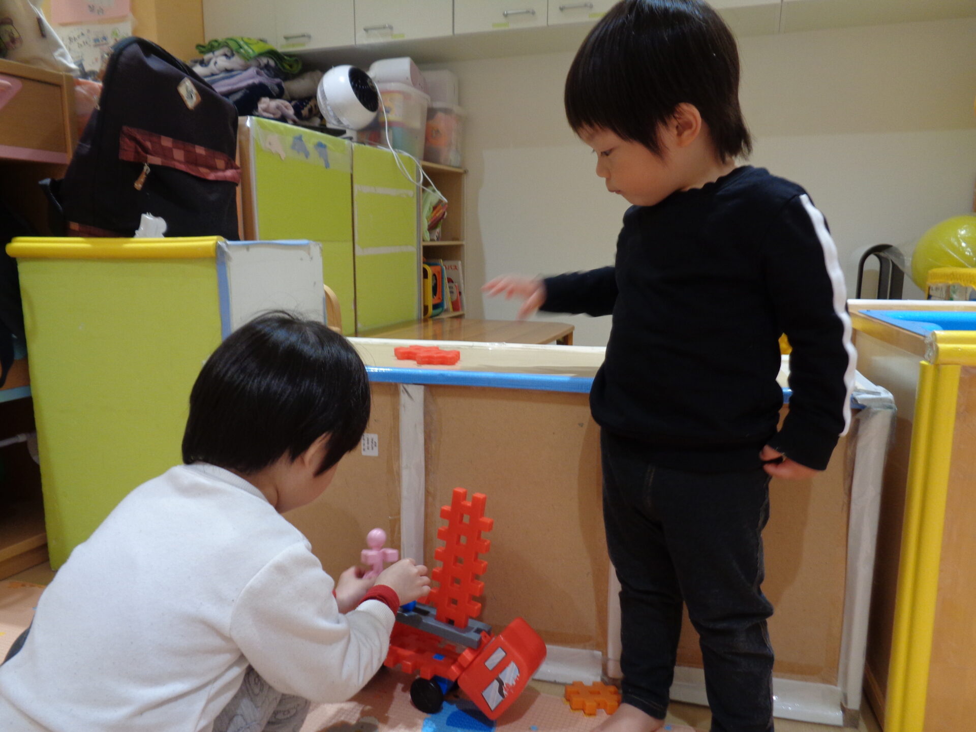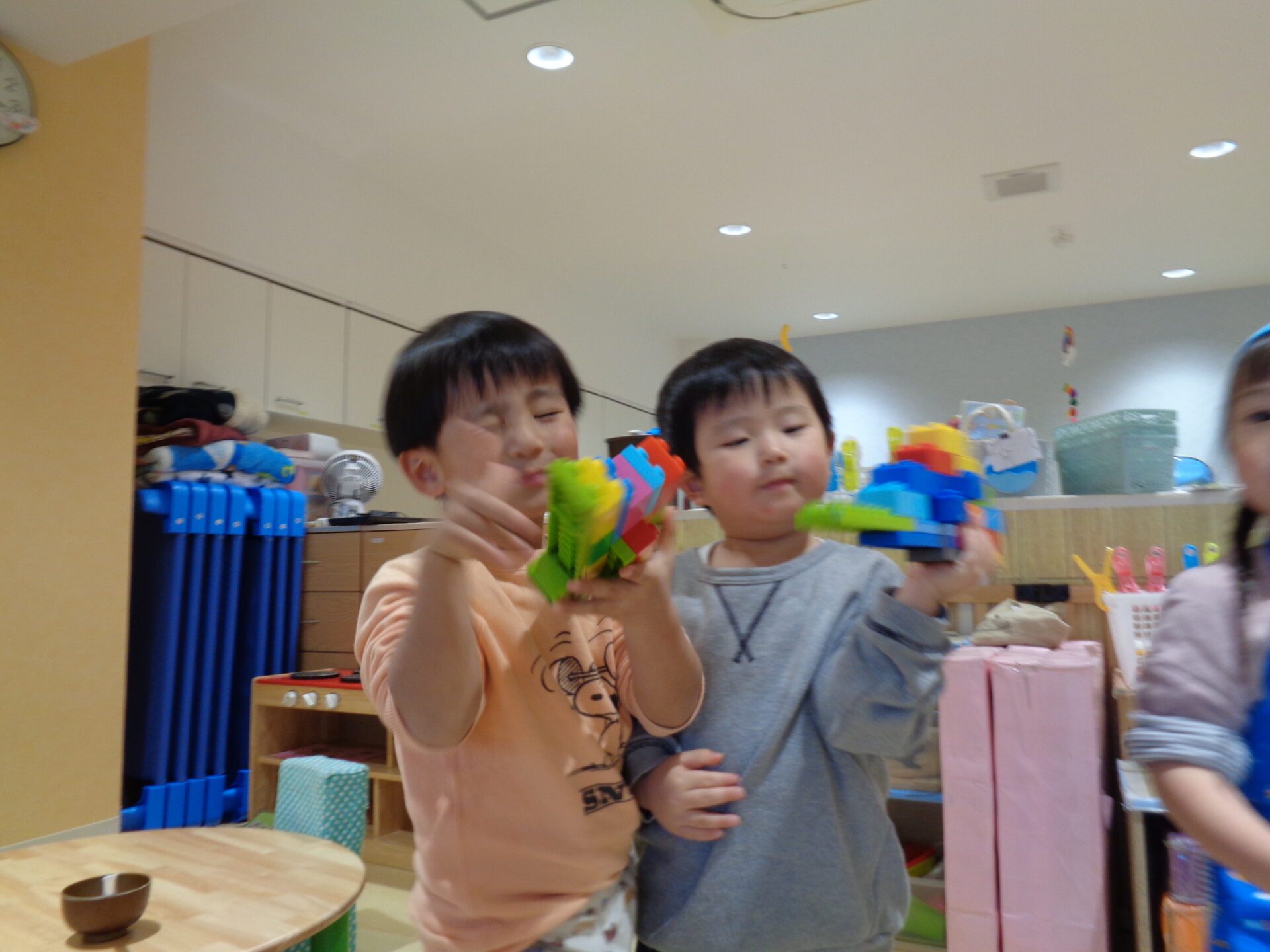 男の子たちは、ブロックで作るものがどんどんダイナミックになっています。
