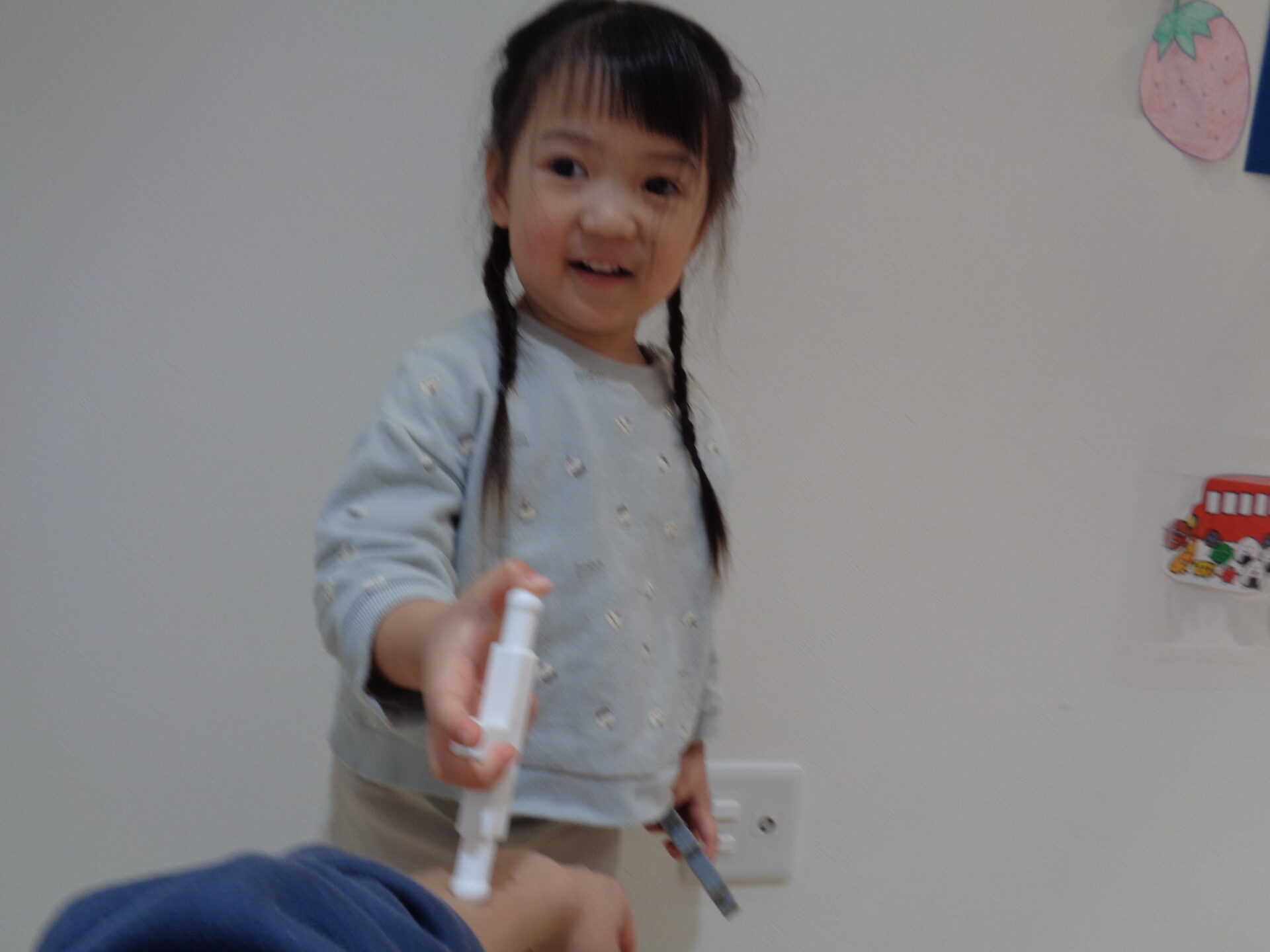 棒を持つと、注射に見立てたくなるようで、