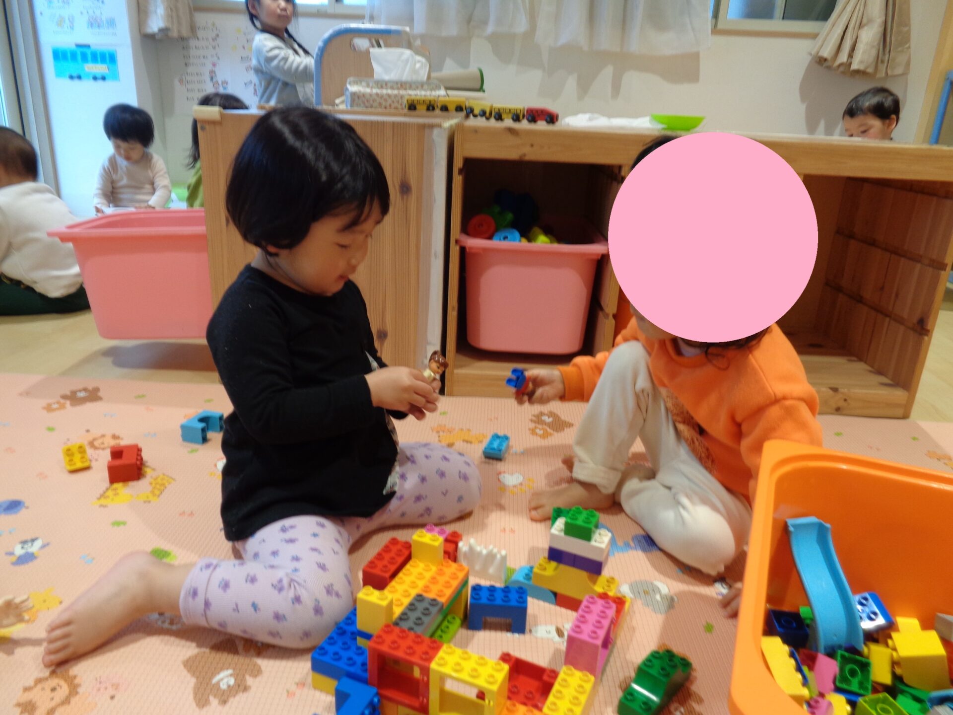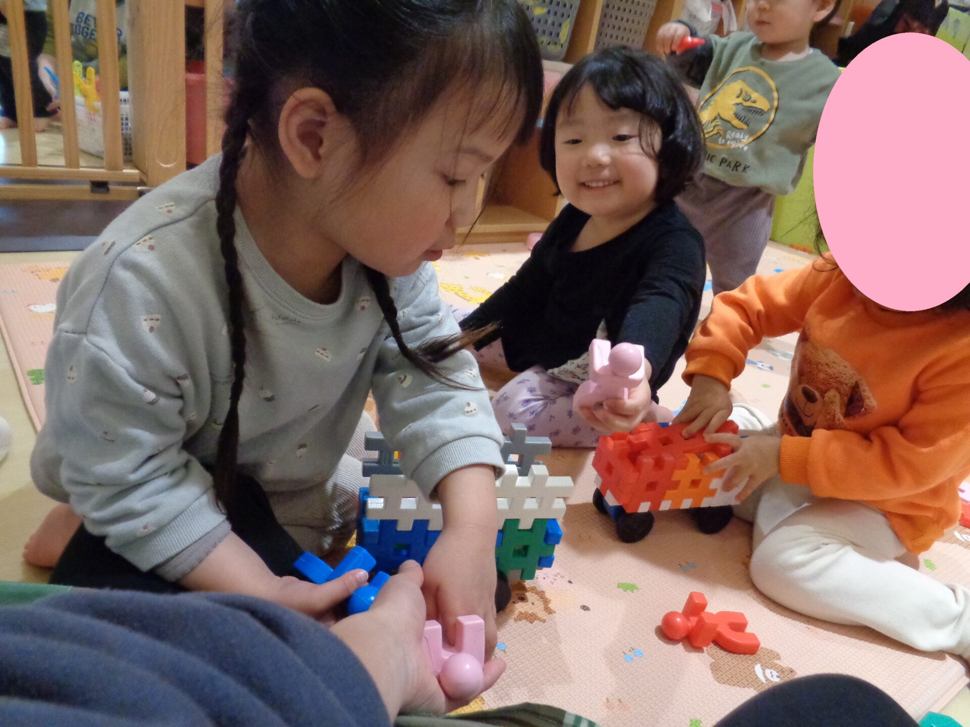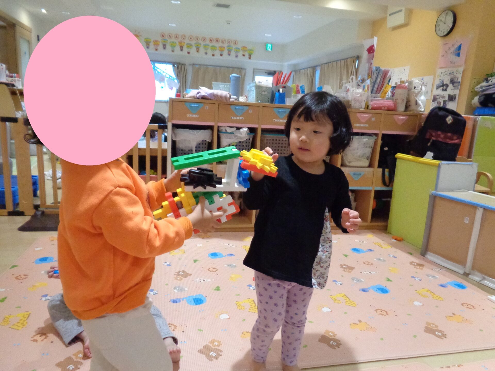 以前、別のあめ組の子どもたちが遊んでいたことが、1歳児を含めた別の子に受け継がれていました^^