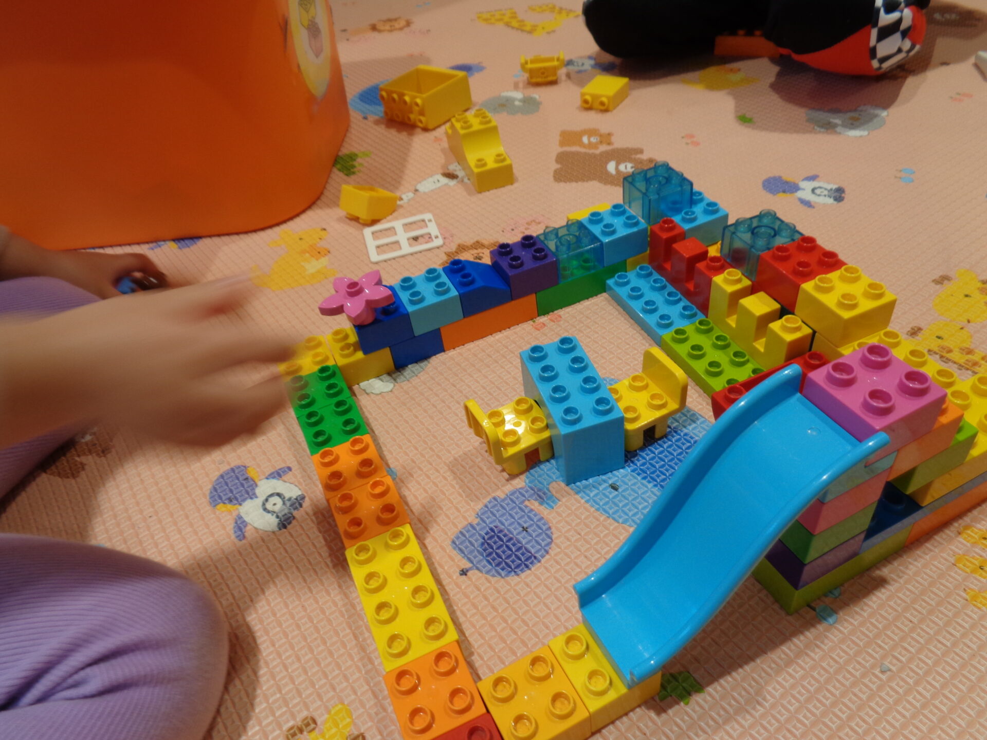 ブロックでお家を作るのが大好きなふたり。ソファーやダイニングセット、玄関マットもあったりします。