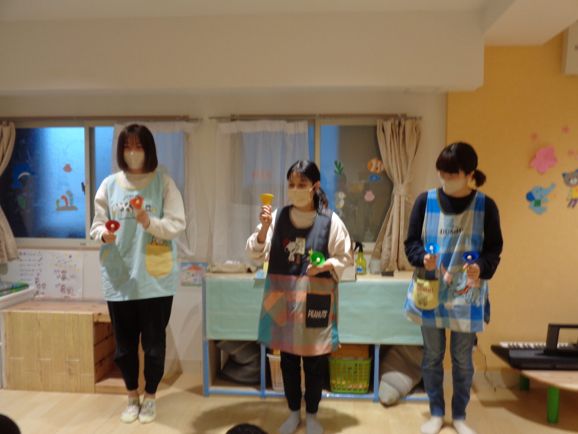 伊丹くじら保育園から借りたハンドベルを使い、みんな大好き『きらきらぼし』を演奏しました。