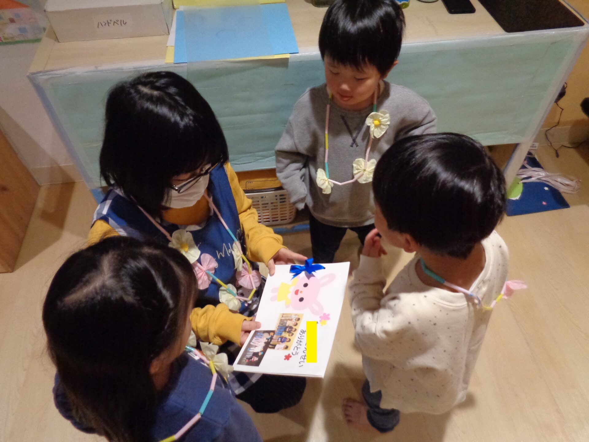 サプライズで、あめ組の子どもたちから、あめ組の先生へ似顔絵のプレゼントを渡しました🌟