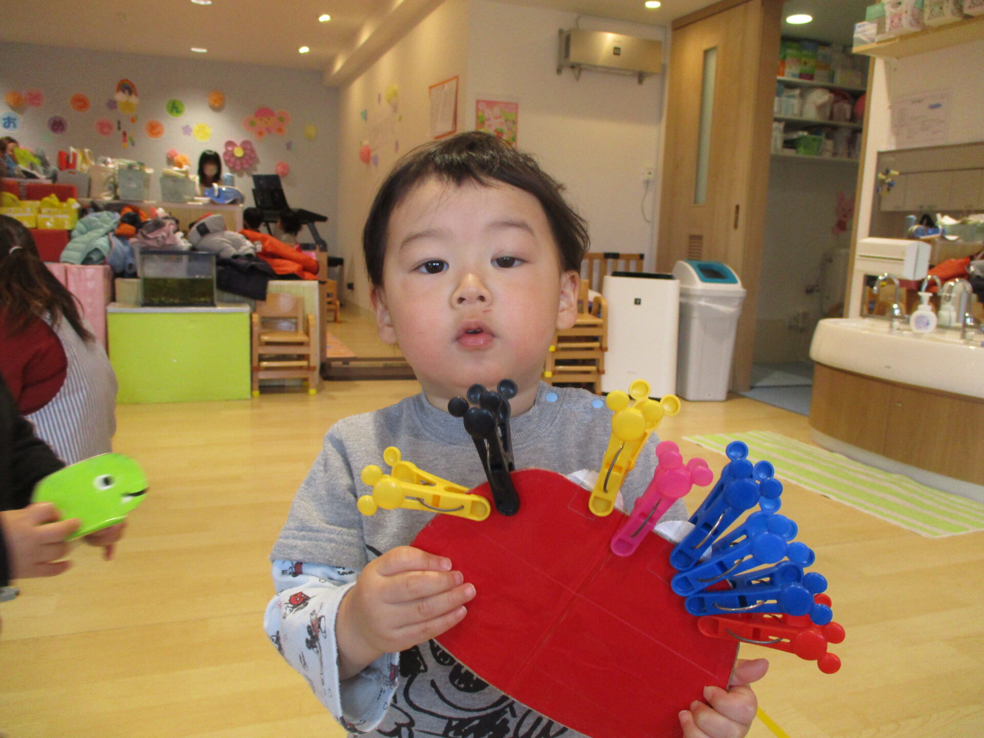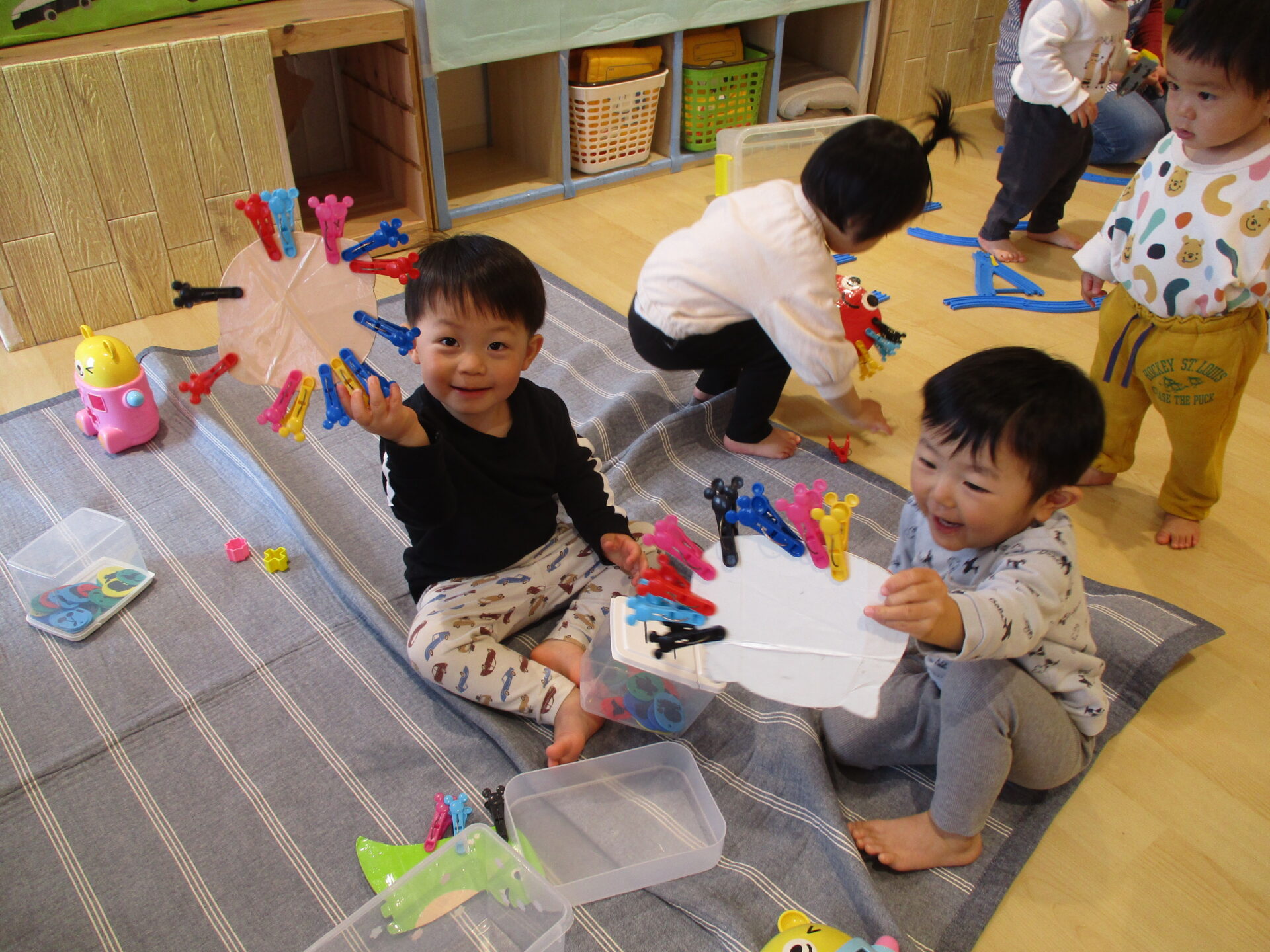 だいち組は、せんたくばさみでたくさん挟めるようになりました✨
