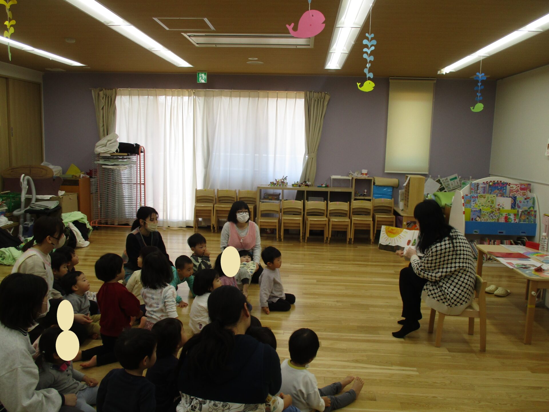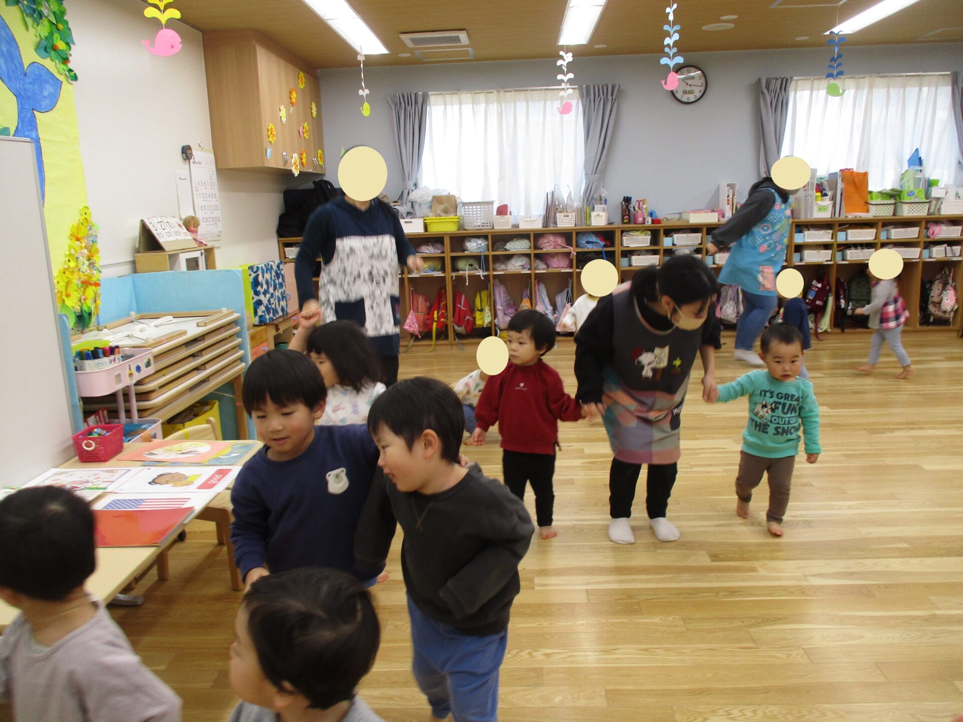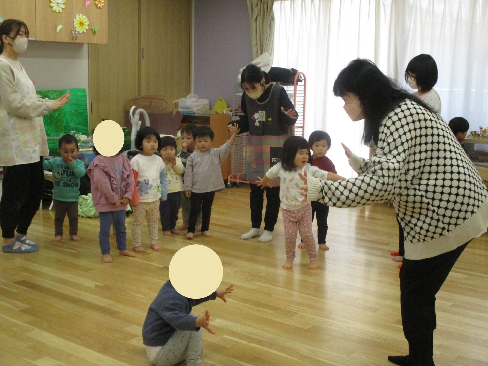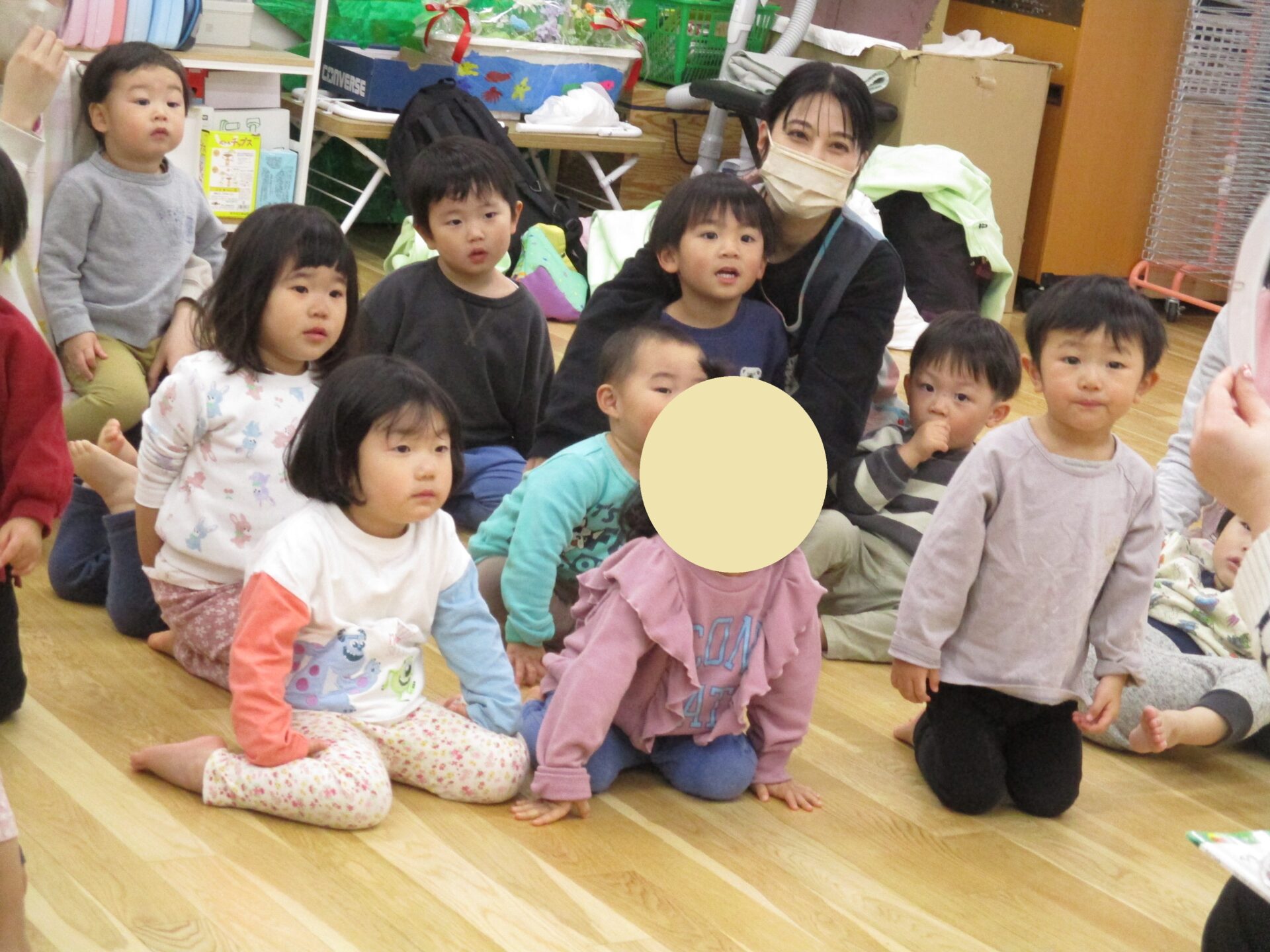 先月初めて参加しただいち組は、場所見知りと、人見知りと、初めての出来事に泣いてしまったり、保育士から離れられなかったりする子もいました。