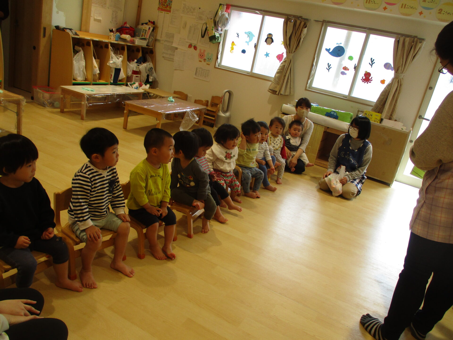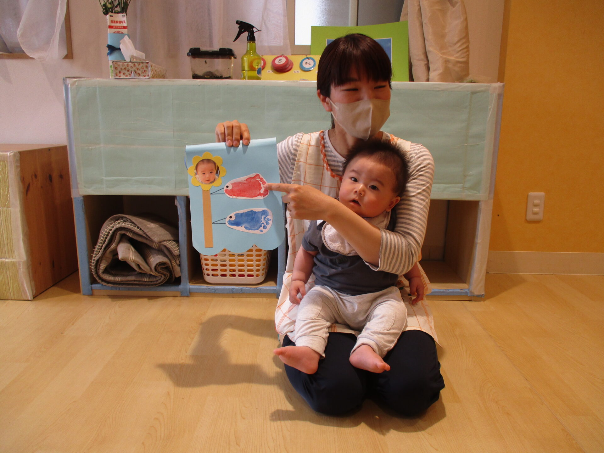 うみ組は初めての製作です。「足型がかわいい🥰」とたくさんの拍手をもらいました。